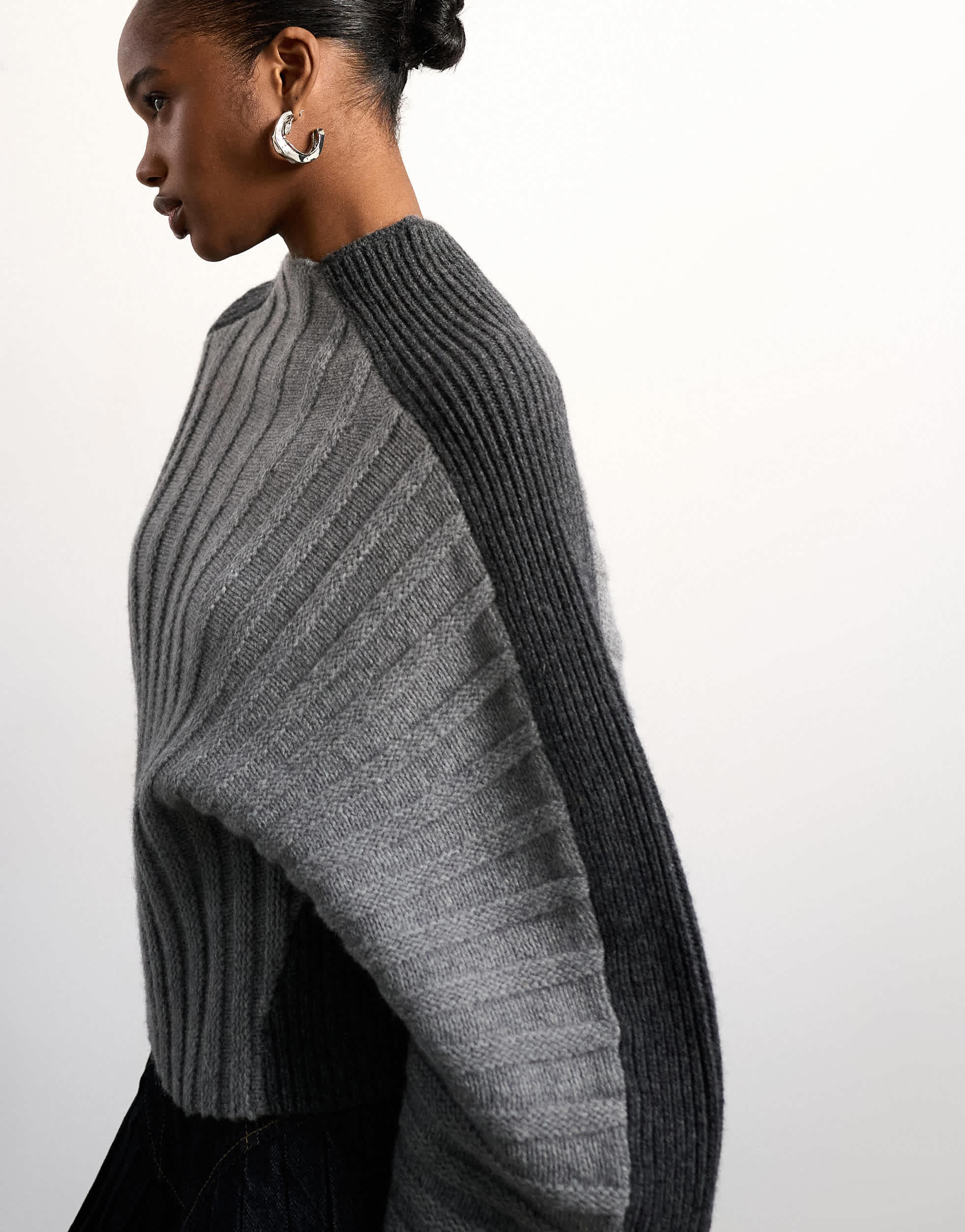 Tolu Coker x Topshop knitted premium 100% lambswool ovoid sleeve jumper in grey