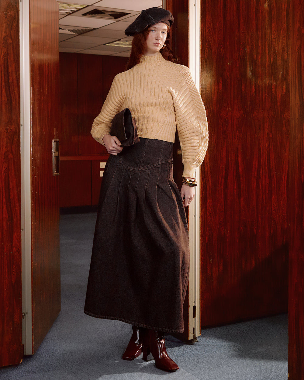 Tolu Coker x Topshop knitted ovoid sleeve jumper in beige