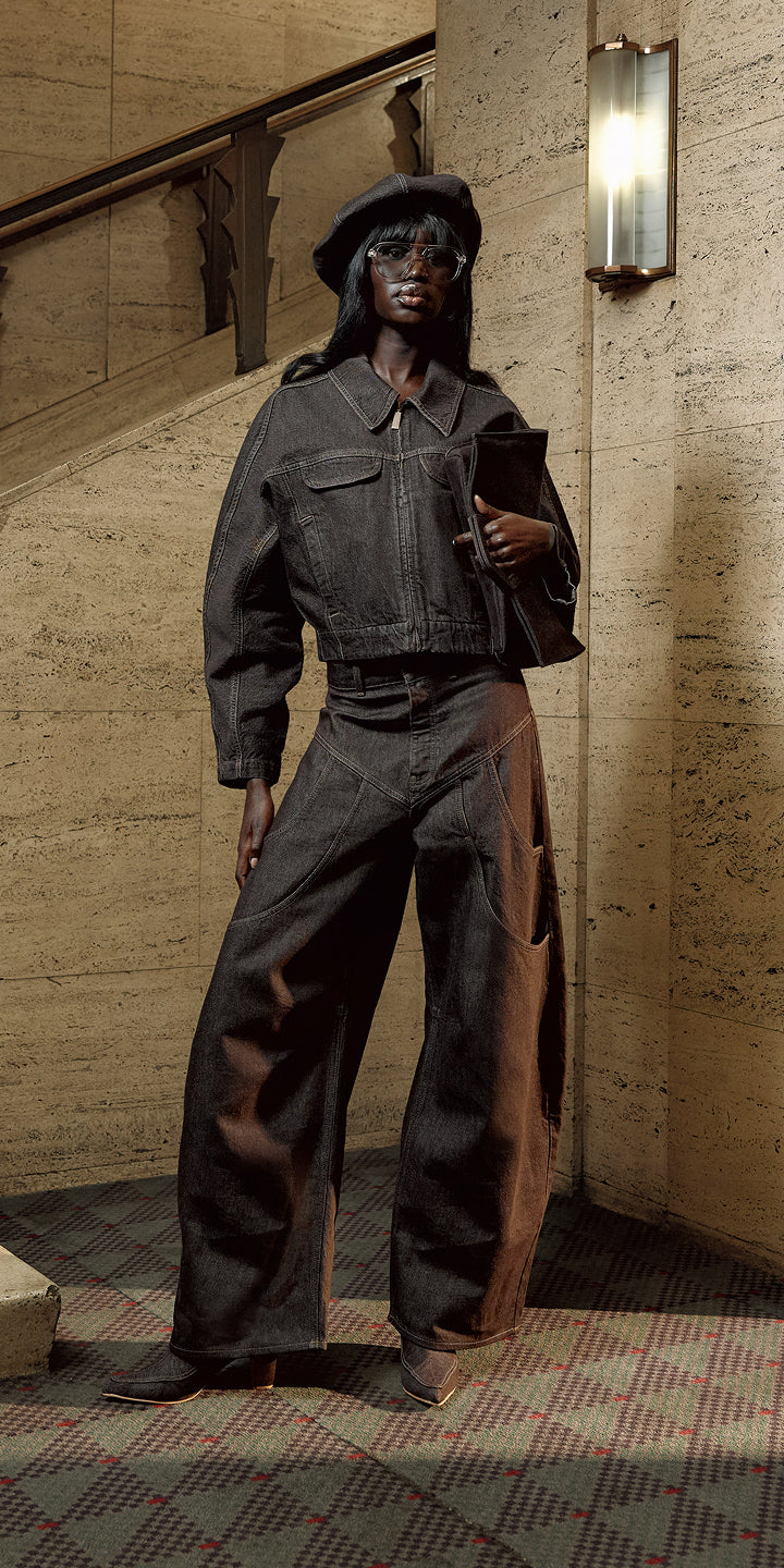 Tolu Coker x Topshop barrel high rise jean circular design in brown rinse