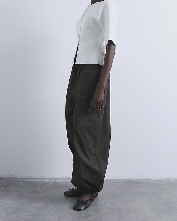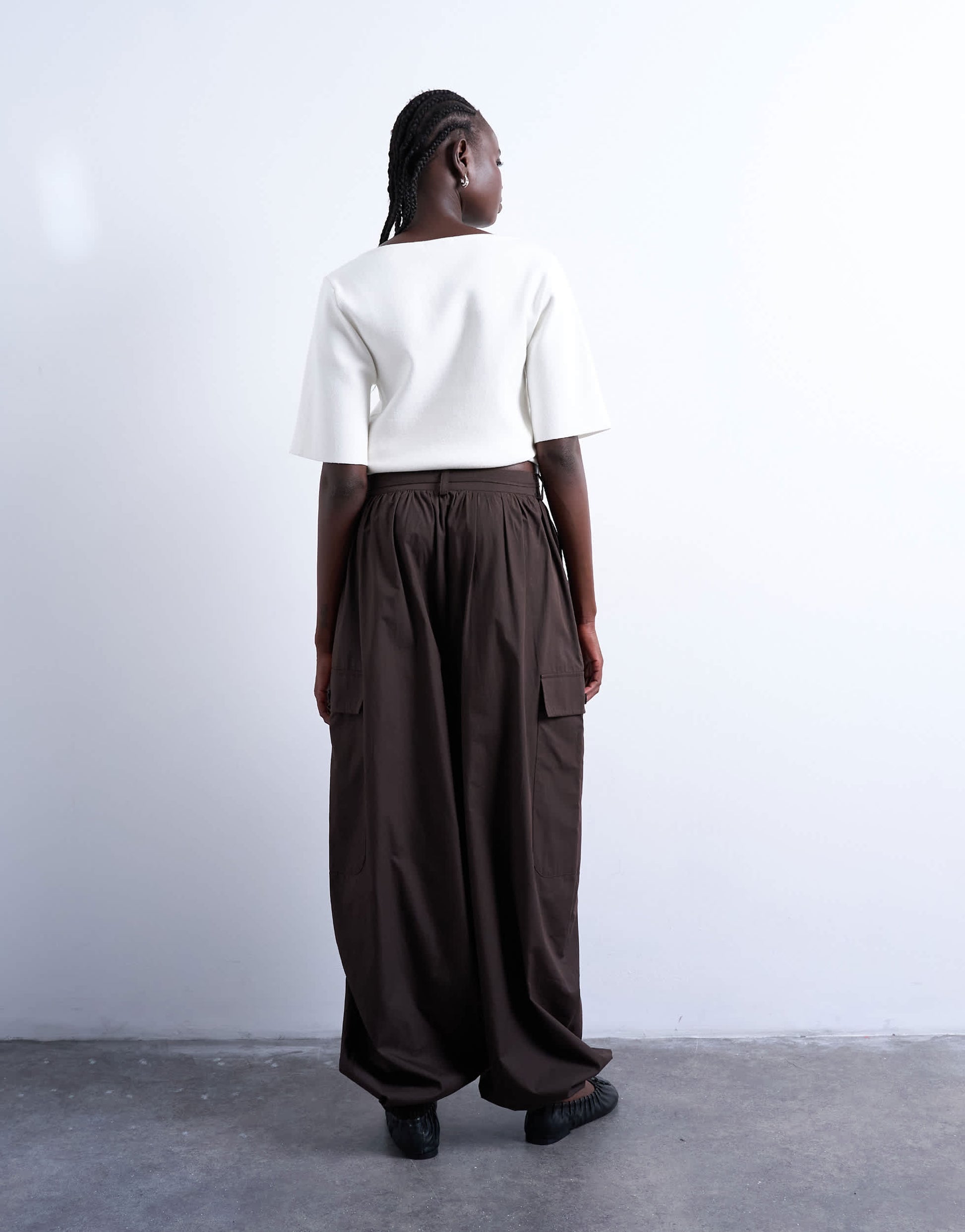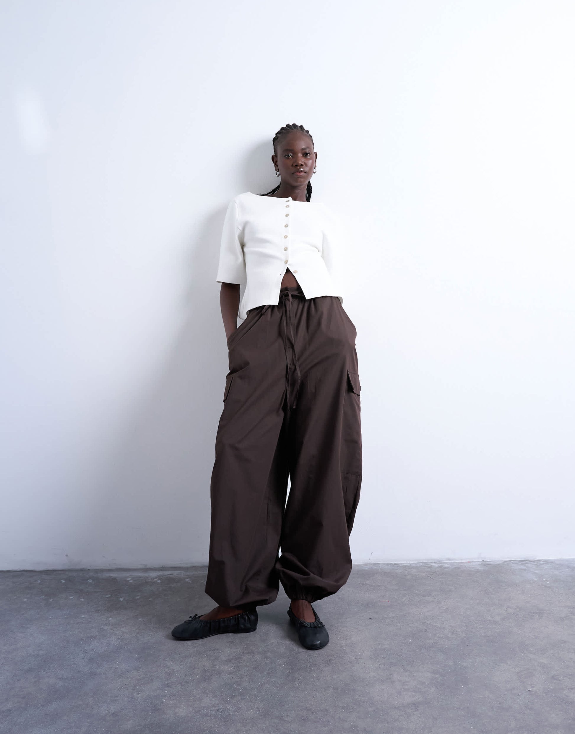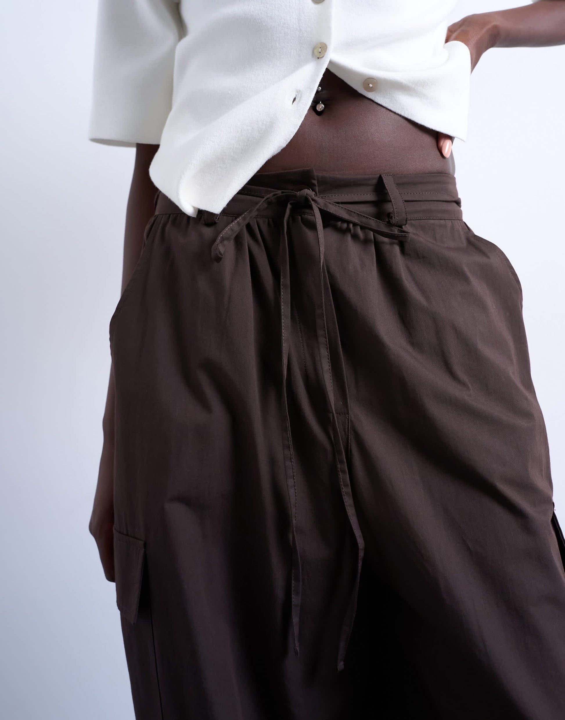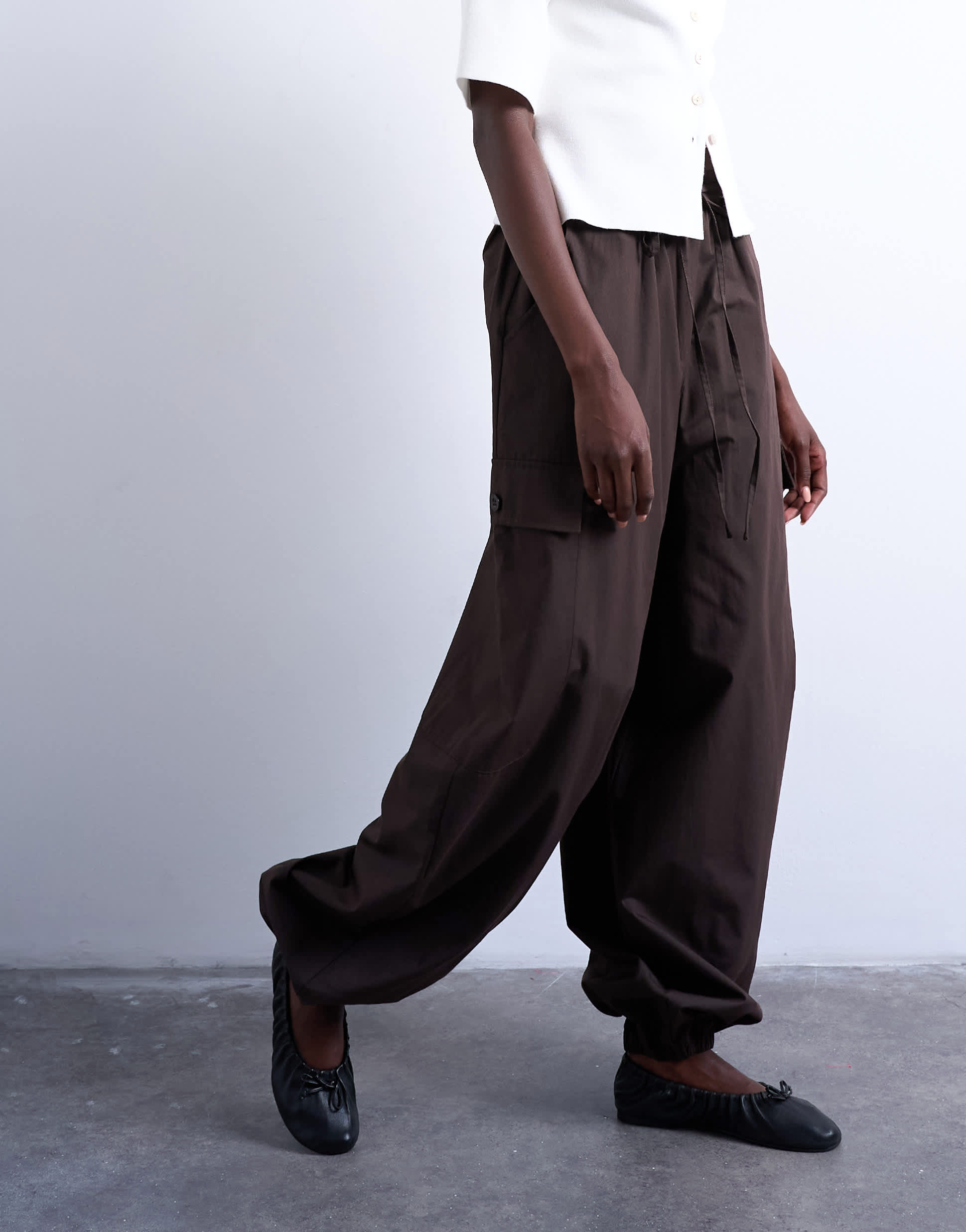 Trousers & Leggings by TopshopThese trousers are crafted from a lightweight woven fabric. They feature a mid rise, belt loops, tie waist, side and cargo pockets and fitted cuffs. They are cut with a balloon leg.