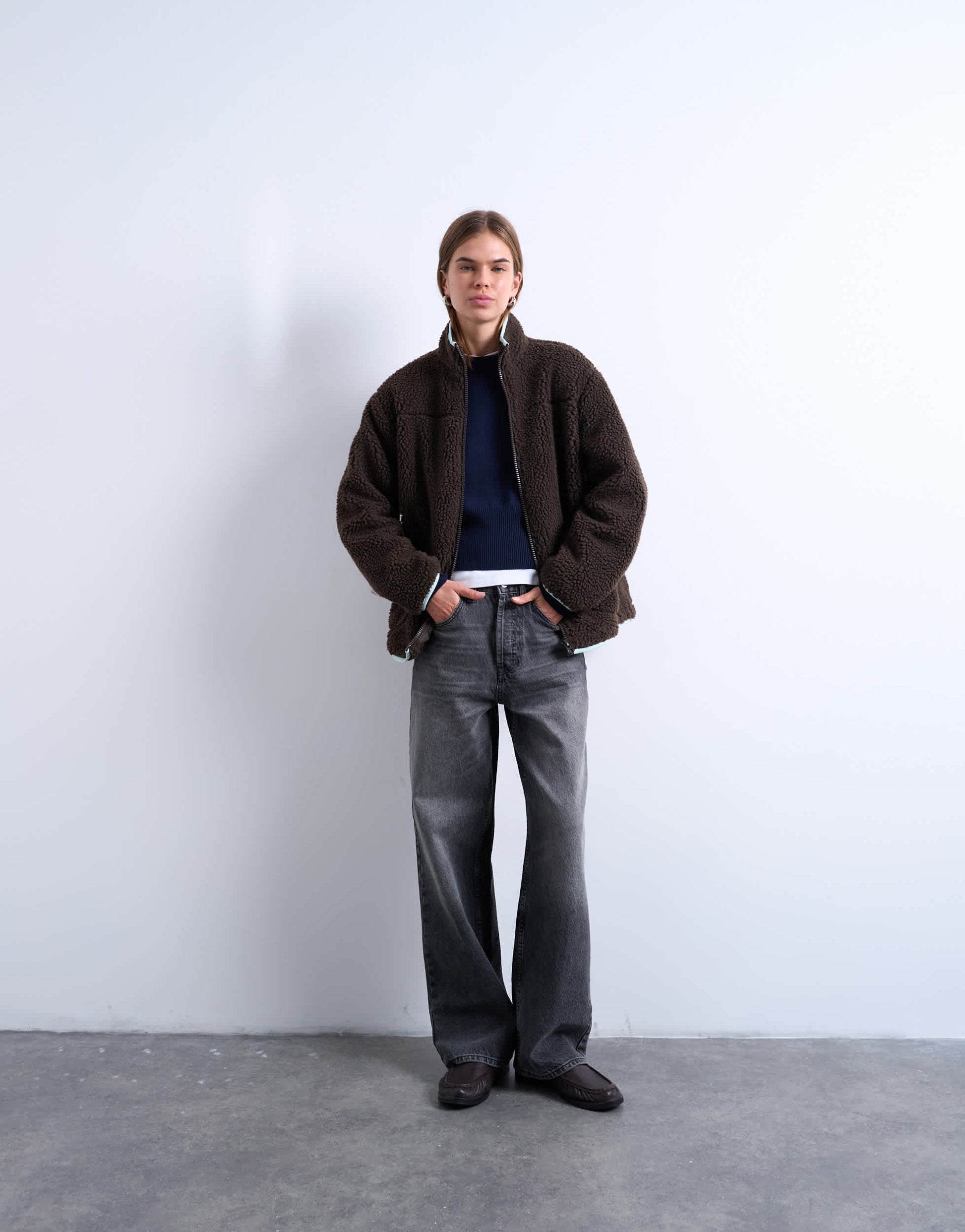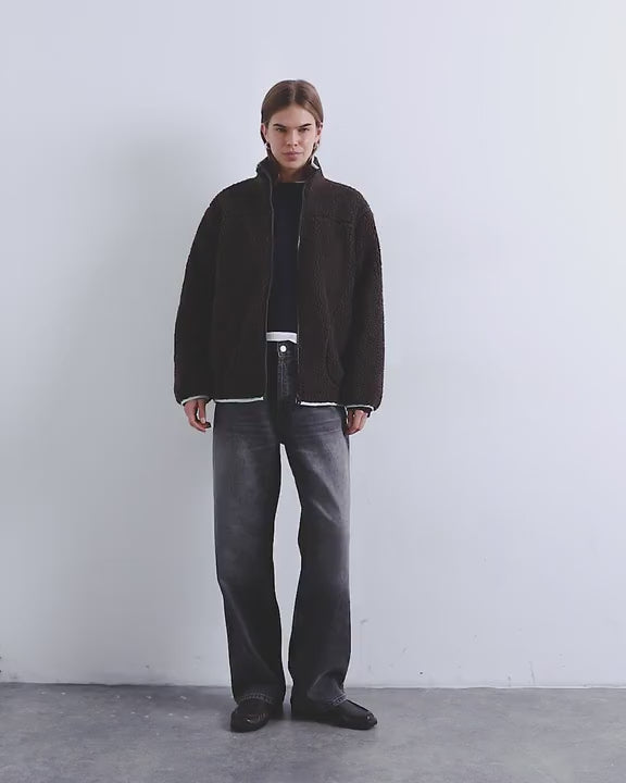 Coats & Jackets by TopshopThis fleece is crafted from plush borg in a chocolate-brown shade. Featuring a funnel neck, zip fastening and side pockets, this style is complete with contrast piping and is cut to a relaxed fit.