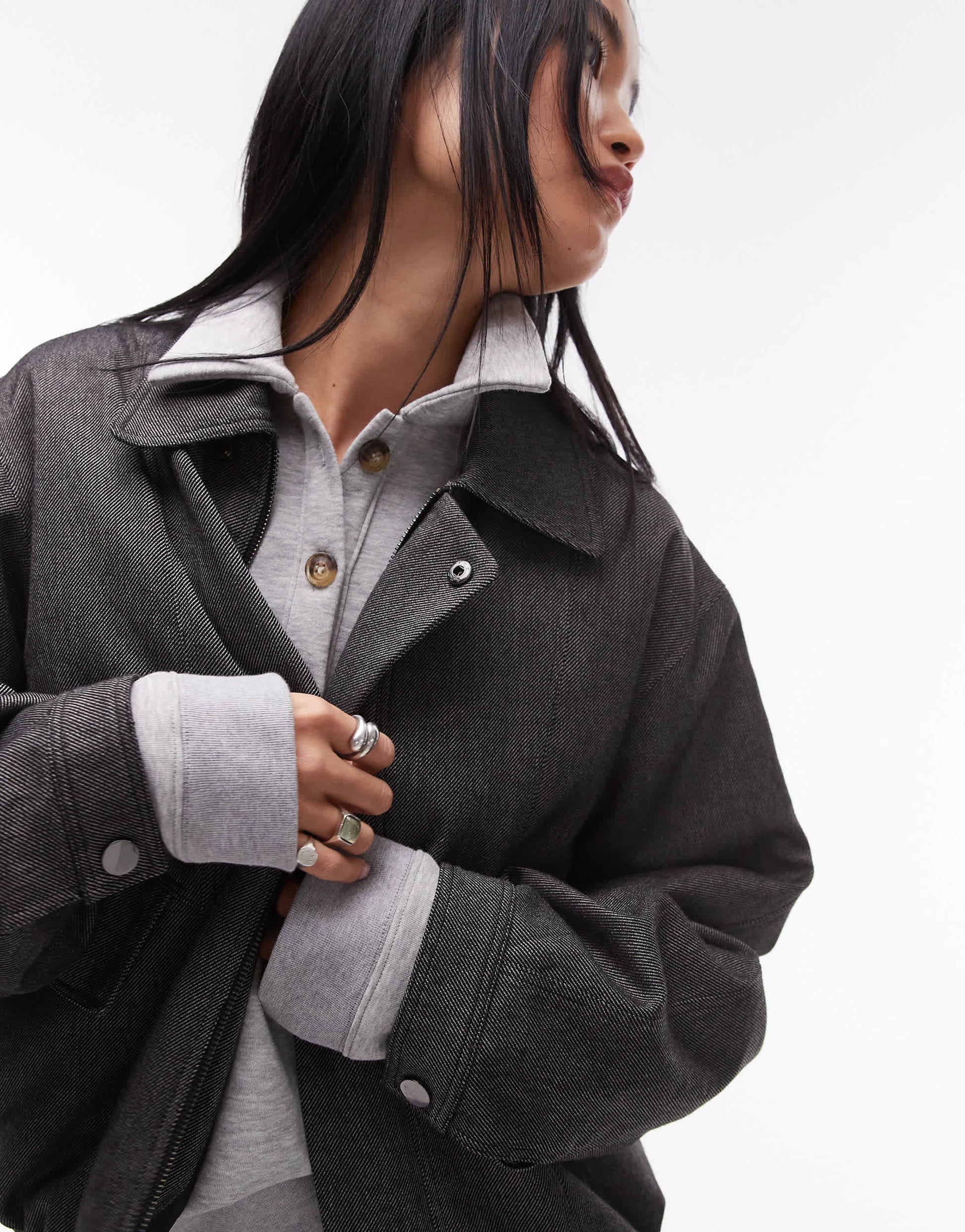 Topshop co ord tailored bomber style jacket in charcoal