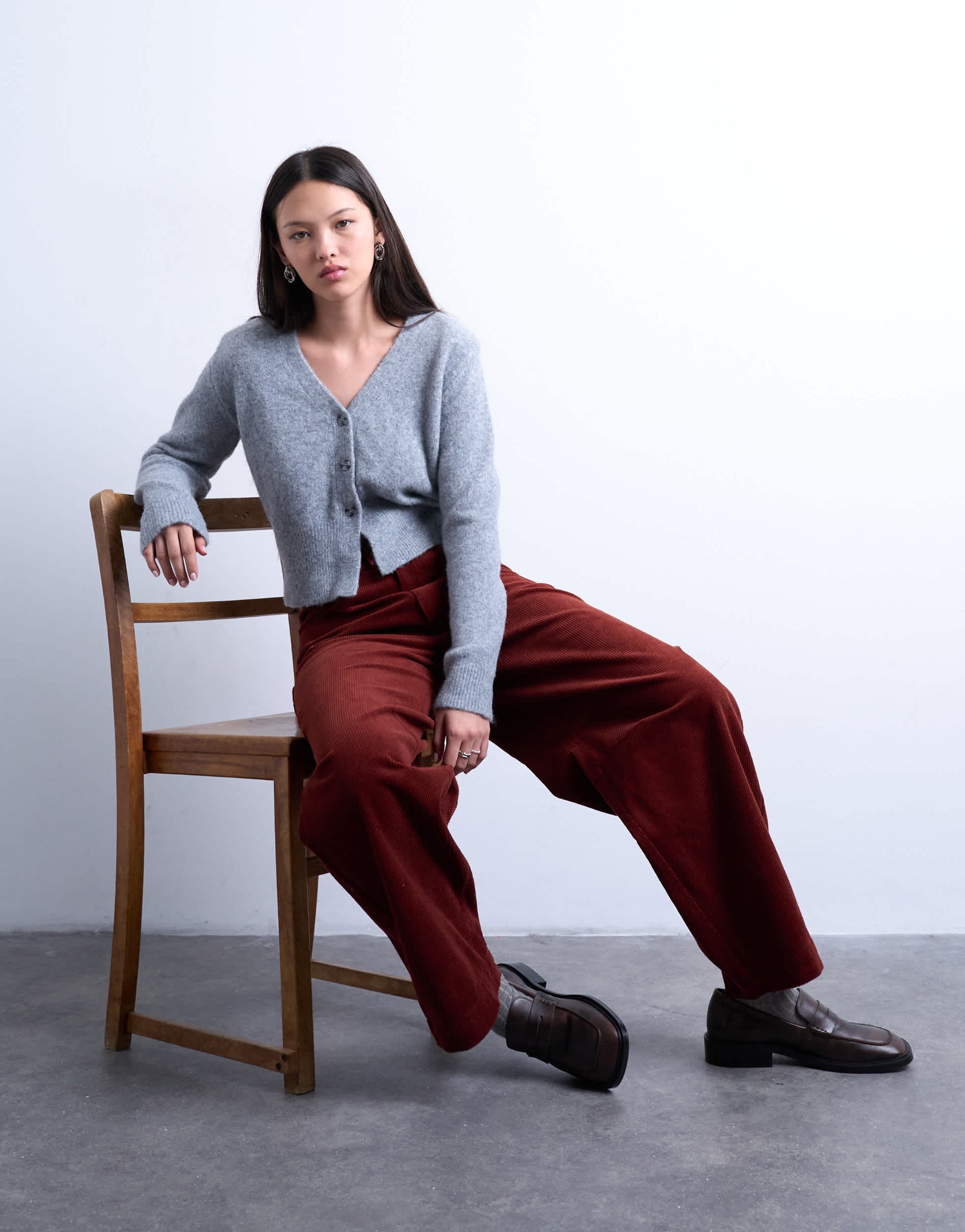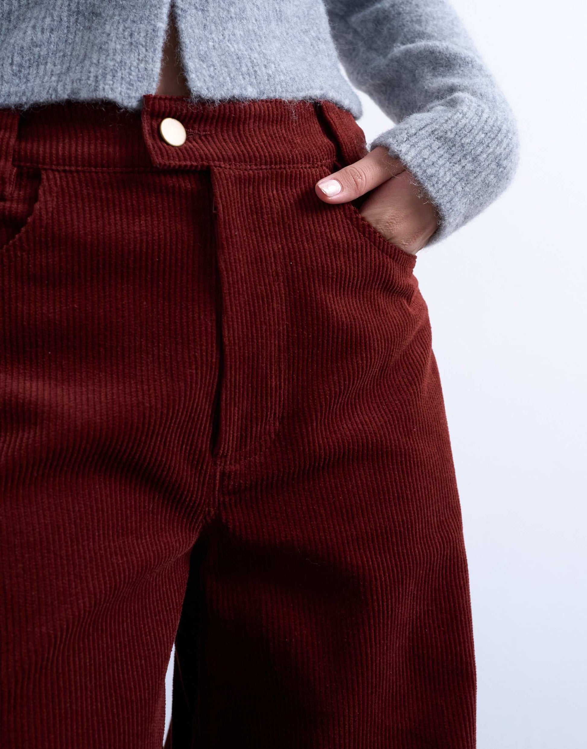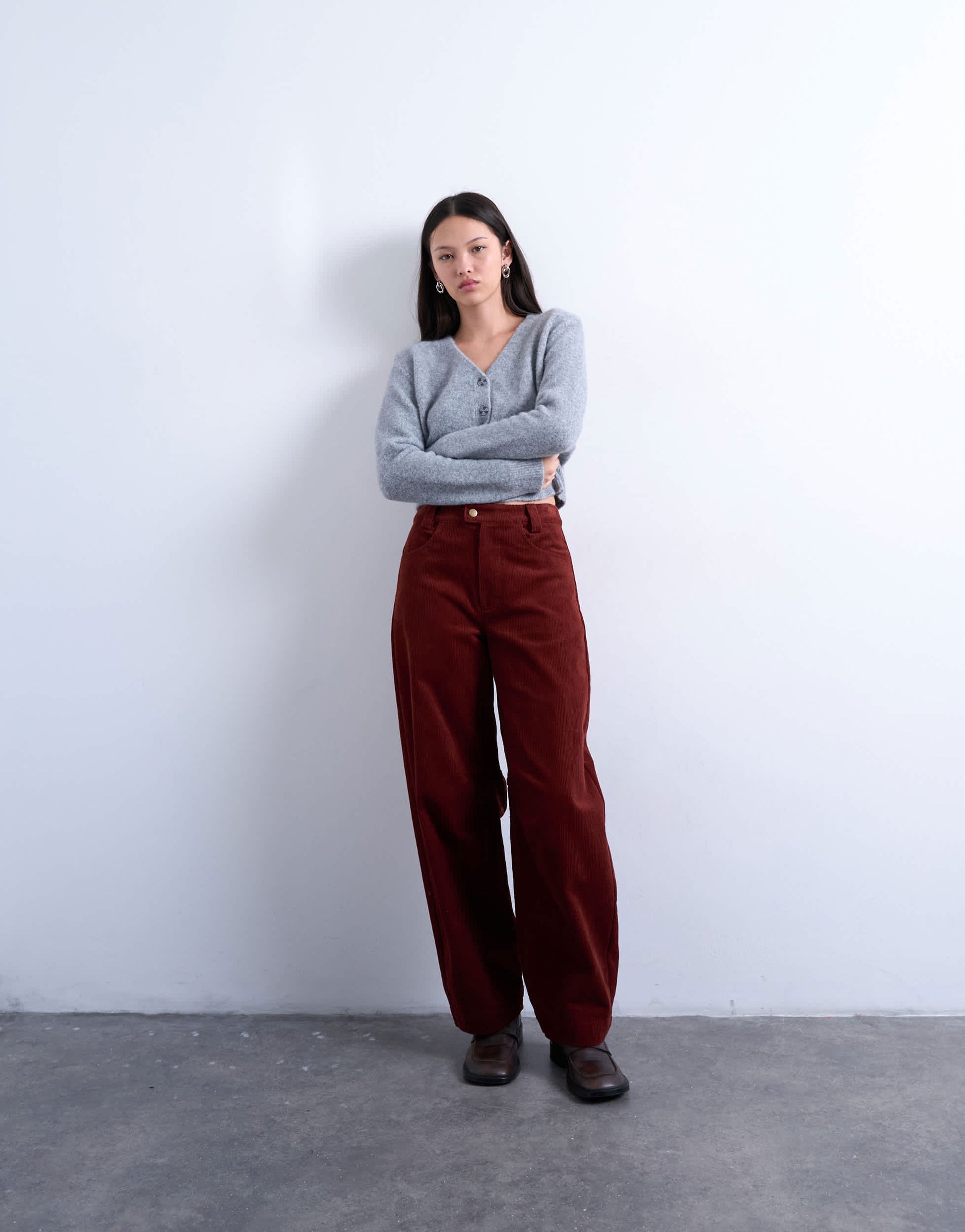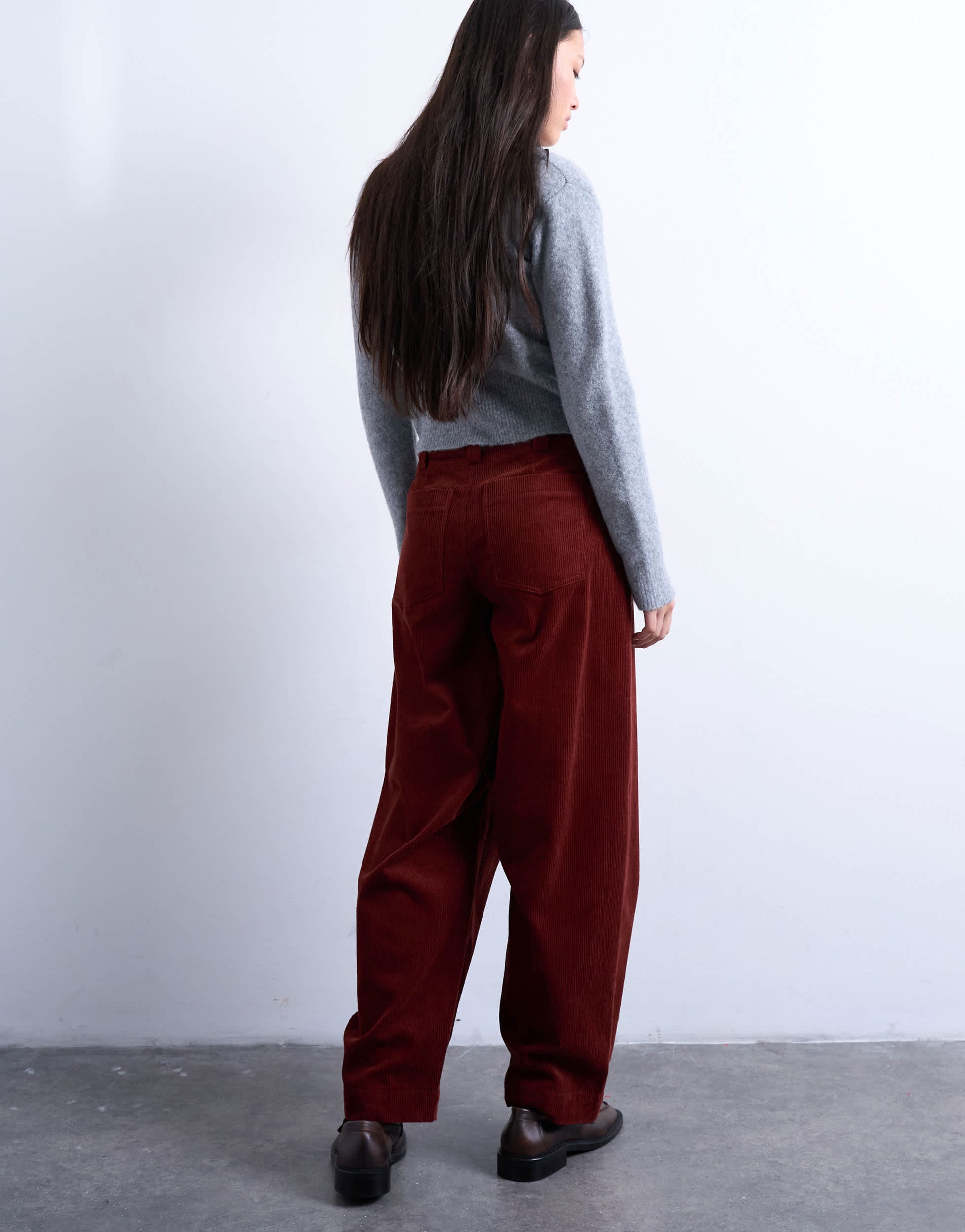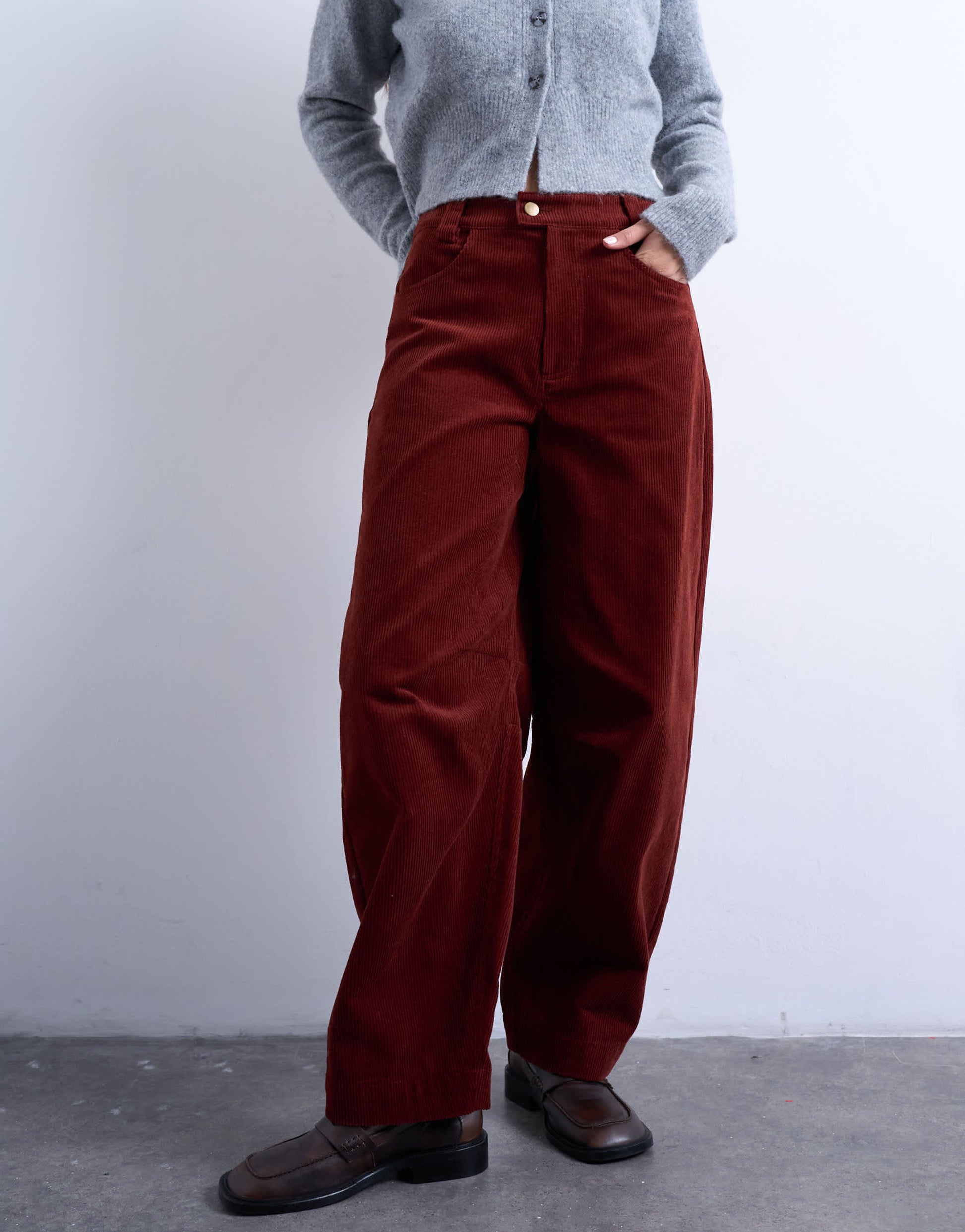 Trousers & Leggings by TopshopThese trousers are crafted from a soft, ribbed corduroy. They feature a high-rise waist, belt loops, functional side and back pockets and are cut with a barrel leg.