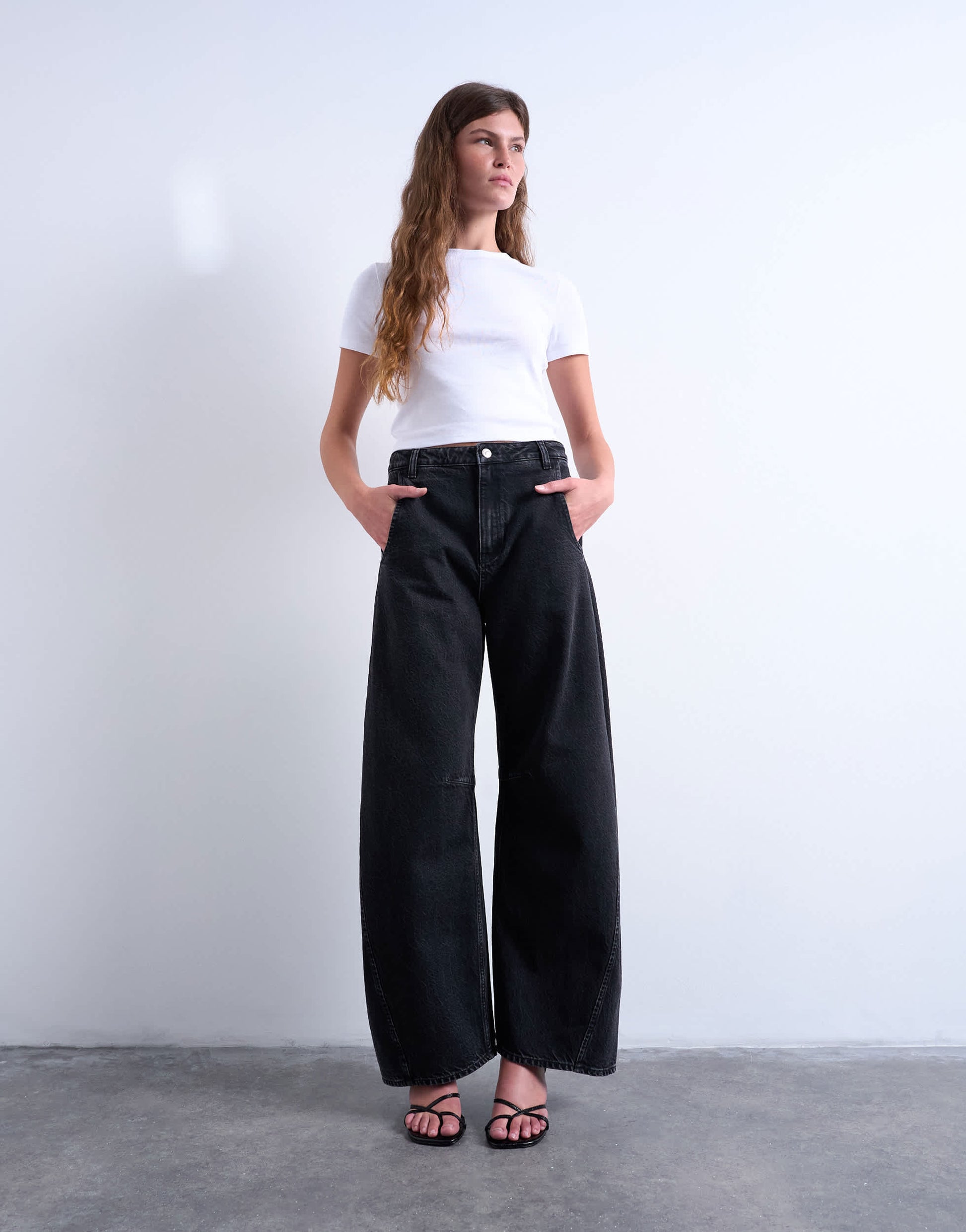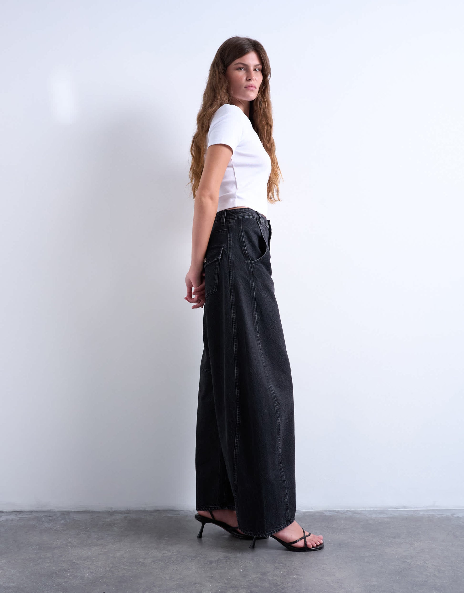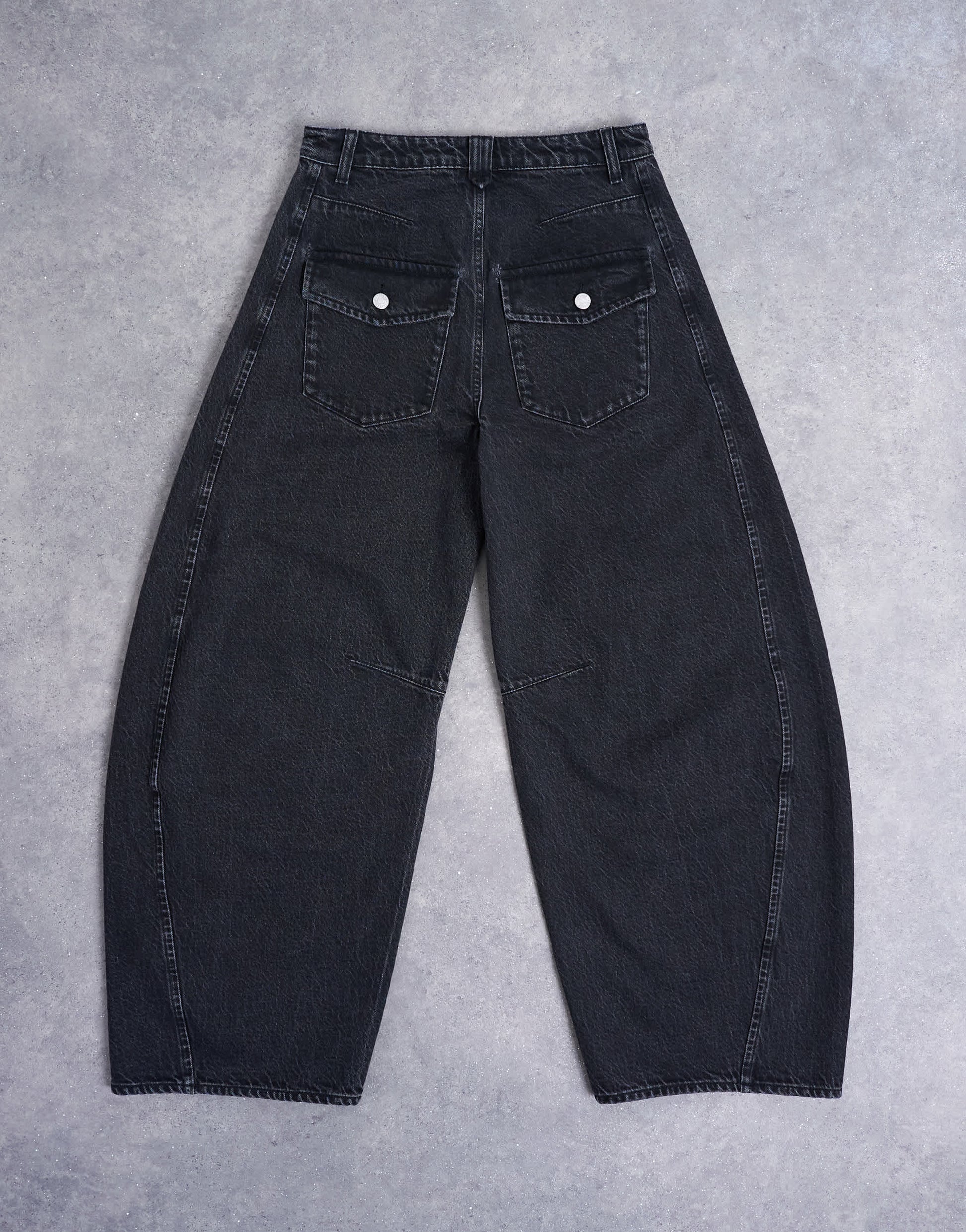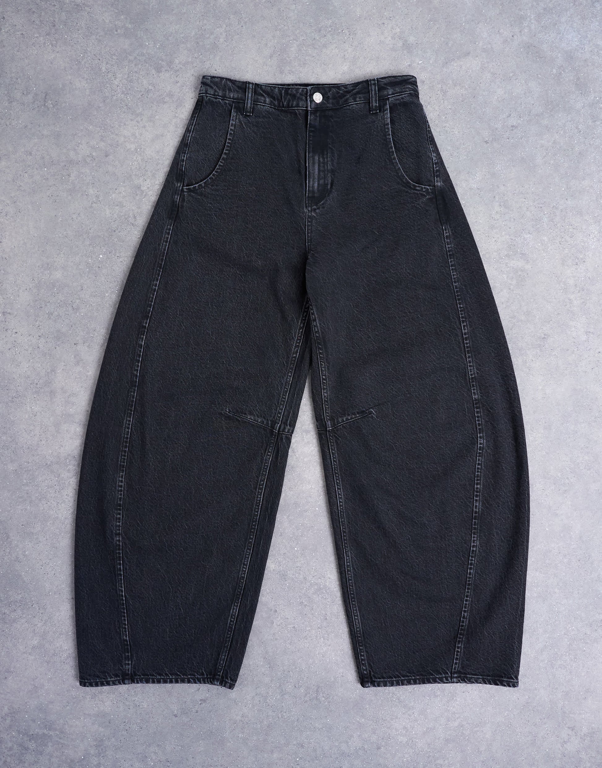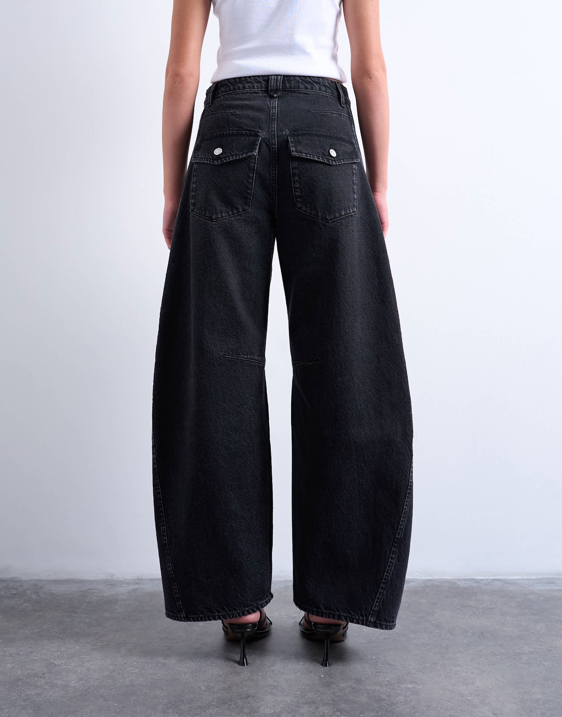 Jeans by TopshopThe Horseshoe jeans are cut with extra room around the thighs on a high-rise waist. They follow a classic barrel leg style before tapering at the ankle and feature belt loops, a concealed fly and four pockets. Crafted from classic, non-stretch denim, this style is finished in a worn-in black wash.