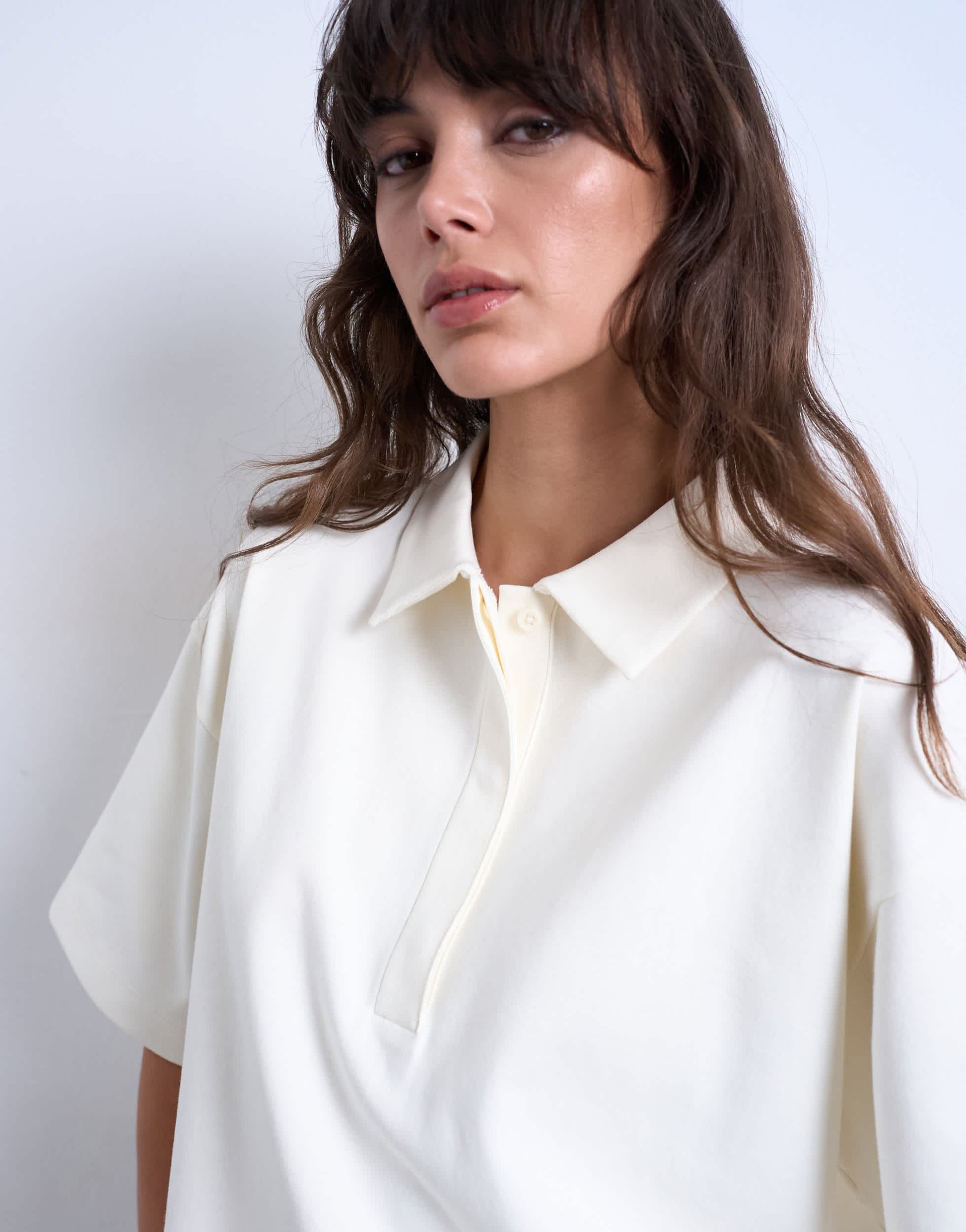 Tops by TopshopIn thick, heavyweight jersey, this top features a polo collar, a concealed button placket and short sleeves. It is cut with a boxy fit.