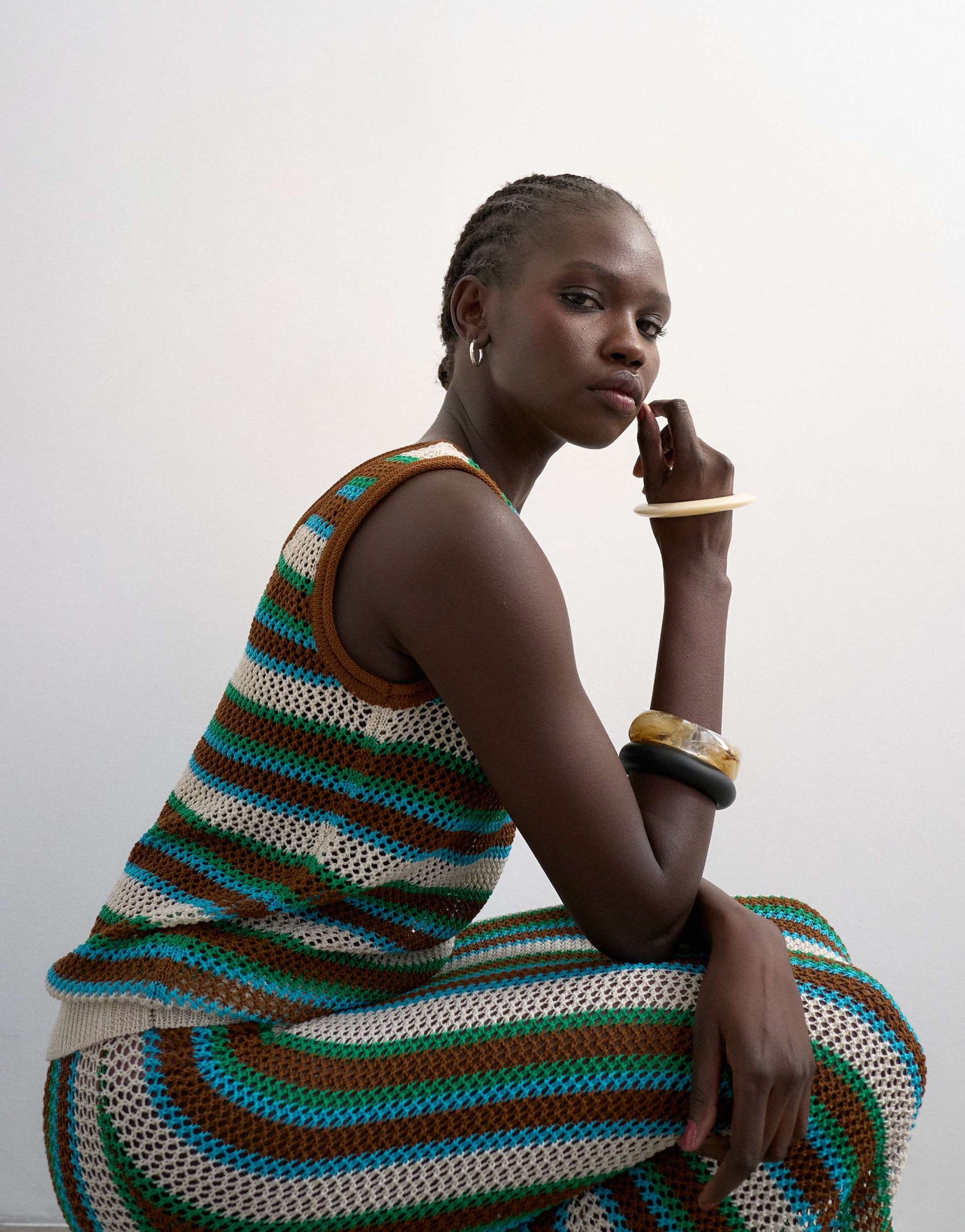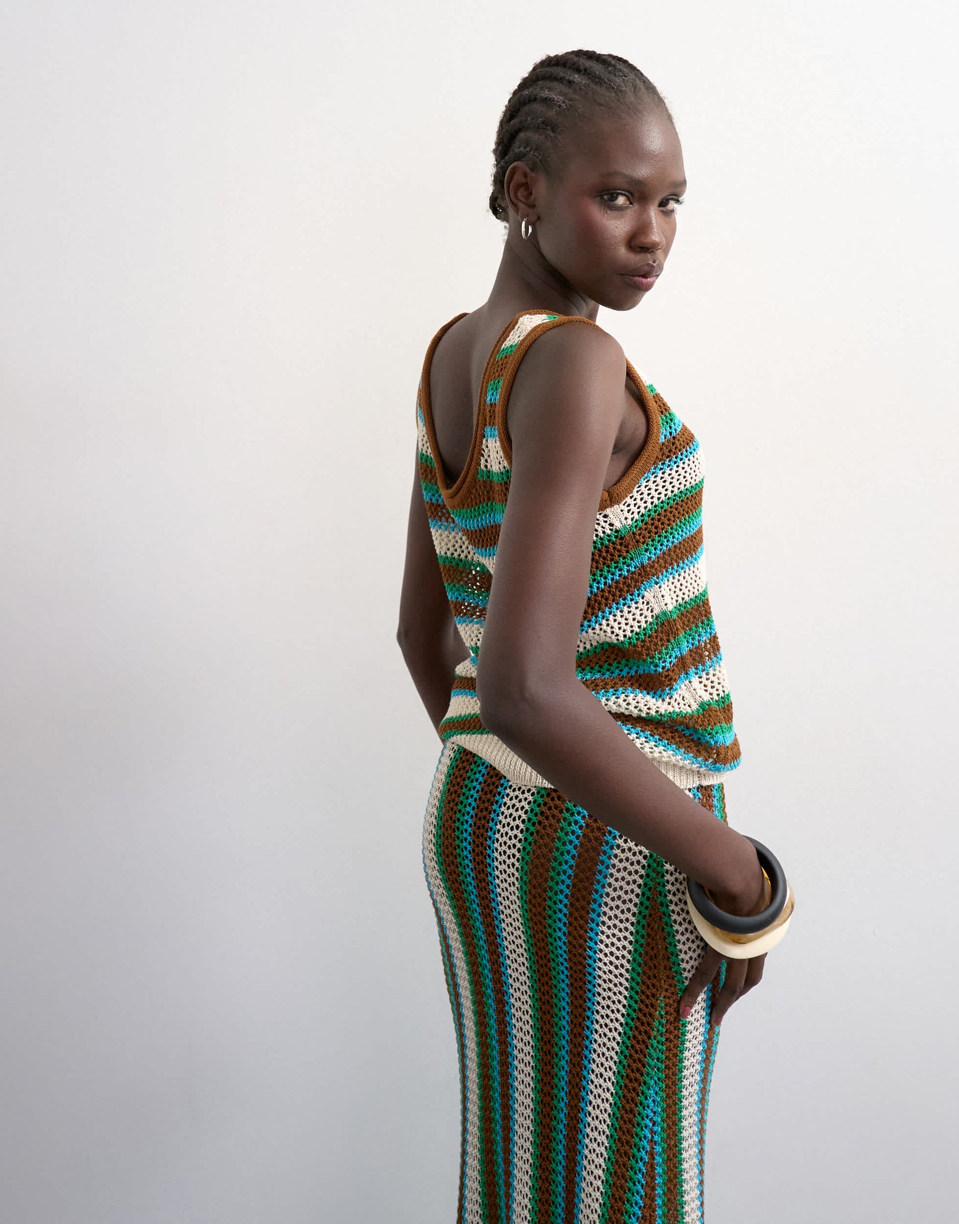 Tops by TopshopThis vest top is crafted from a chunky knit in a loose-weave construction. Featuring a striped design, this style is complete with a scoop neck and back on a regular fit.
