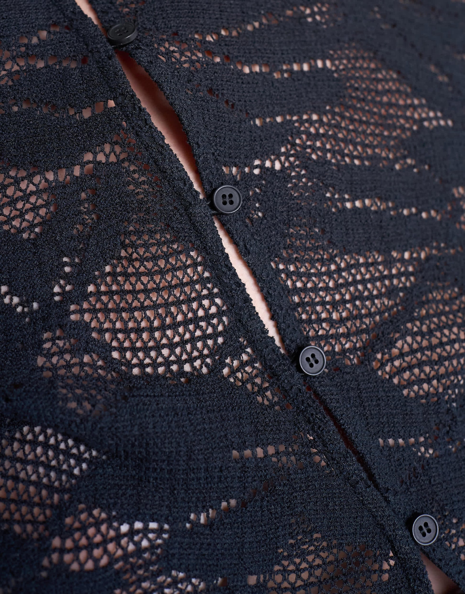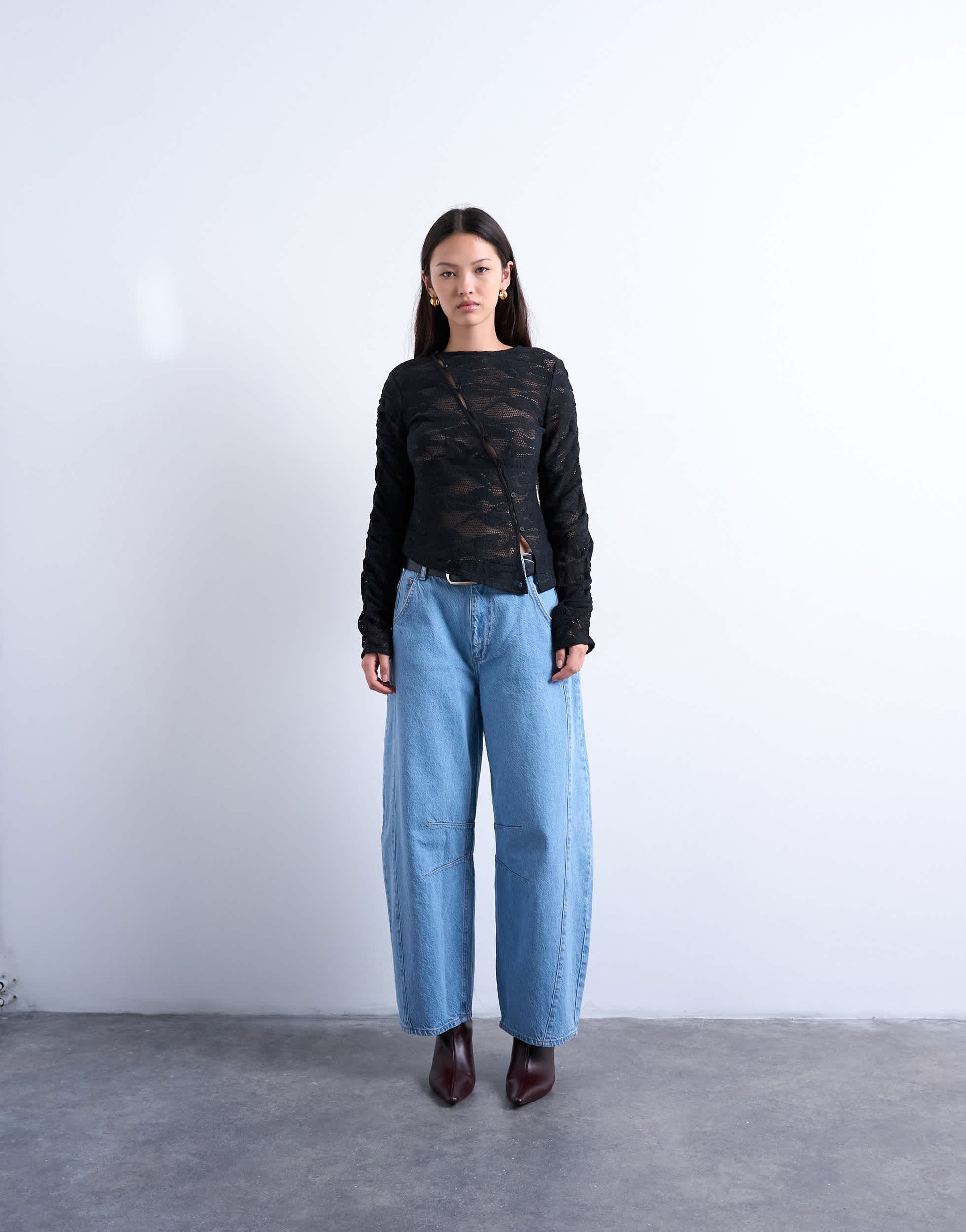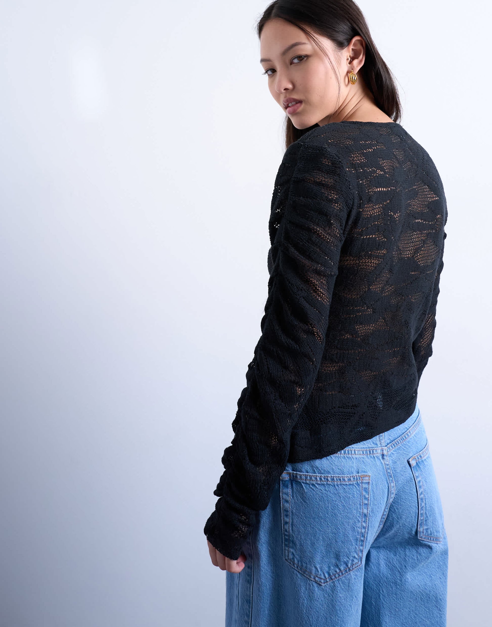 Tops by TopshopThis top features a boat neck, long sleeves and an asymmetric button placket. It is cut from semi-sheer floral lace with a slim fit.