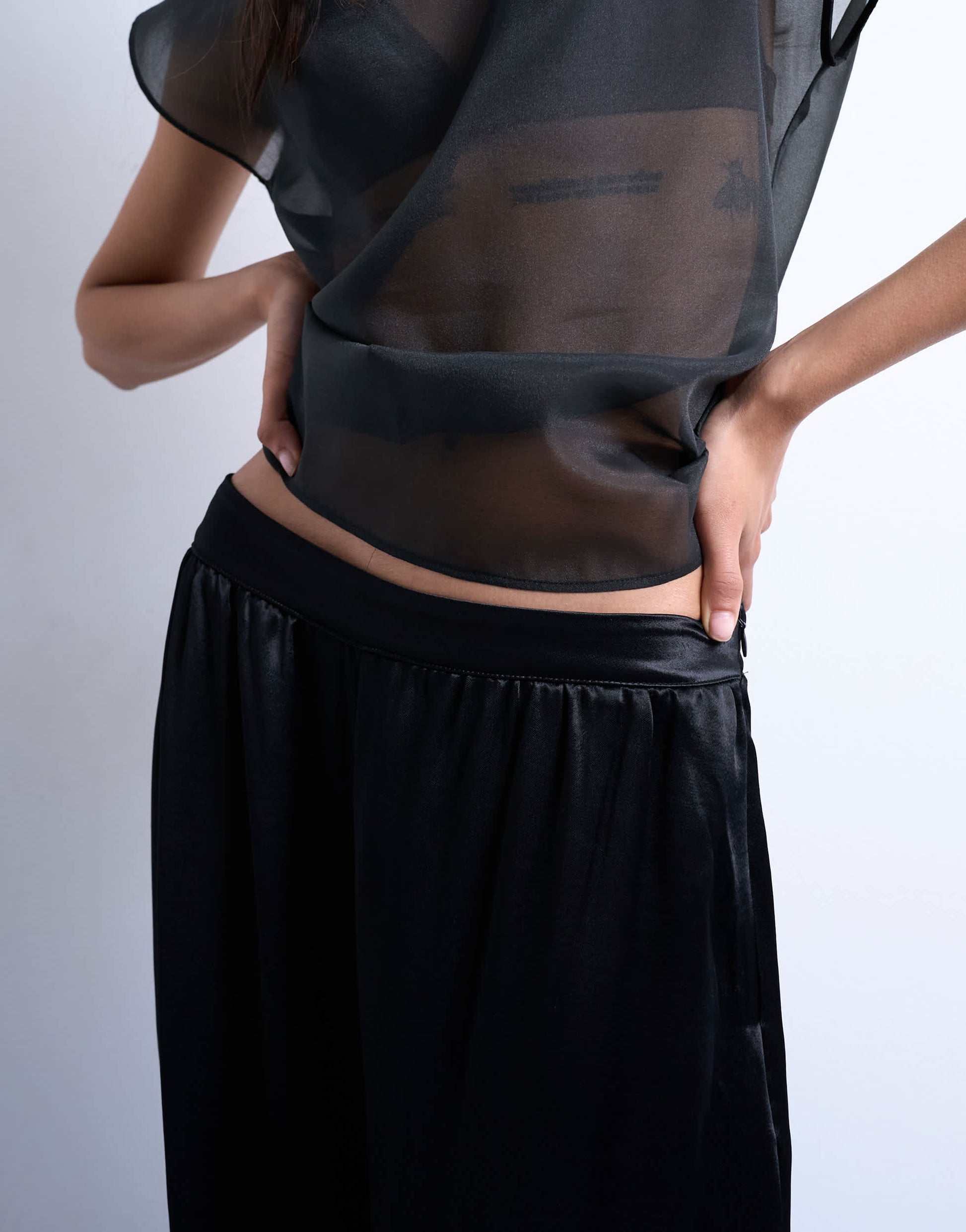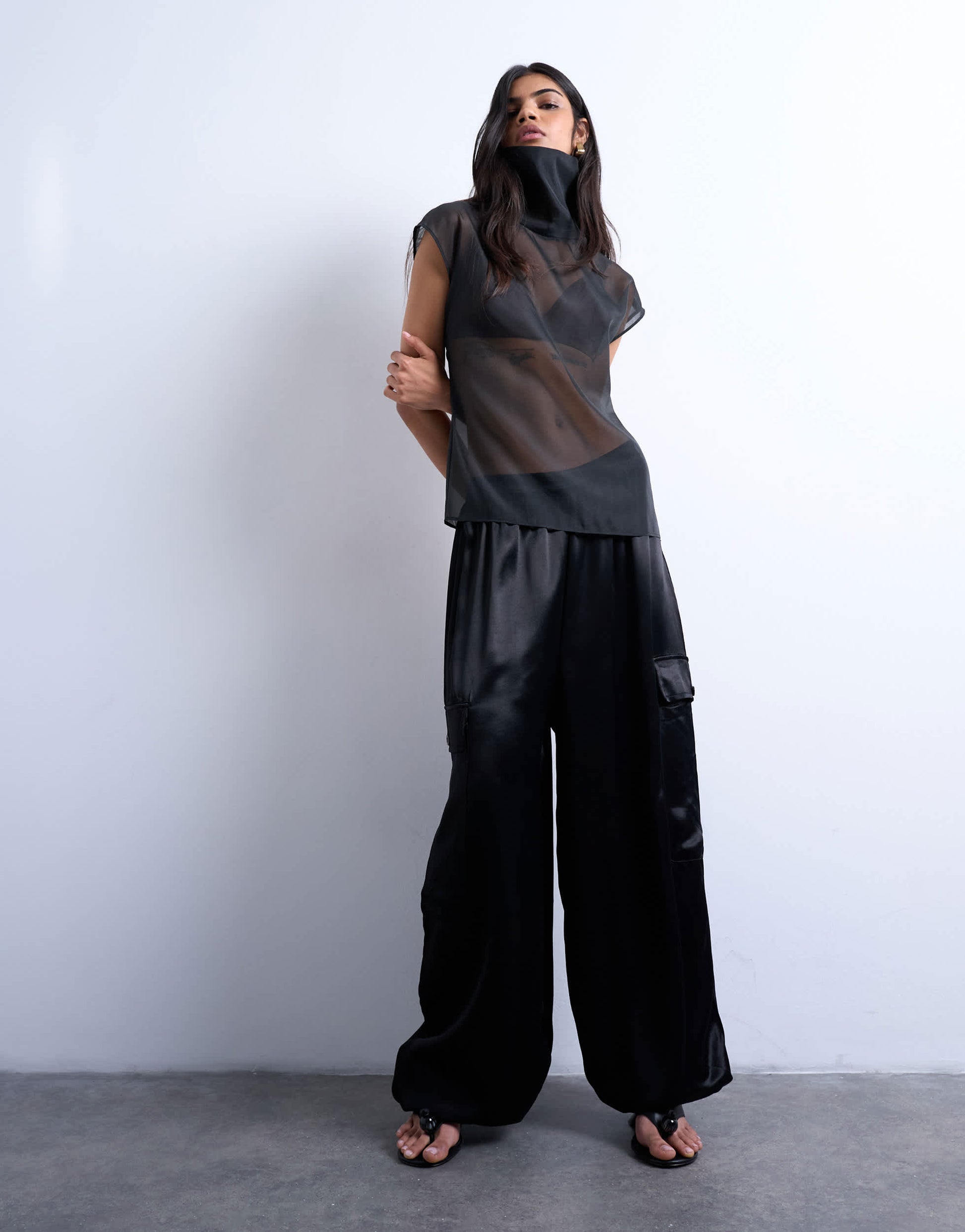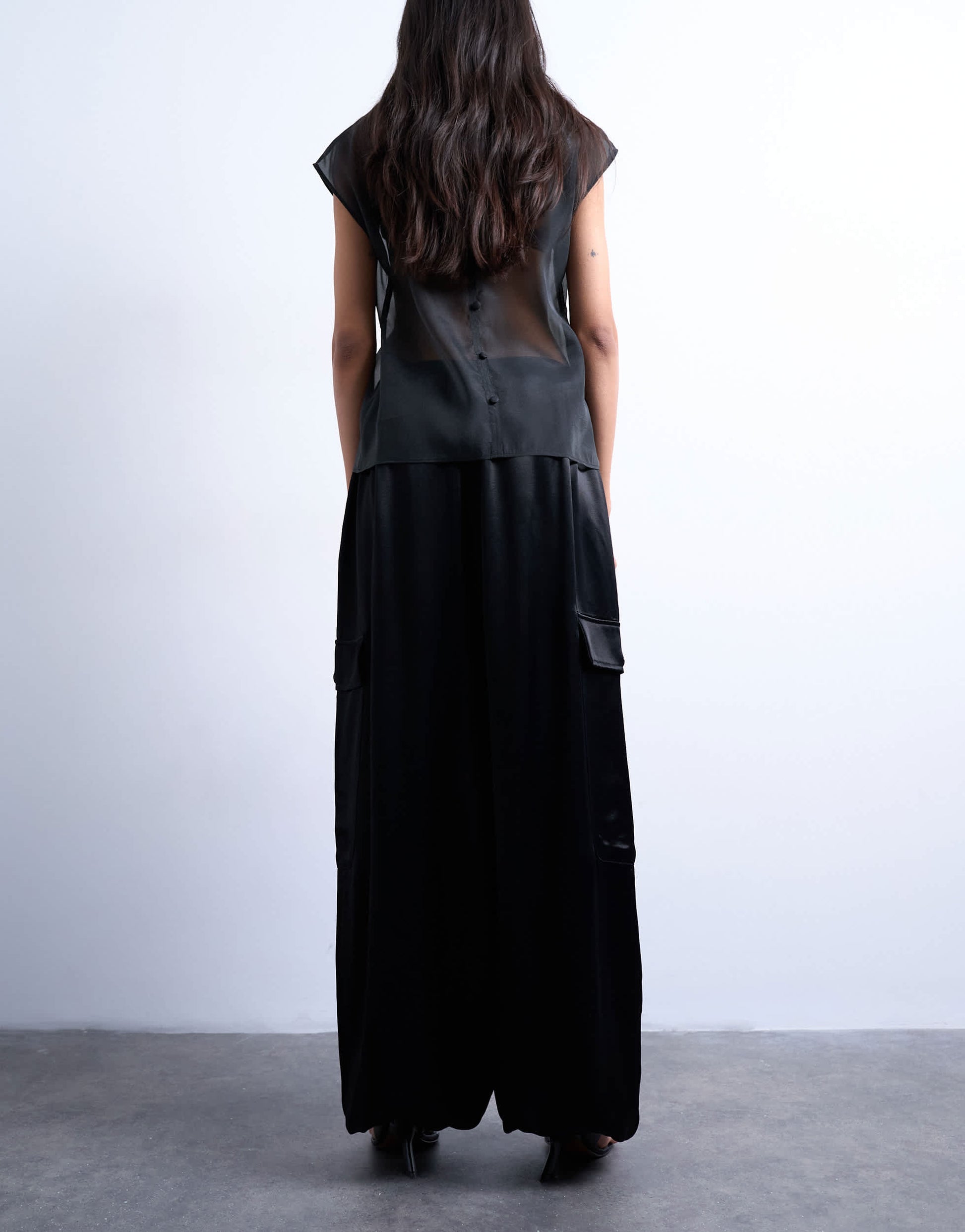 Topshop satin cargo balloon trouser in black