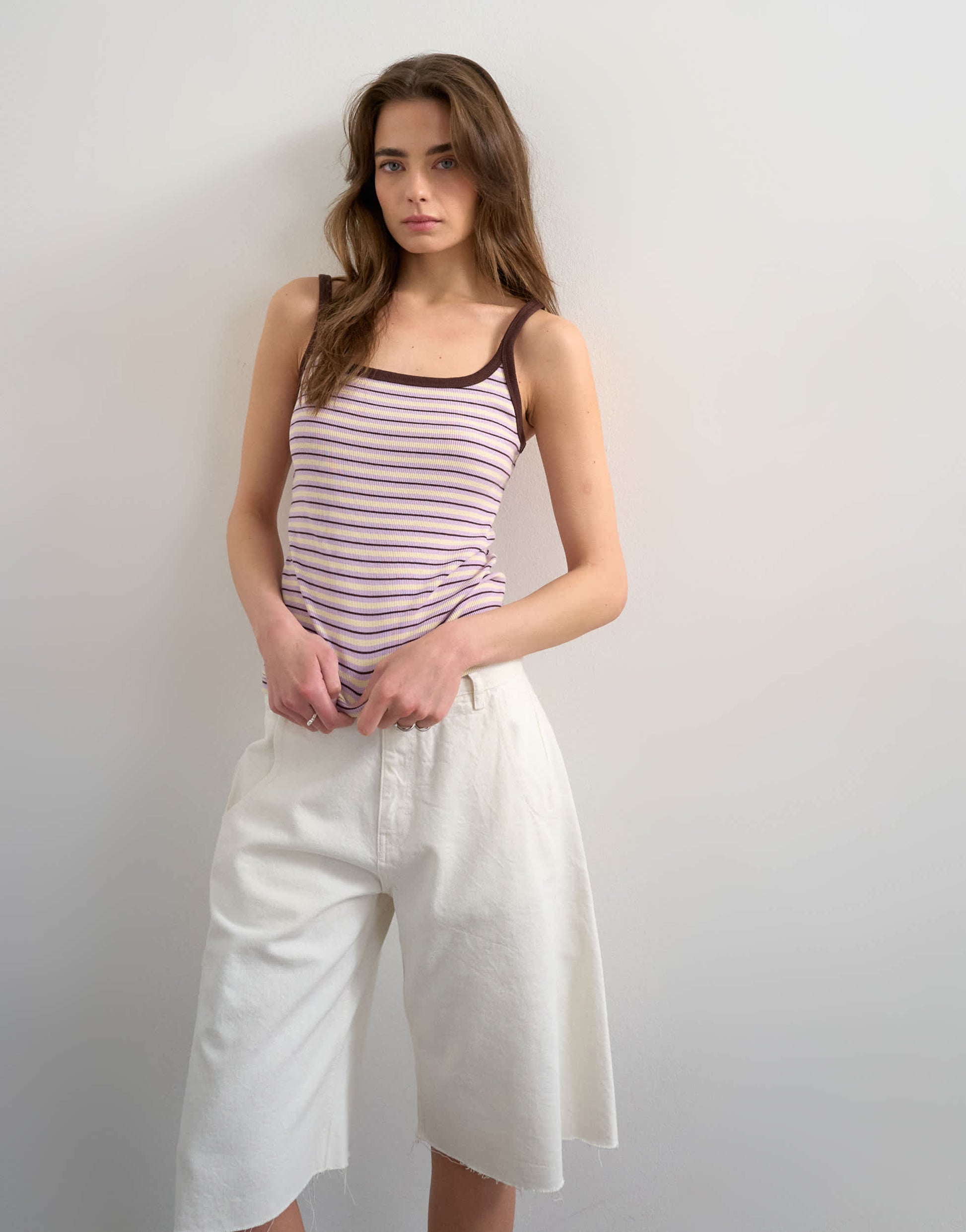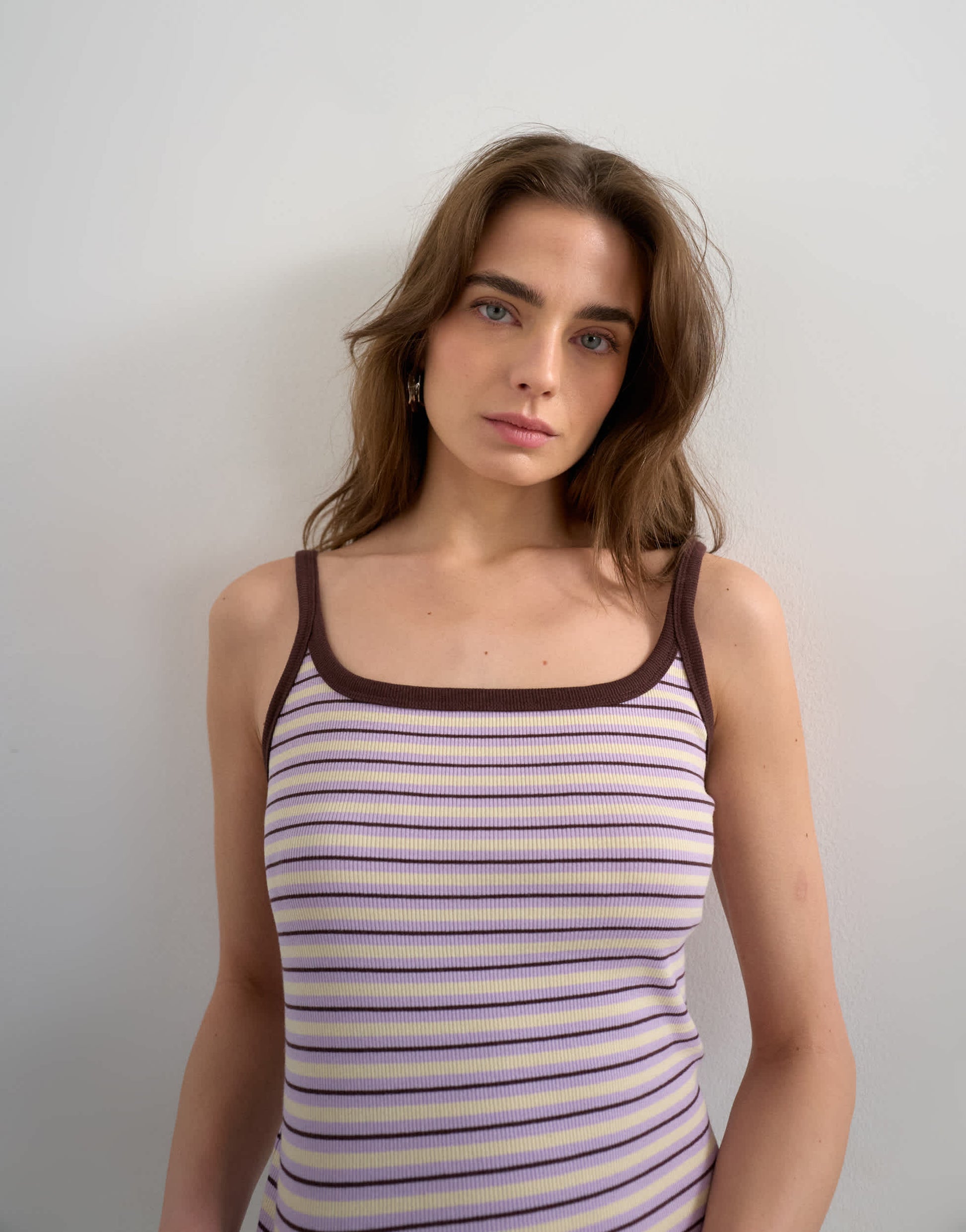 Tops by TopshopThis top is crafted from a ribbed, jersey fabric. It features a striped pattern, scoop neck, contrast trims and skinny straps. It is cut with a regular fit.
