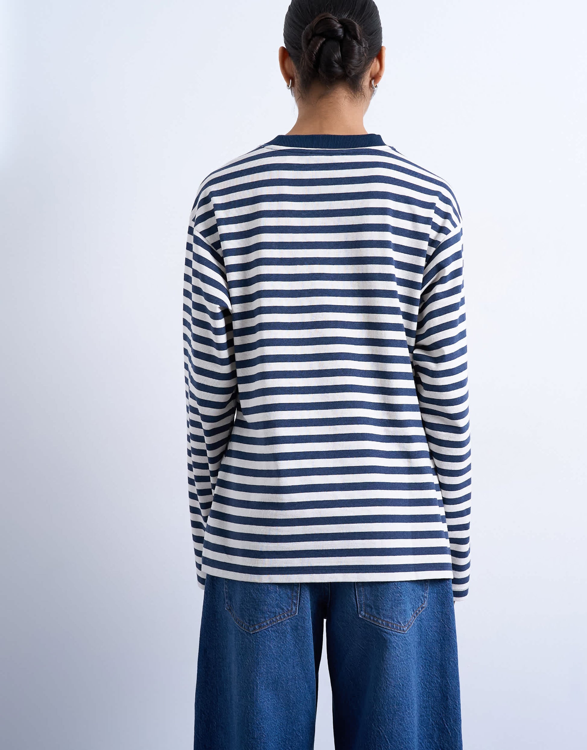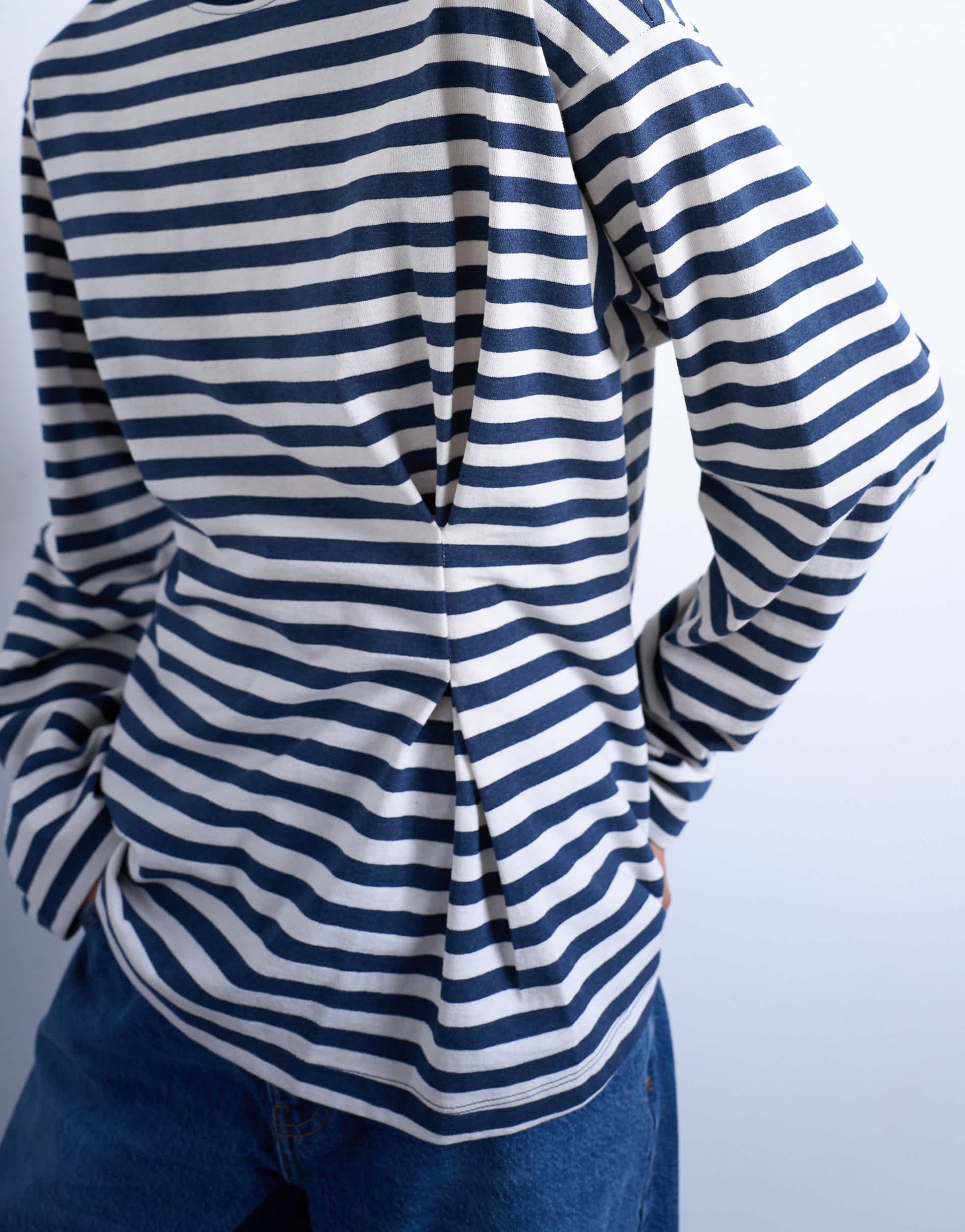 In a nautical stripe pattern, this tee features a crew neck, long sleeves and a tuck to its waist. It is cut from soft, breathable jersey.