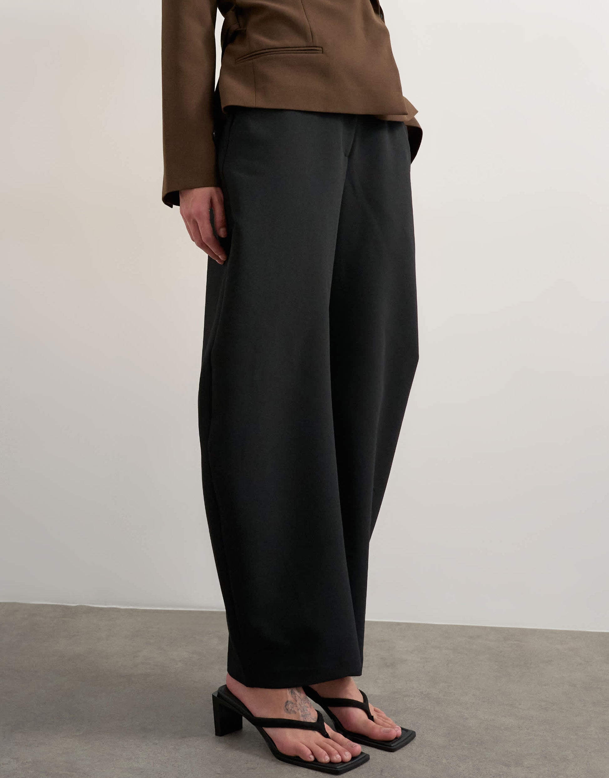 Trousers & Leggings by TopshopThese trousers are crafted from woven fabric in a black shade. They feature a mid-rise waist, concealed fly and functional pockets on a barrel leg.
