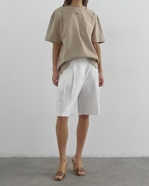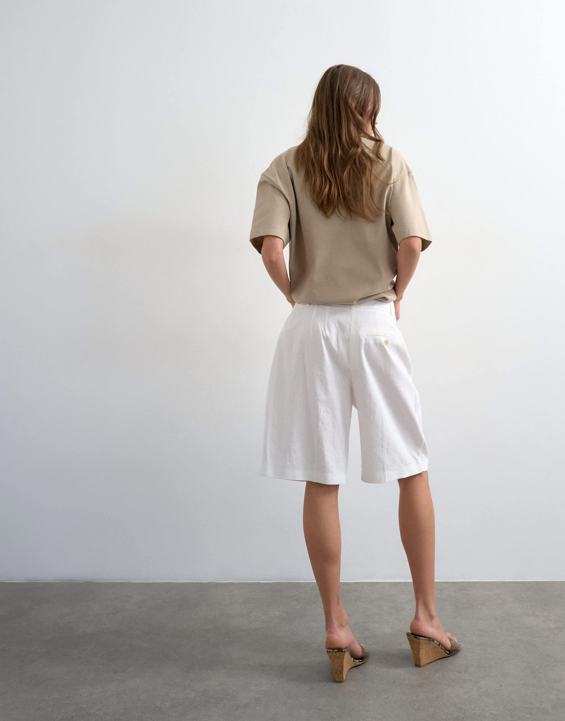 Shorts by TopshopThese shorts are crafted from woven fabric in ecru. They feature a mid-rise waist with belt loops and functional pockets. They are cut to a barrel leg on a longline cut.