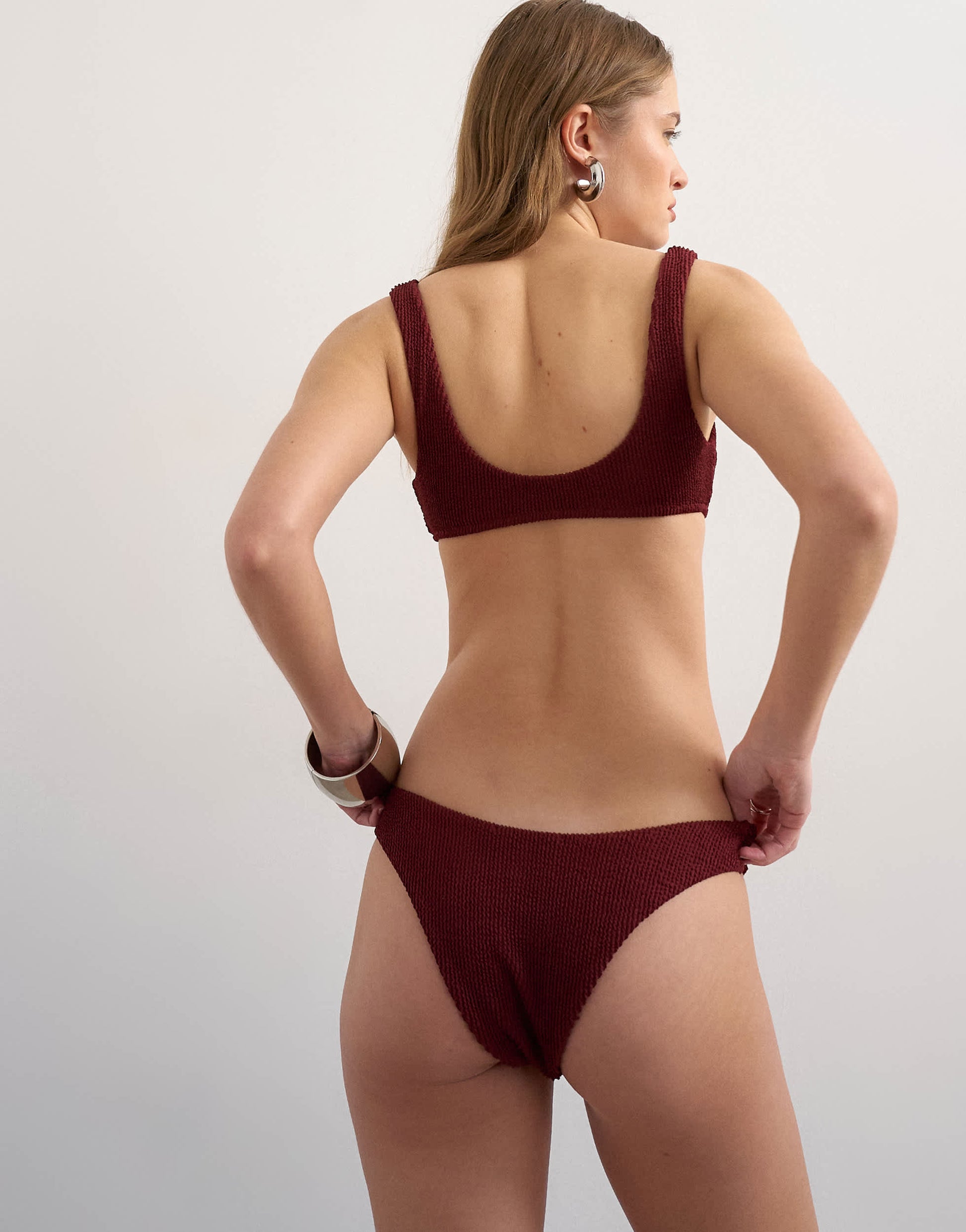 Swimwear & Beachwear by TopshopThe Tara bikini bottoms feature a low-rise waist and a high-leg, Brazilian cut. They are crafted from a textured swimsuit fabric in a deep red shade.