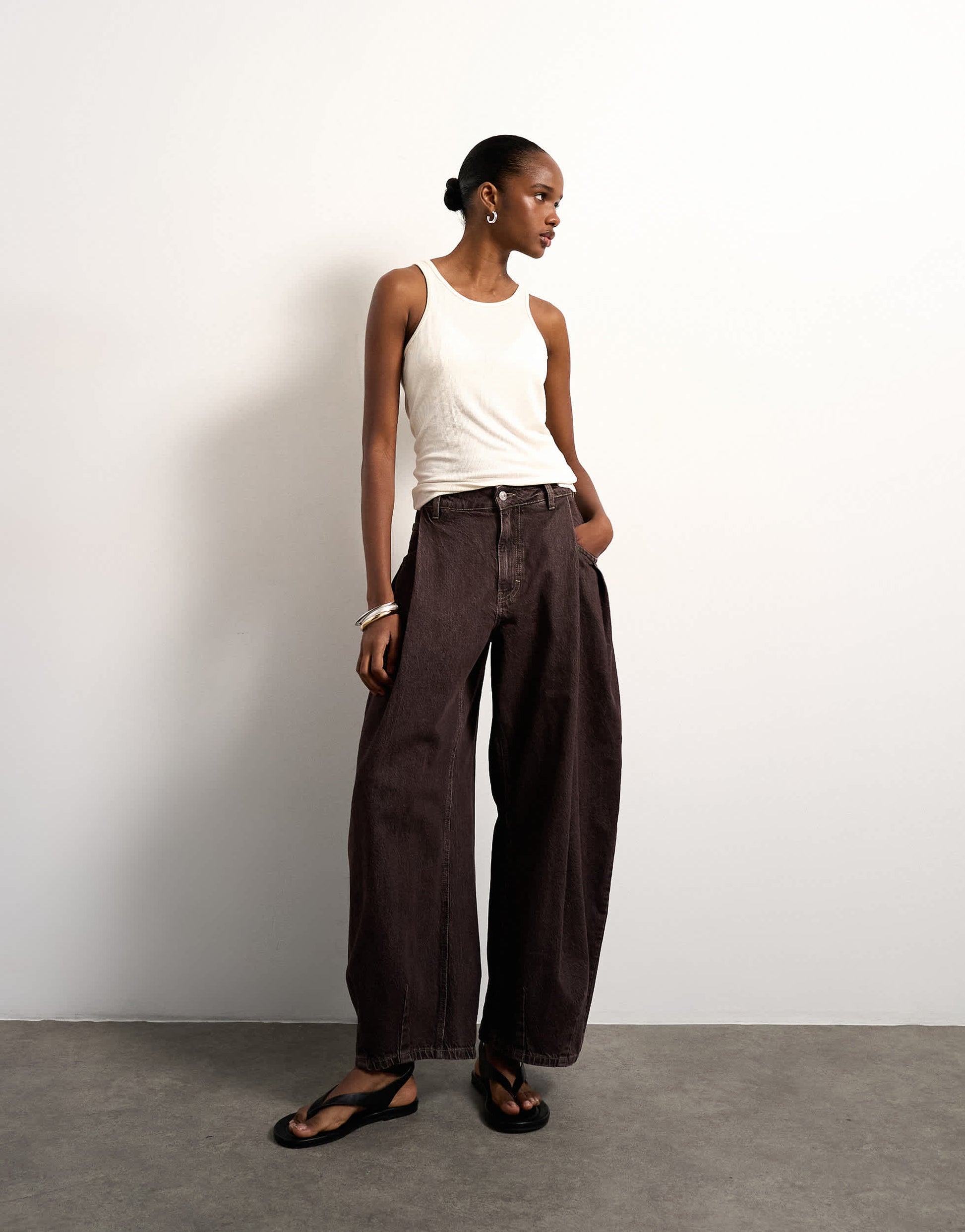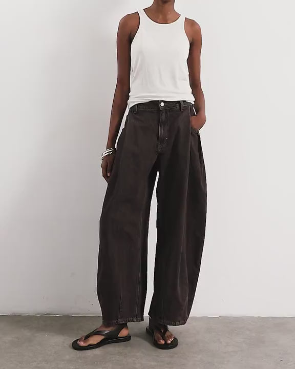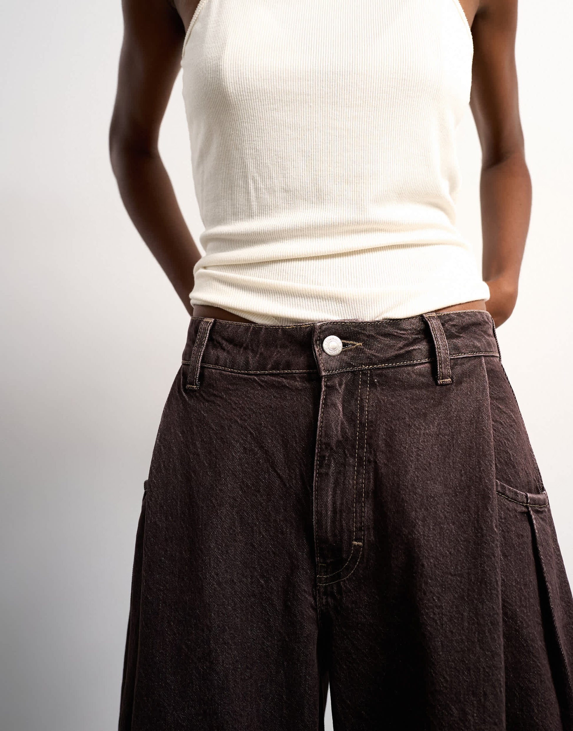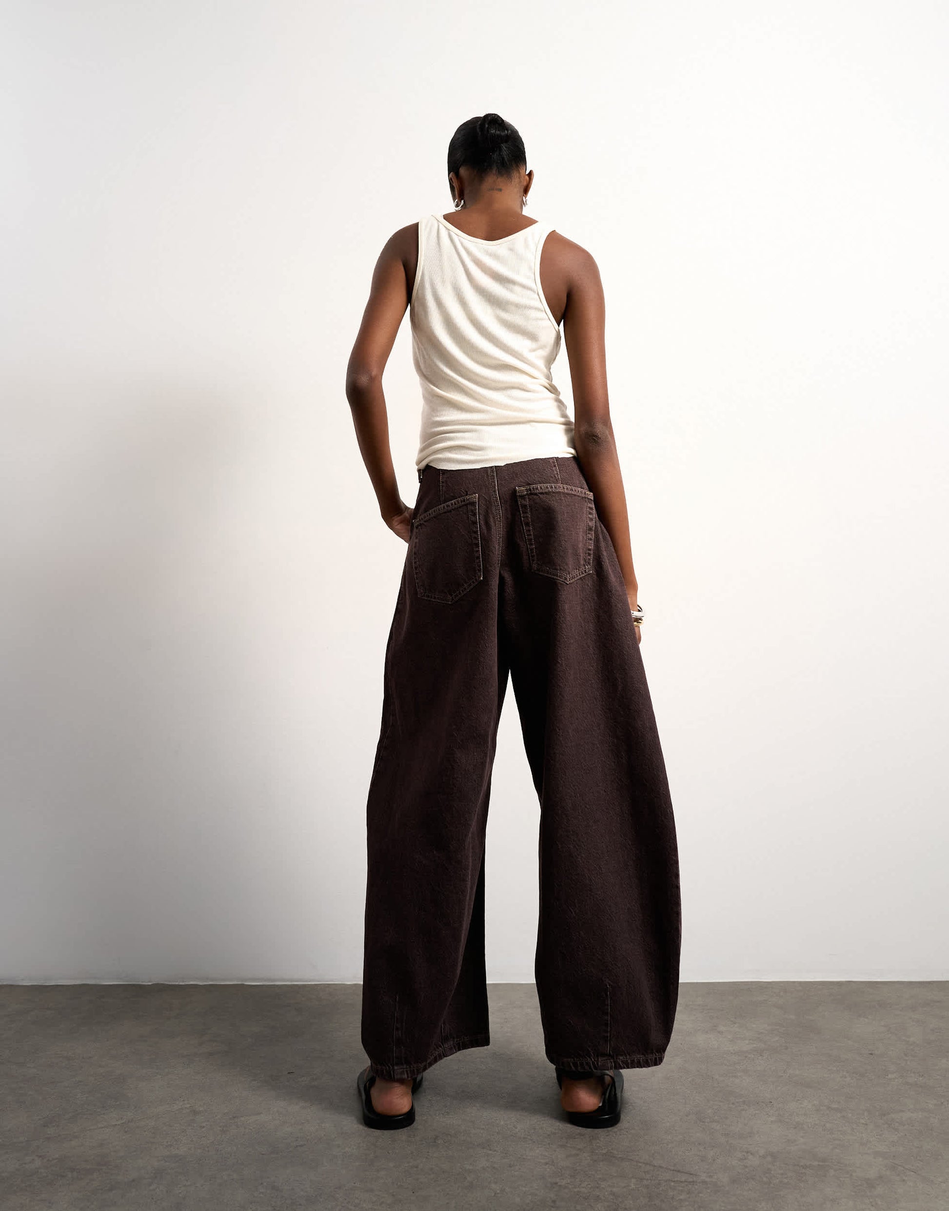 Jeans by TopshopThese jeans are crafted from non-stretch denim in a chocolate wash. They feature belt loops, functional pockets and are cut to a barrel leg.