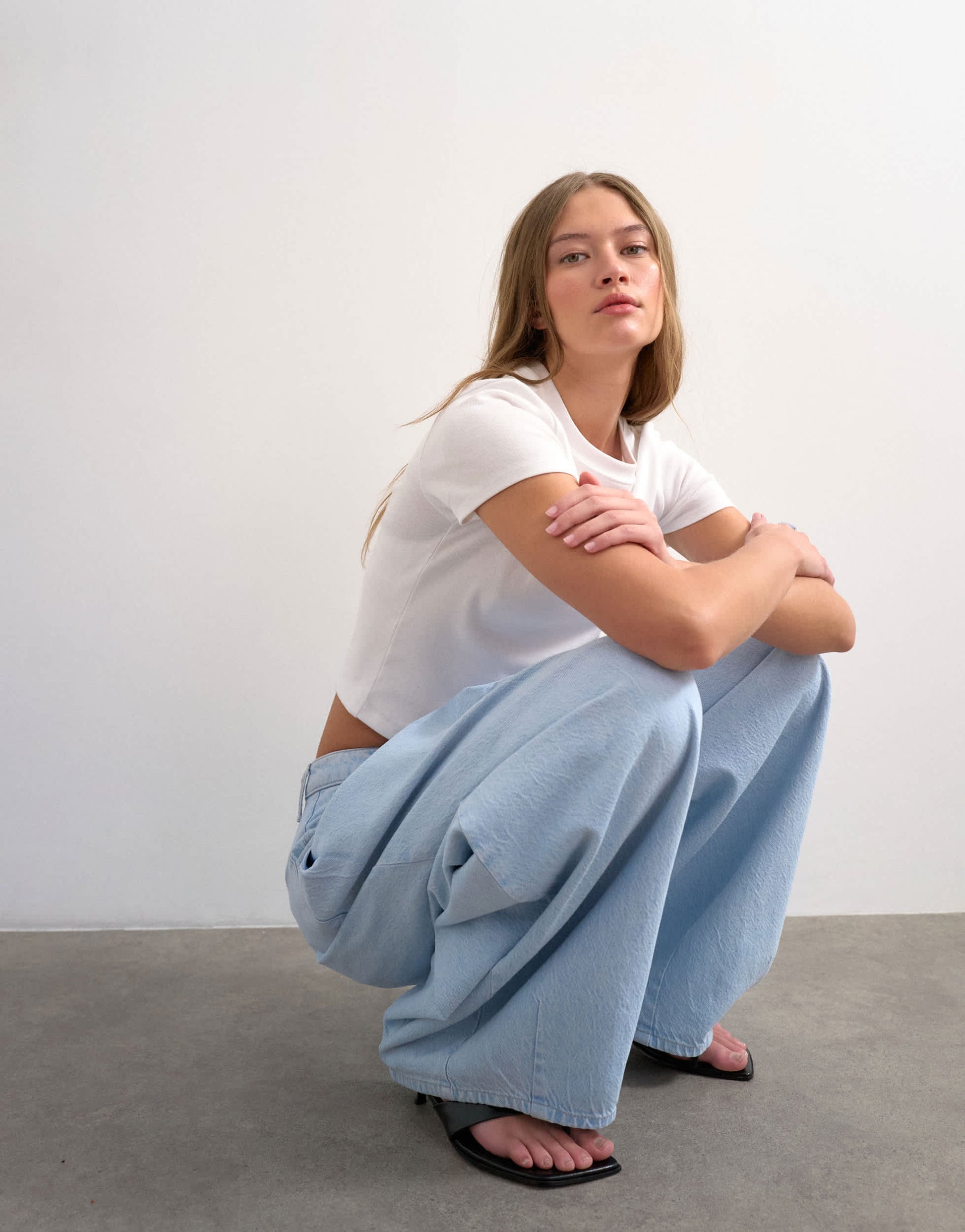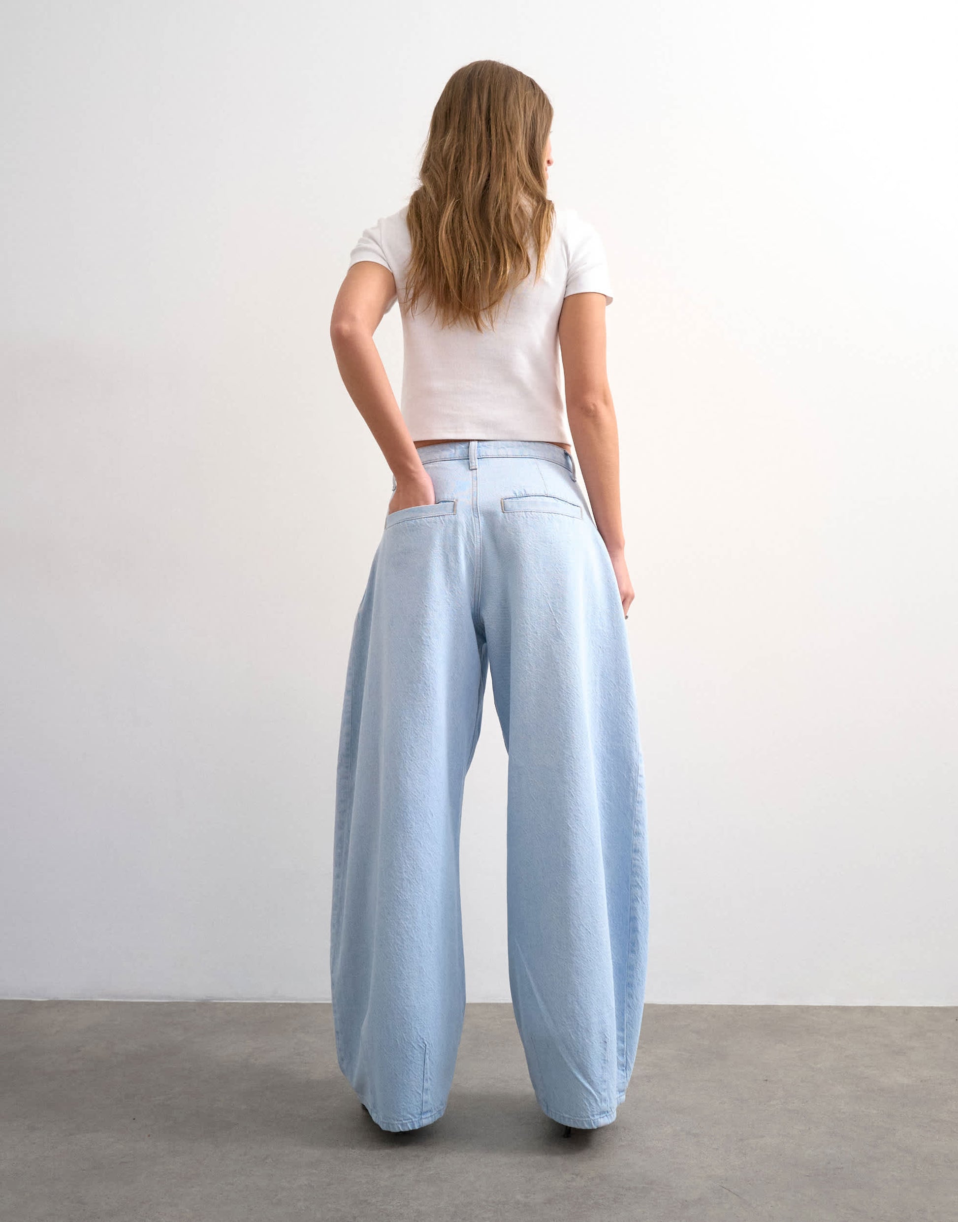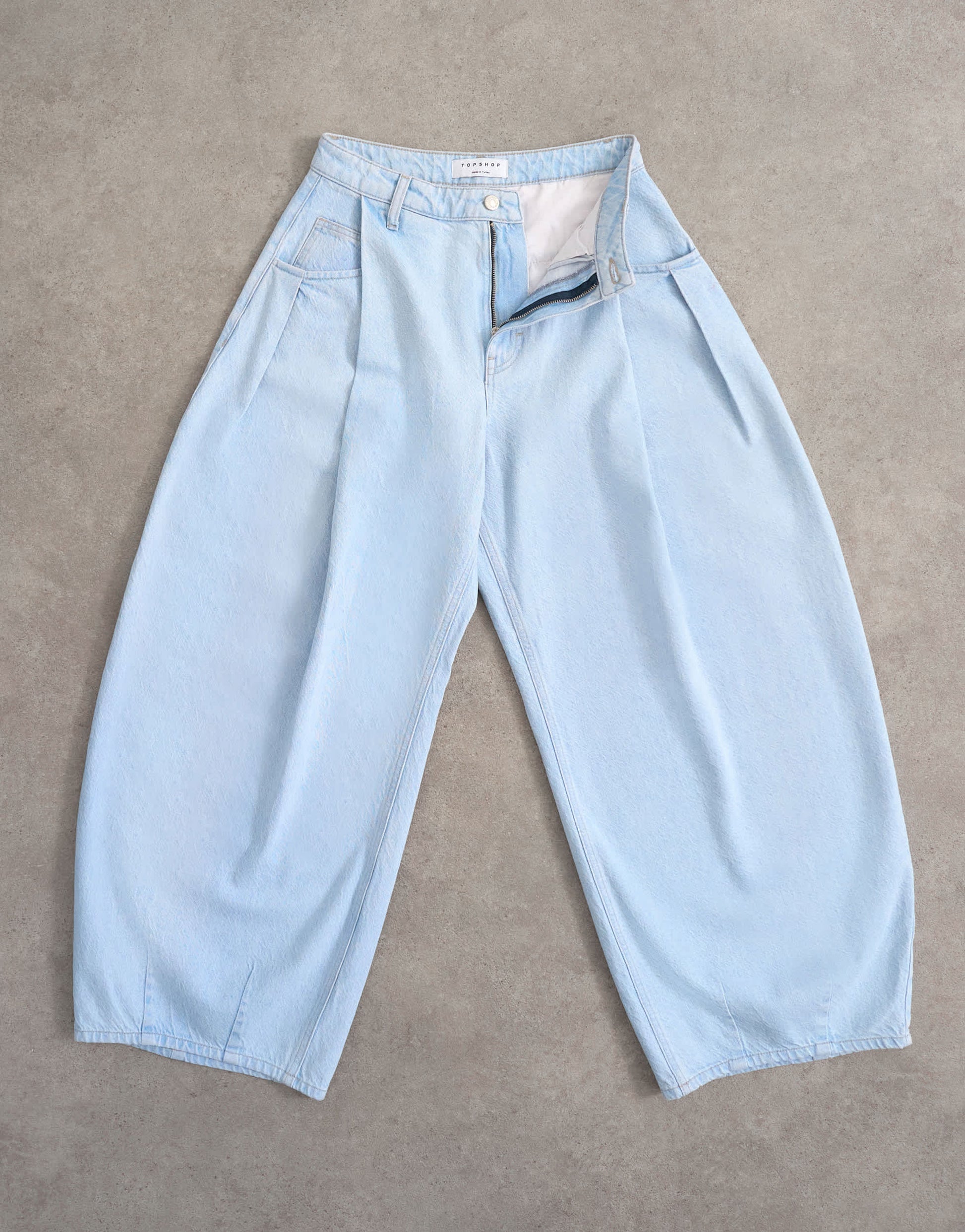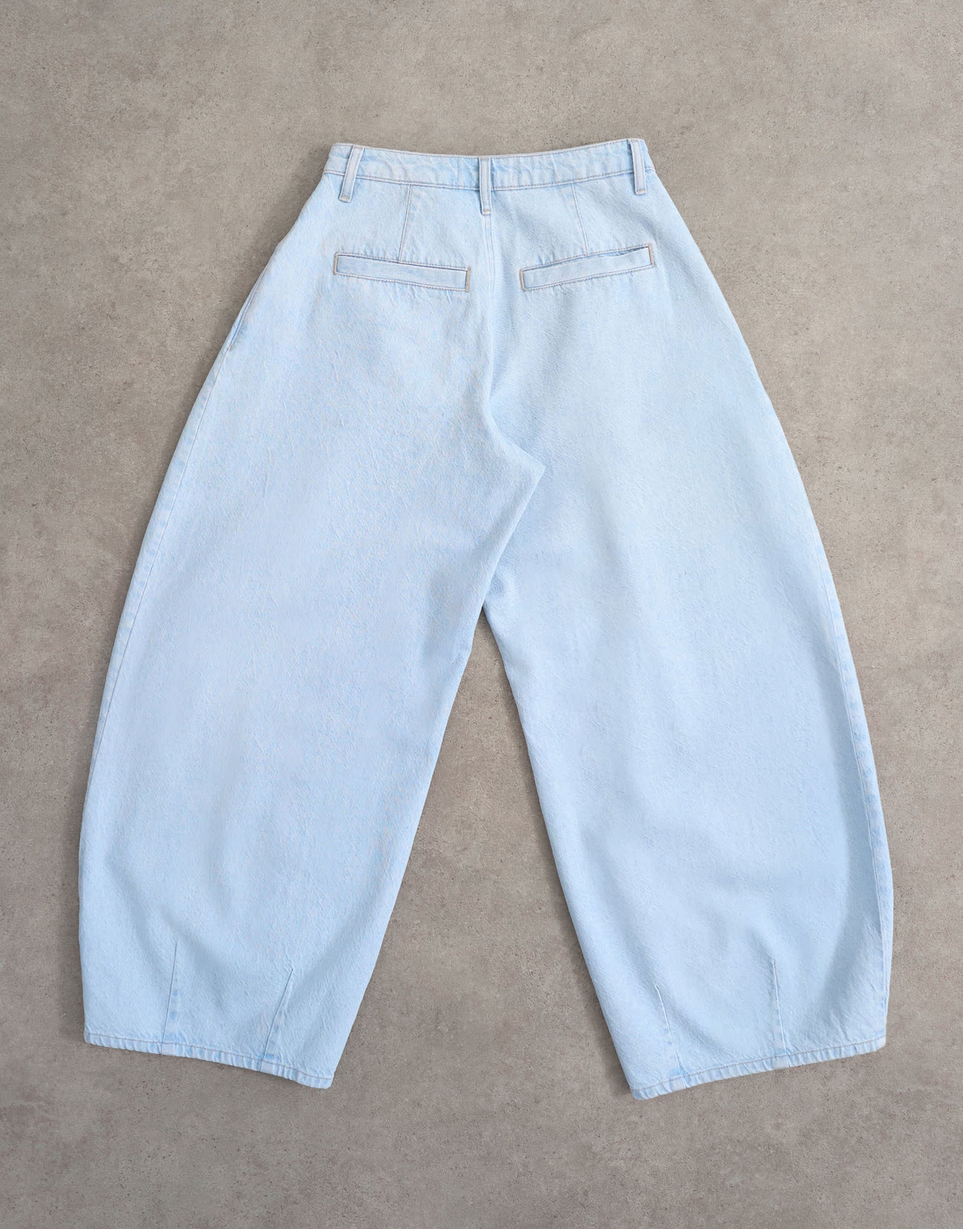 The Cocoon Barrel jeans are cut with a mid-rise waist and an exaggerated barrel leg complete with pleat detailing. Featuring belt loops, a zip fly and four functional pockets, this style is crafted from rigid denim in a bleach-blue wash.