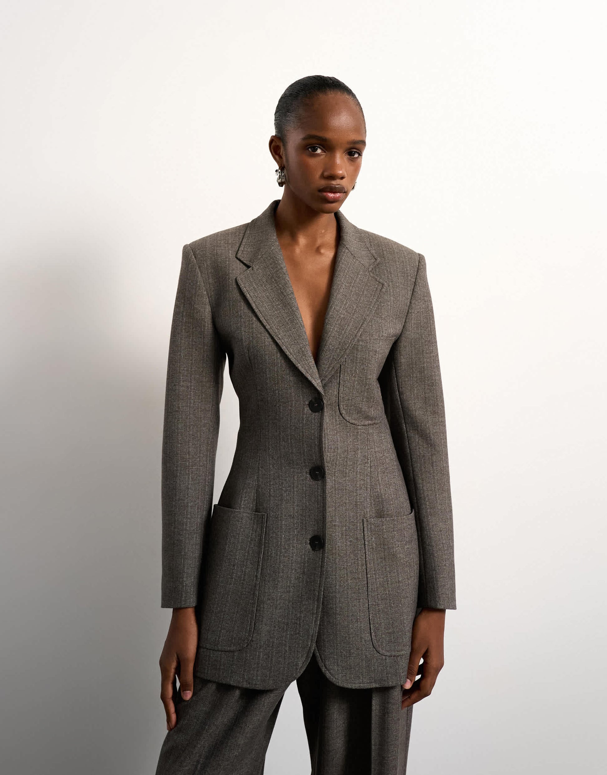 This blazer is crafted from textured woven fabric. It features notch lapels, three buttons and functional patch pockets. Complete with buttoned cuffs, this piece is cut to a longline cut on a slim fit.
