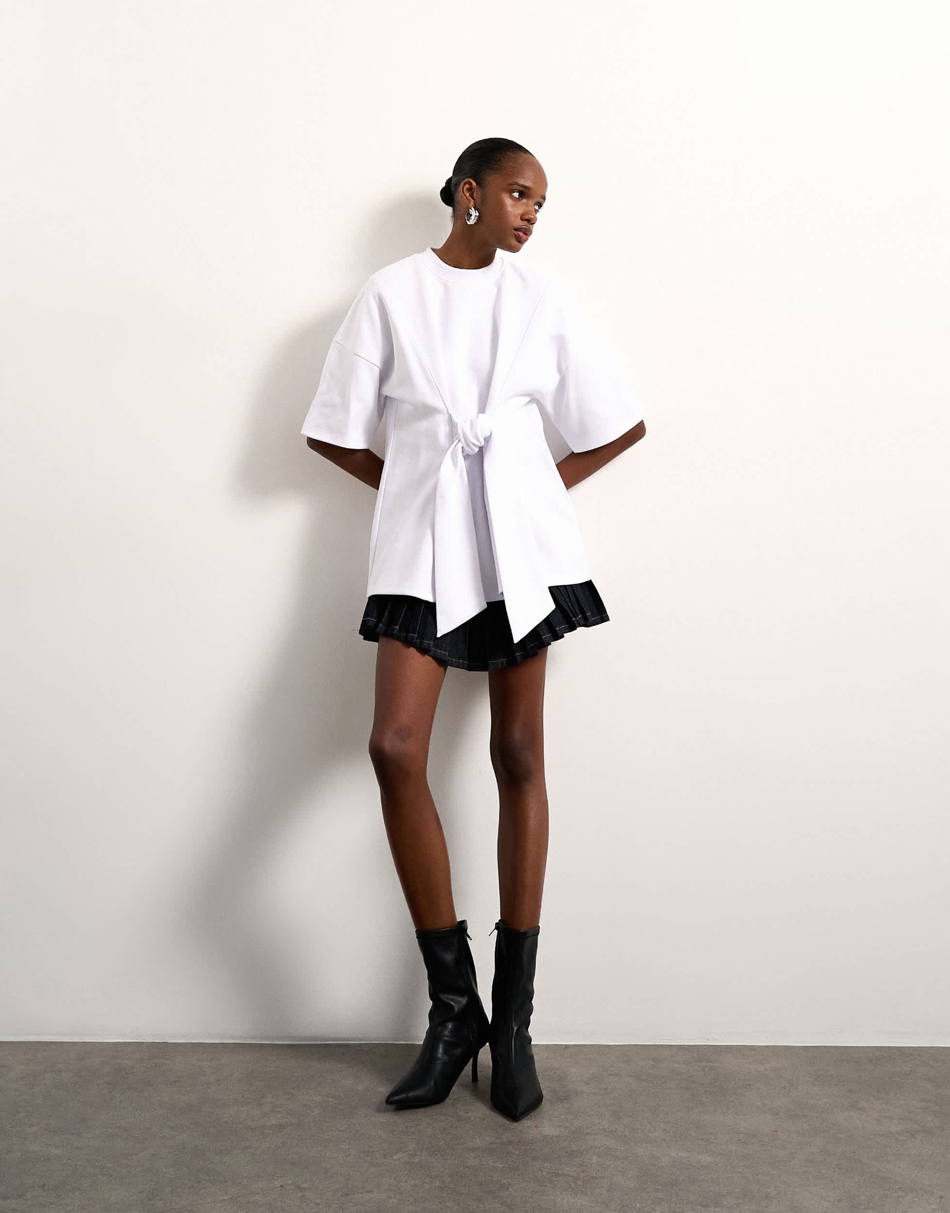 This top is crafted from a heavyweight, jersey fabric. It features a crew neck, short sleeves, knot detailing and is cut with a regular fit.