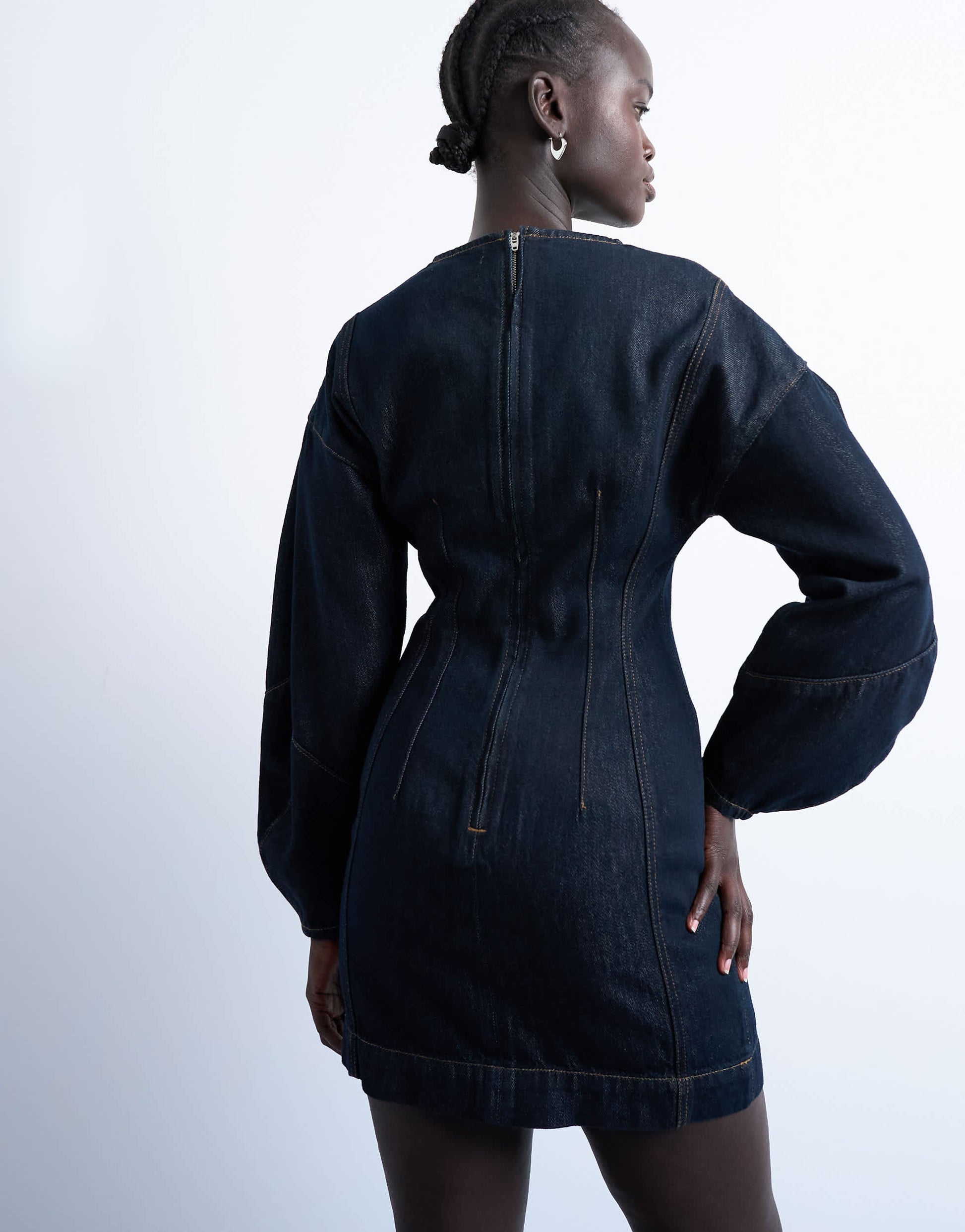Dresses by TopshopThis dress is crafted from non-stretch denim in an indigo wash. It features ovoid sleeves, a cinched waist and a zip-back fastening.