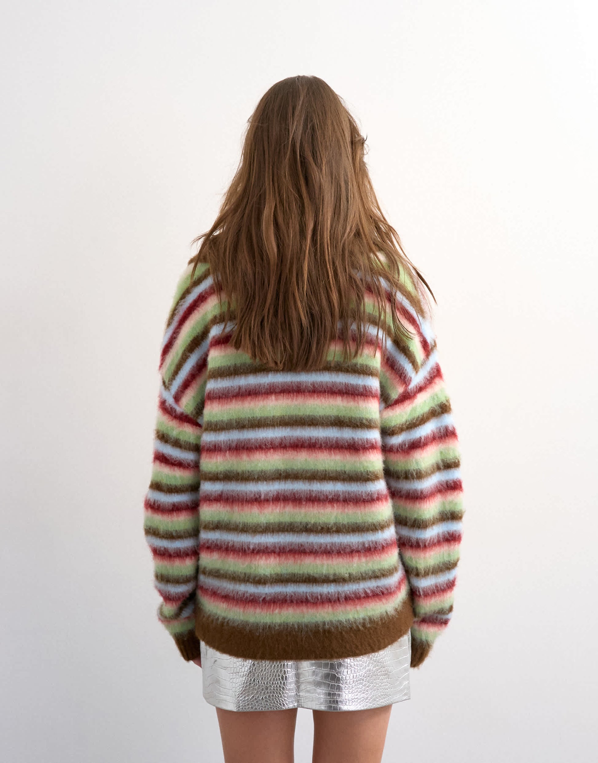 Jumpers & Cardigans by TopshopThis polo jumper is crafted from a fluffy knit in a striped pattern. It features a polo collar, V-neck and drop shoulders on a relaxed fit.