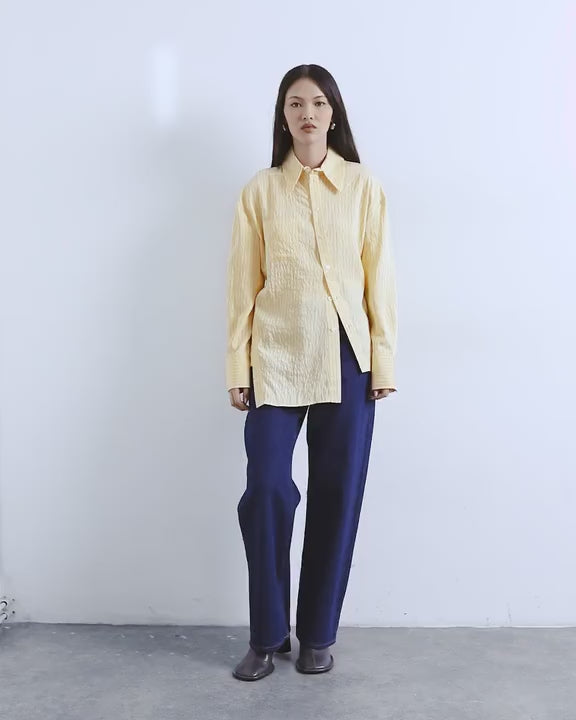 A fun twist on a smart staple, this shirt features a unique asymmetric design. It has a sharp point collar, a single chest pocket, long sleeves and a cinched waist to its reverse. This style is cut from fabric that's soft and lightweight.