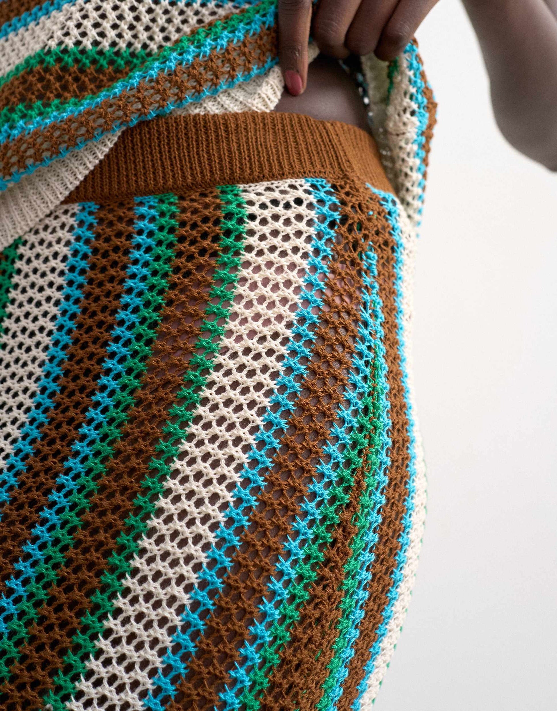 Skirts by TopshopThis skirt is crafted from a chunky knit with a loose-weave construction. Featuring a striped design, this style is complete with a high-rise elasticated waist and a maxi cut on a regular fit.