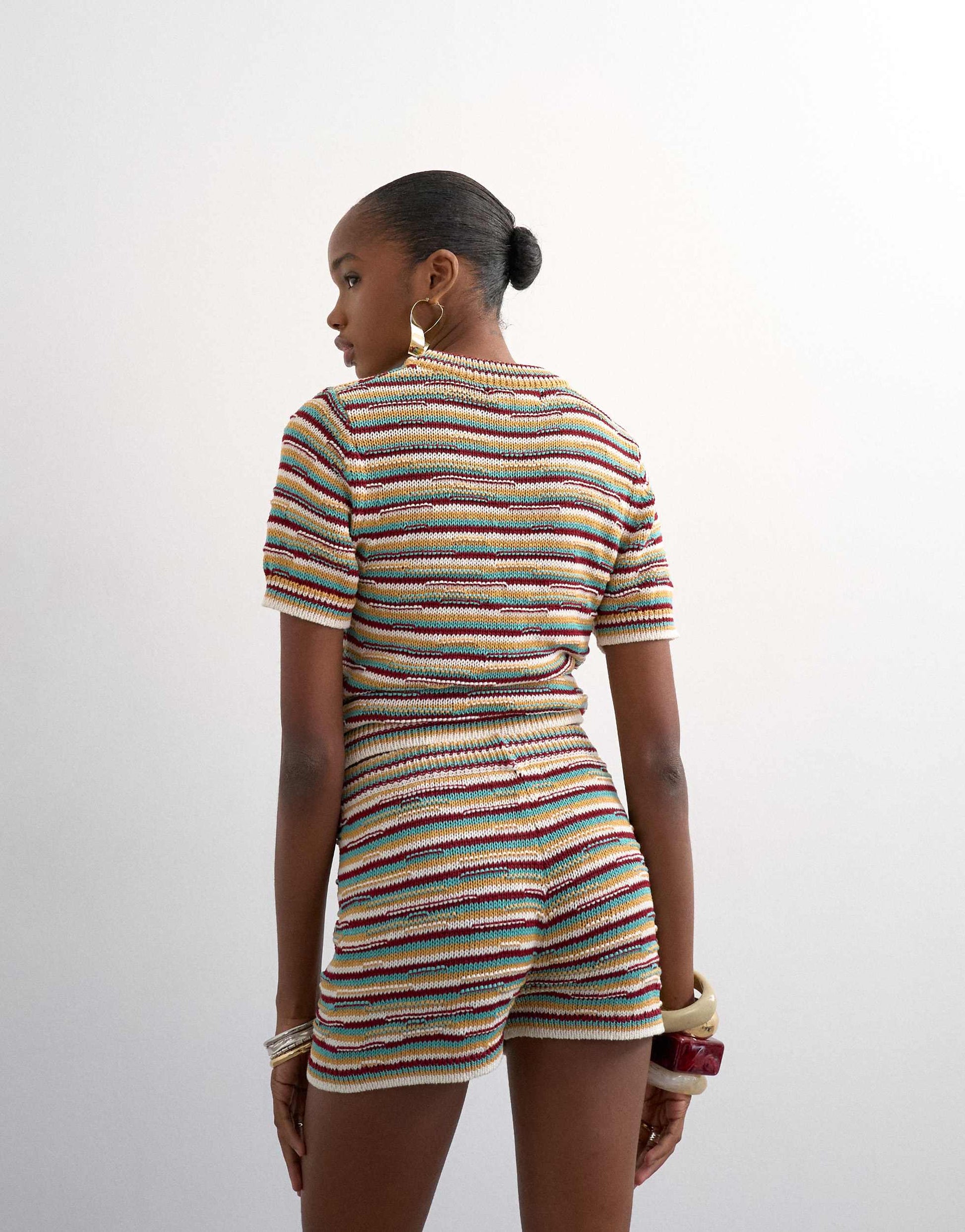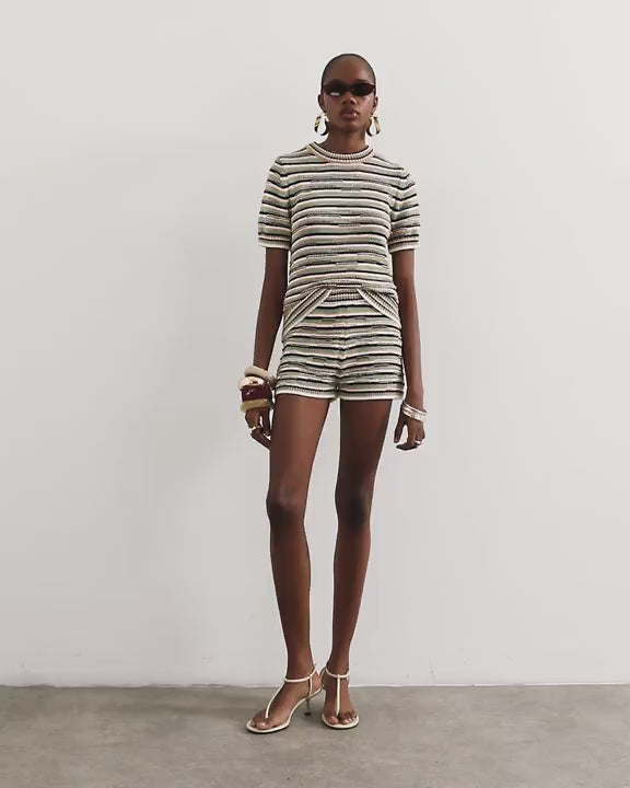Shorts by TopshopThese shorts are crafted from a mid-weight knit in a vibrant striped print. It features a mid-rise waist and is cut to a slim fit.