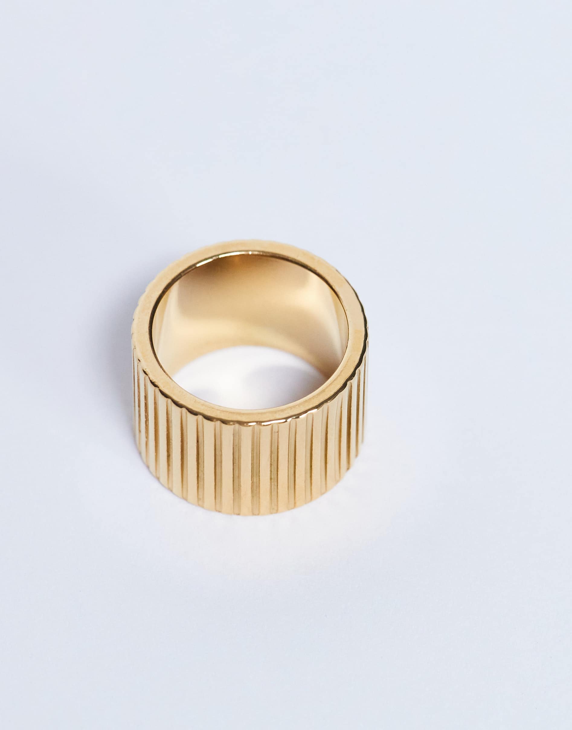 Accessoires von TopshopDer Rhodes-Ring ist aus korrosionsbeständigem Metall in Goldoptik gefertigt. Er zeichnet sich durch ein strukturiertes Design und eine breite Ringschiene aus.