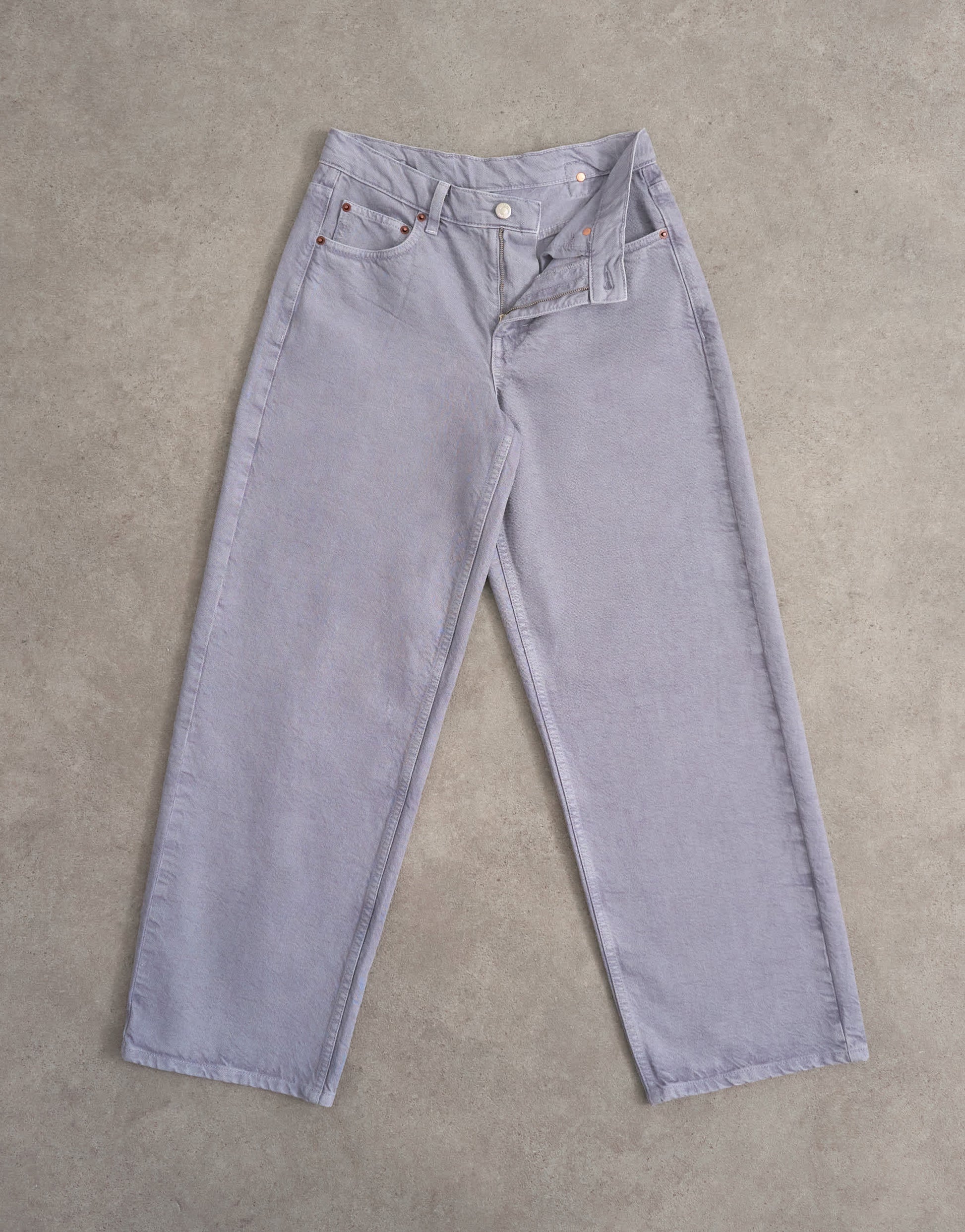 Jeans von TopshopDie Cinch Jeans haben einen niedrigen Bund und ein lockeres, gerades Bein, das am Knöchel hochgeschlossen ist. Sie sind aus nicht dehnbarem Denim in einer lila Waschung gefertigt und verfügen über einen Reißverschluss, Gürtelschlaufen, fünf Taschen und einen verstellbaren Kordelzug hinten.