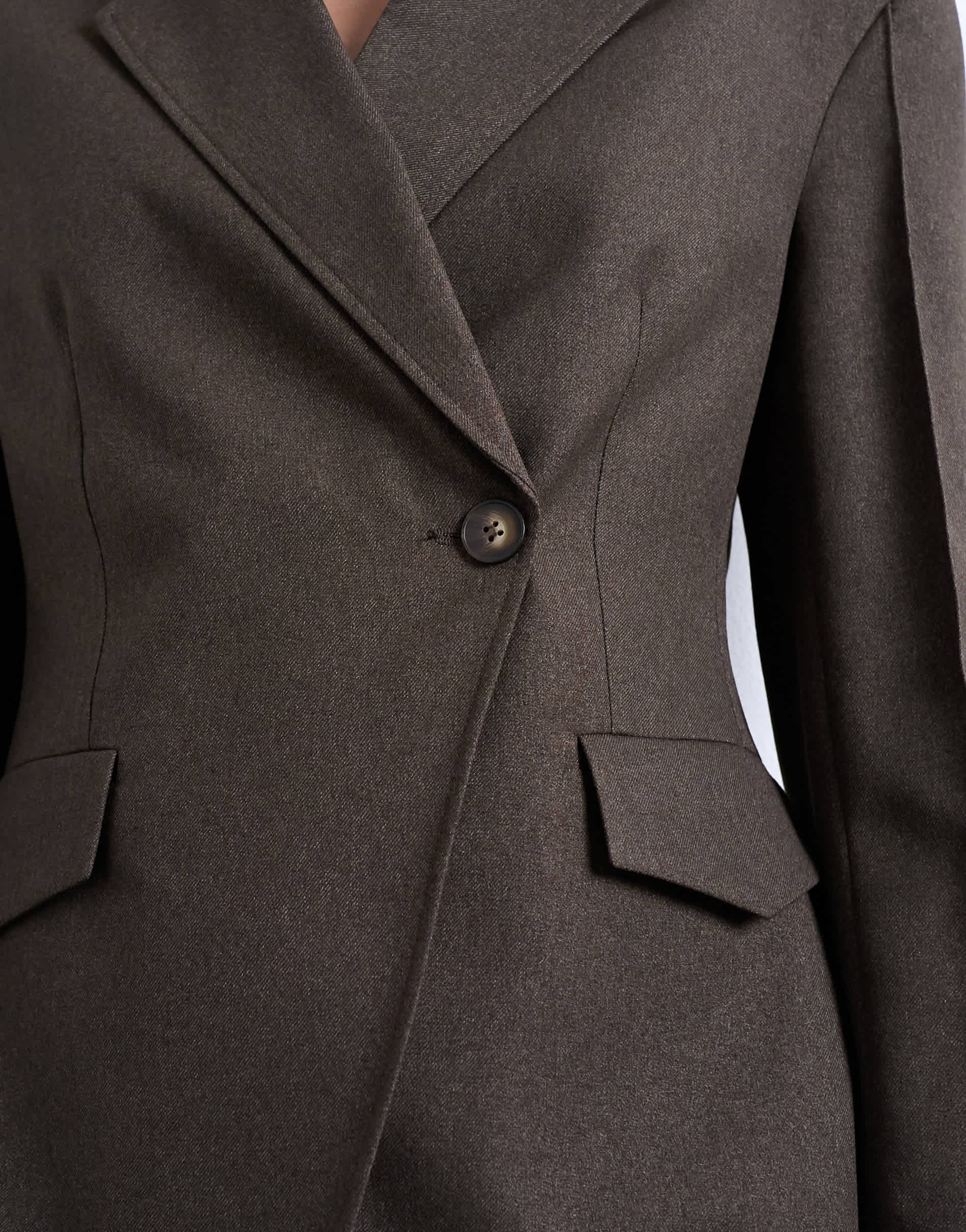 Blazer und Anzugjacken von TopshopDieser Blazer ist aus einem Webstoff gefertigt. Er zeichnet sich durch ein asymmetrisches Design, ein fallendes Revers, einen Ein-Knopf-Verschluss und Taschendetails aus.