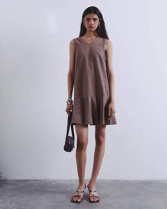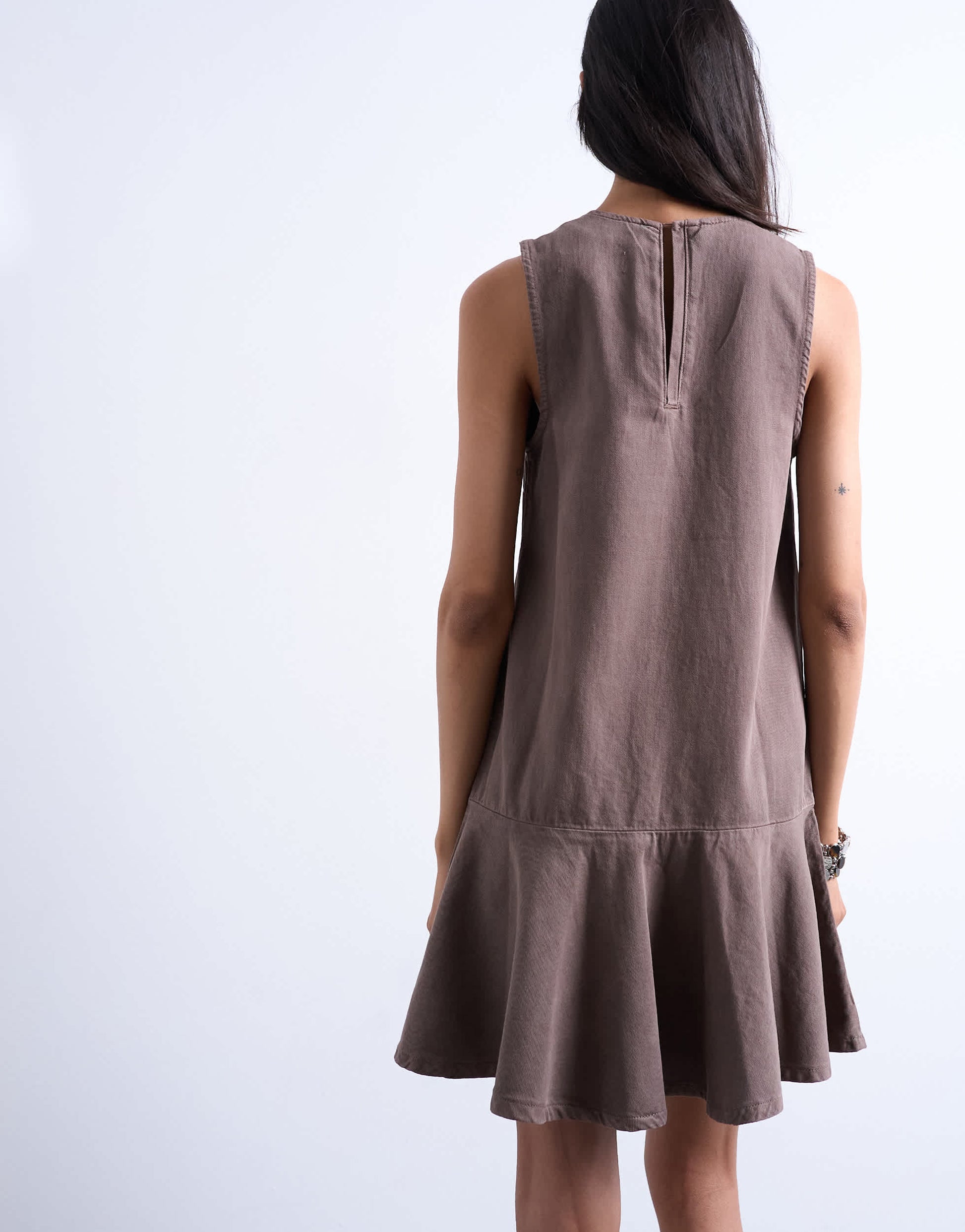 Kleider von TopshopDieses Kleid aus mittelschwerem, braun gewaschenem Denim besticht durch sein ärmelloses Design mit V-Ausschnitt, tiefer Taille und Knopfleiste im Schlüsselloch-Stil. Der reguläre Schnitt macht es ideal für die Freizeit.