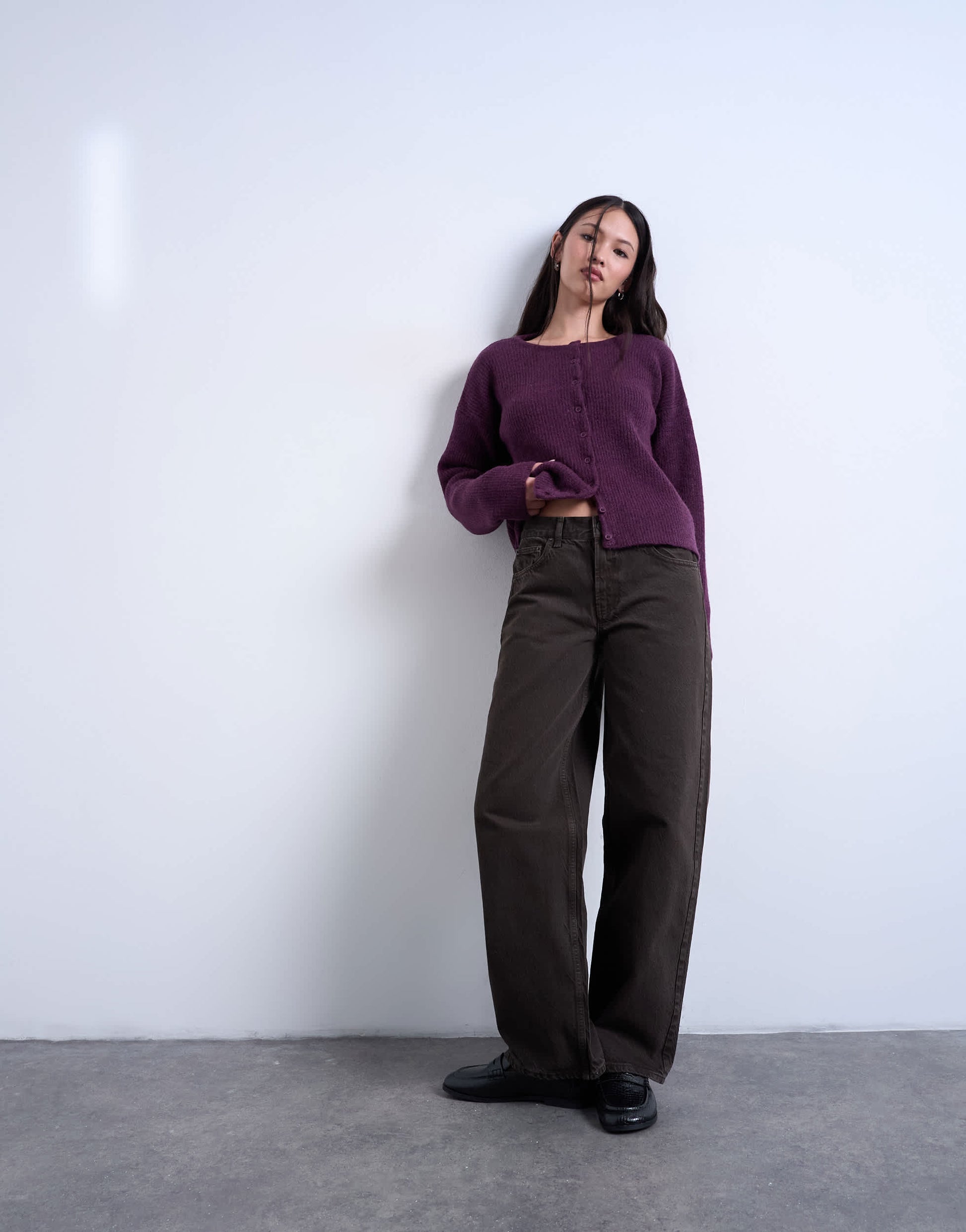 Pullover und Strickjacken von TopshopDiese Strickjacke ist aus mittelschwerem Rippstrick gefertigt. Sie hat einen Rundhalsausschnitt, eine durchgehende Knopfleiste, lange Ärmel und ist locker geschnitten.