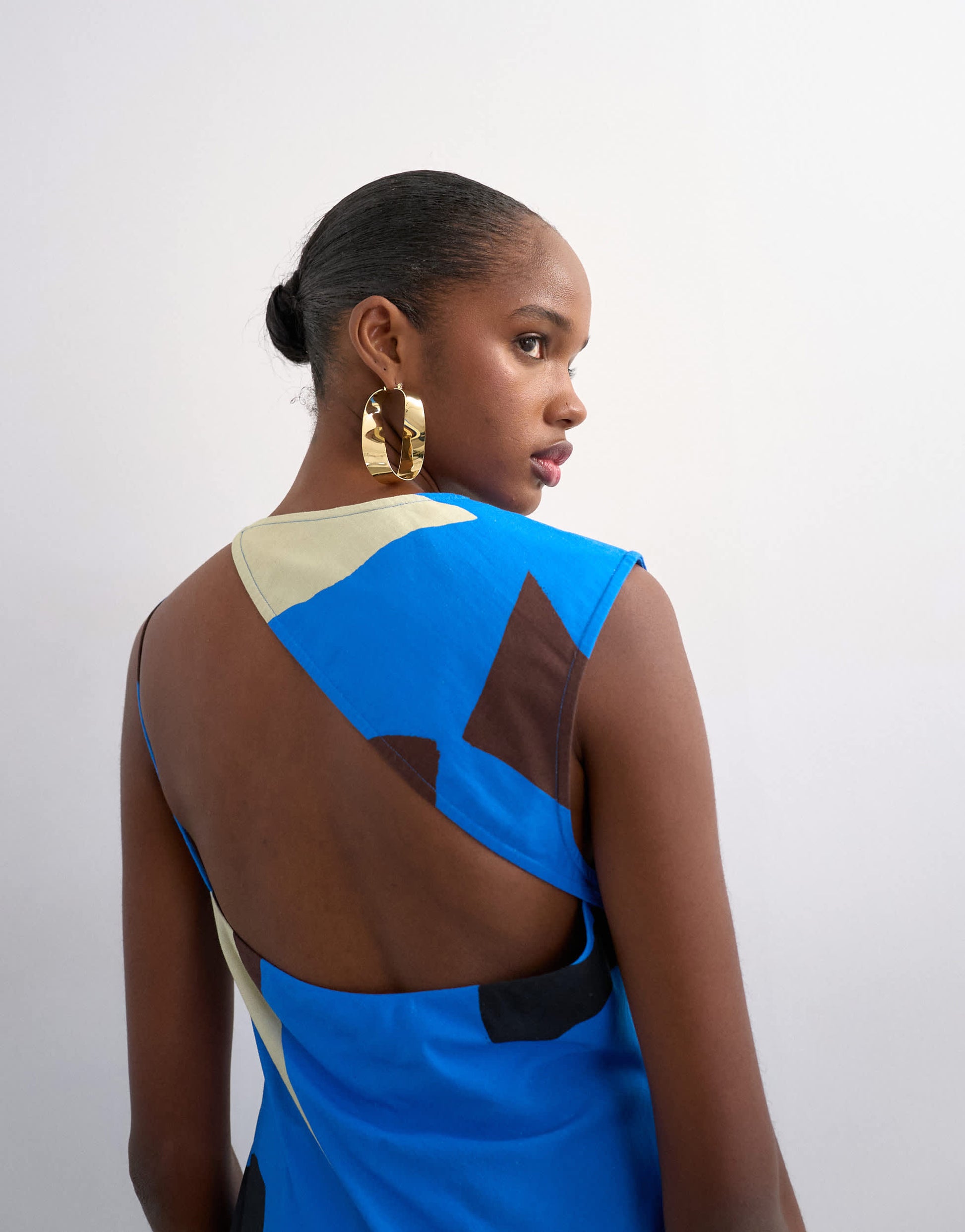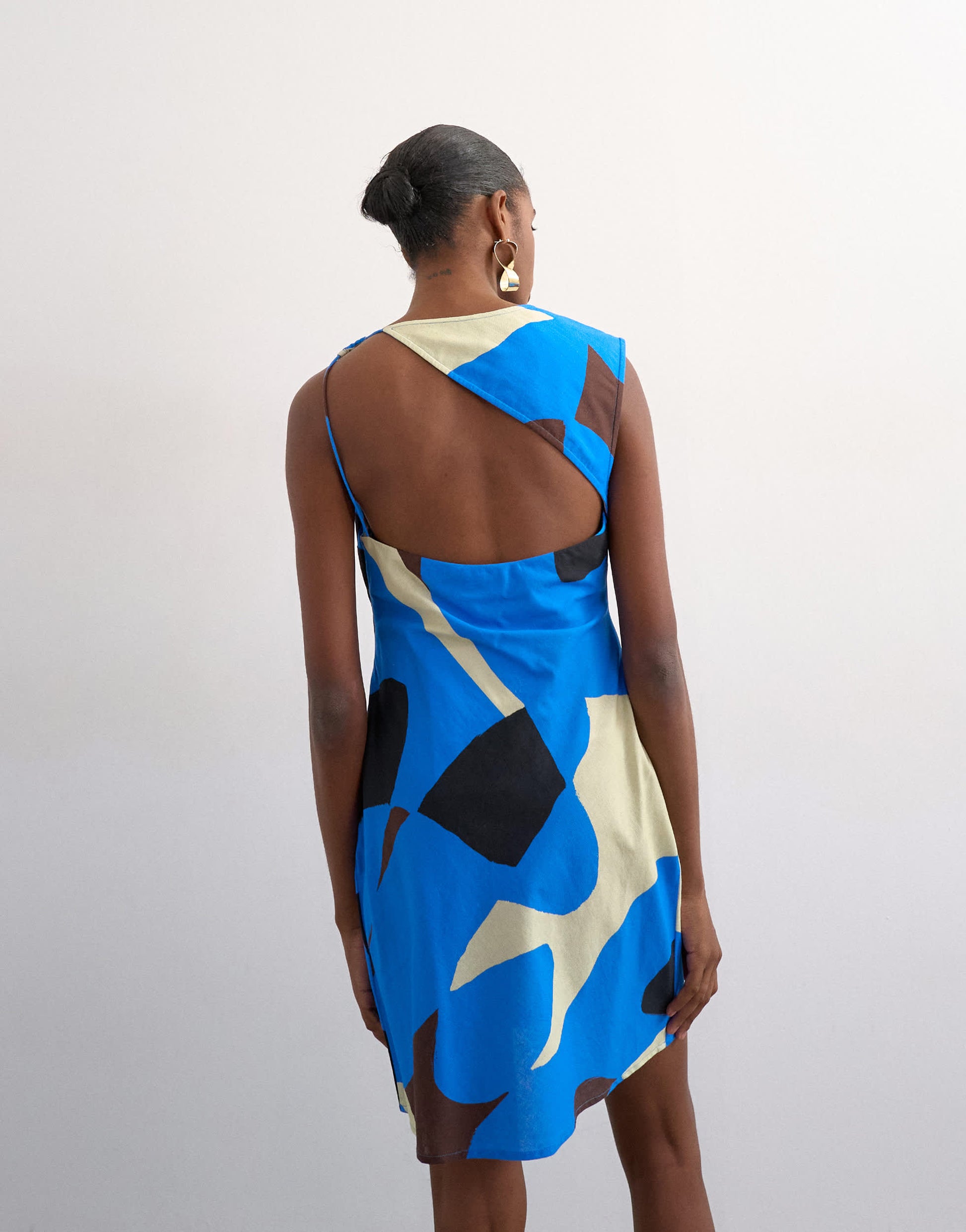 Kleider von TopshopDieses Kleid ist aus einem leichten Stoff mit abstraktem Muster gefertigt. Es hat einen Rundhalsausschnitt, einen offenen Rücken und ist normal geschnitten.
