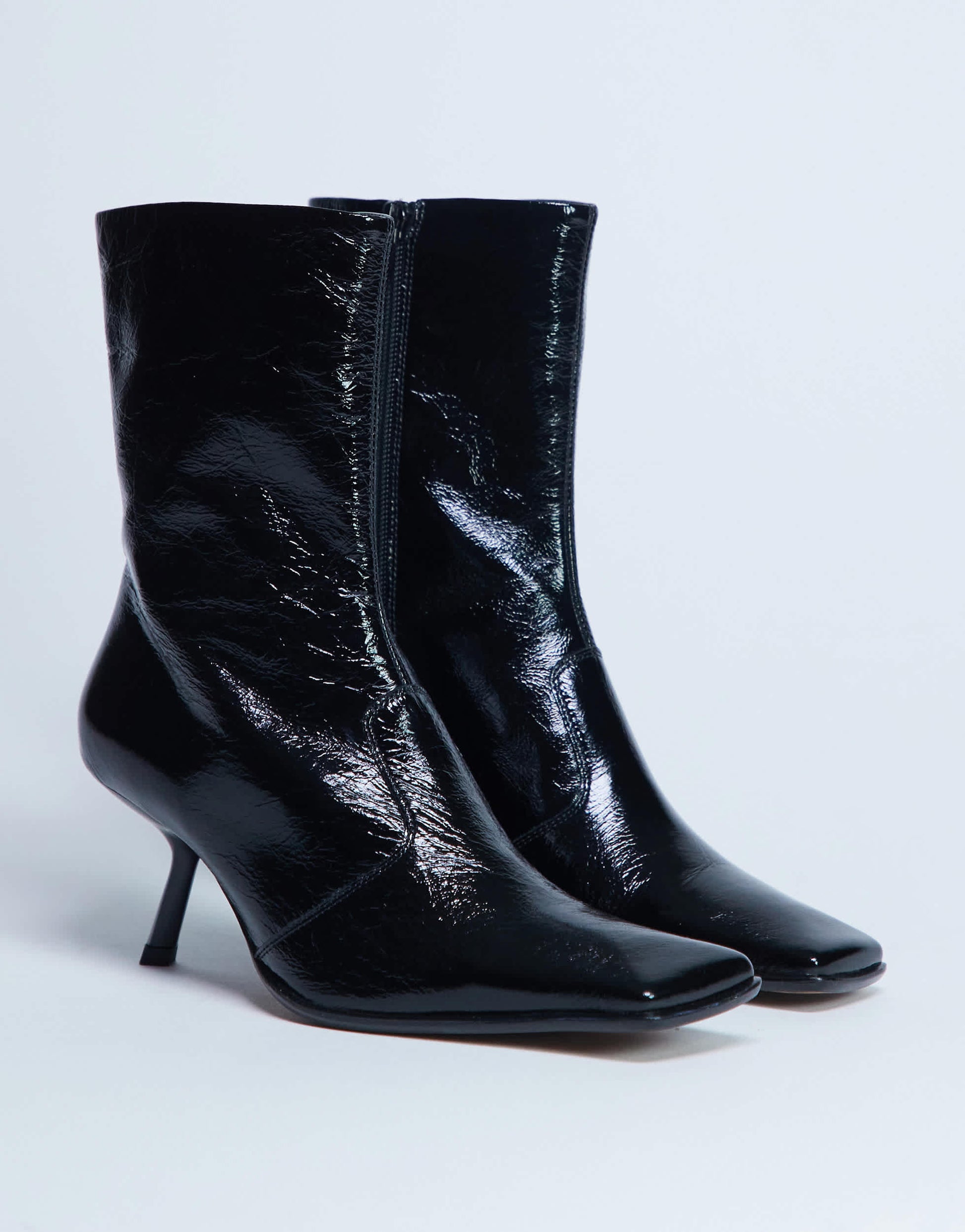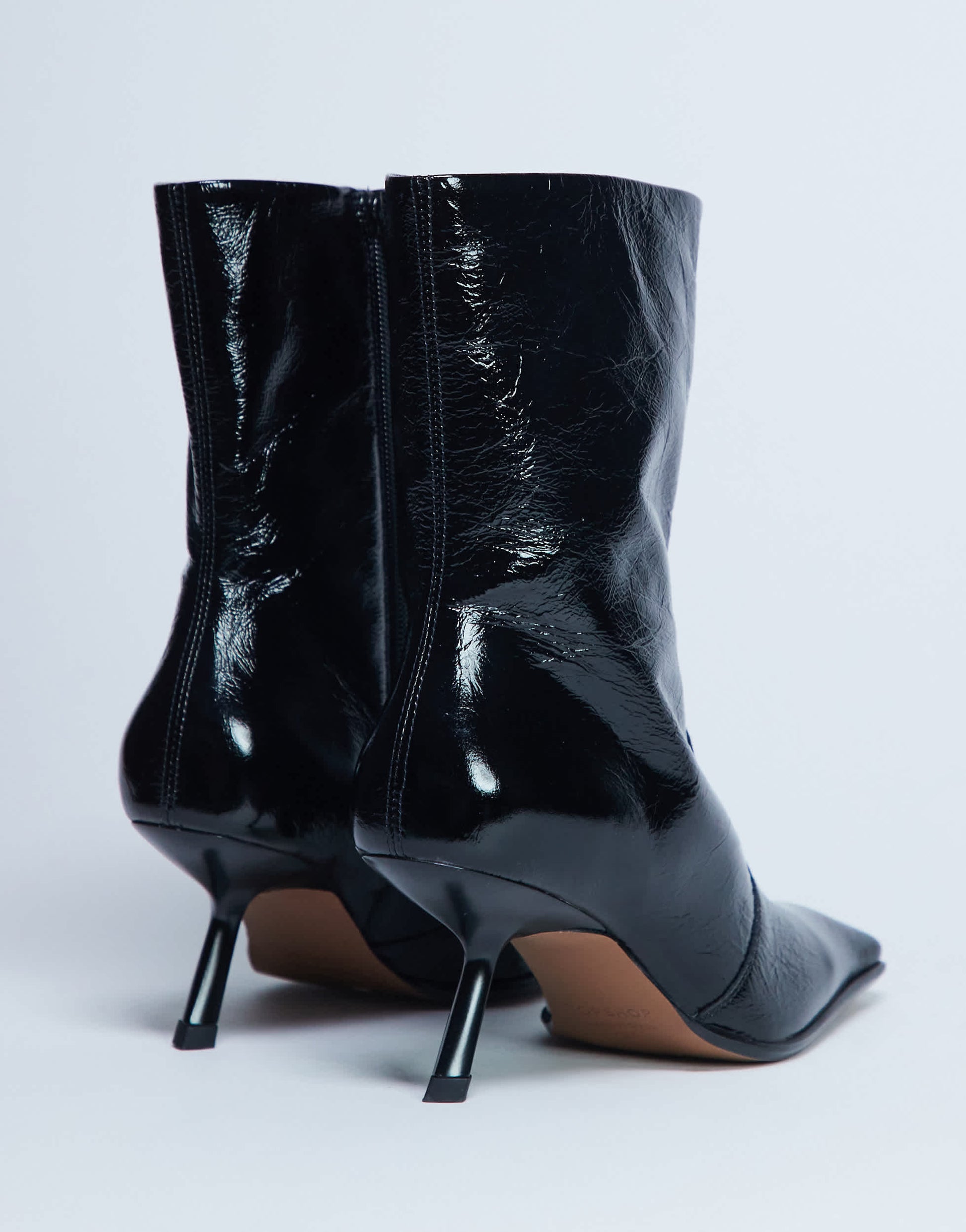 Schuhe von TopshopDie Sienna-Stiefel bestechen durch ein Obermaterial aus geknacktem Lackleder und einen Reißverschluss am inneren Schaftrand. Sie haben eine eckige Zehenpartie und einen schrägen, mittelhohen Absatz.