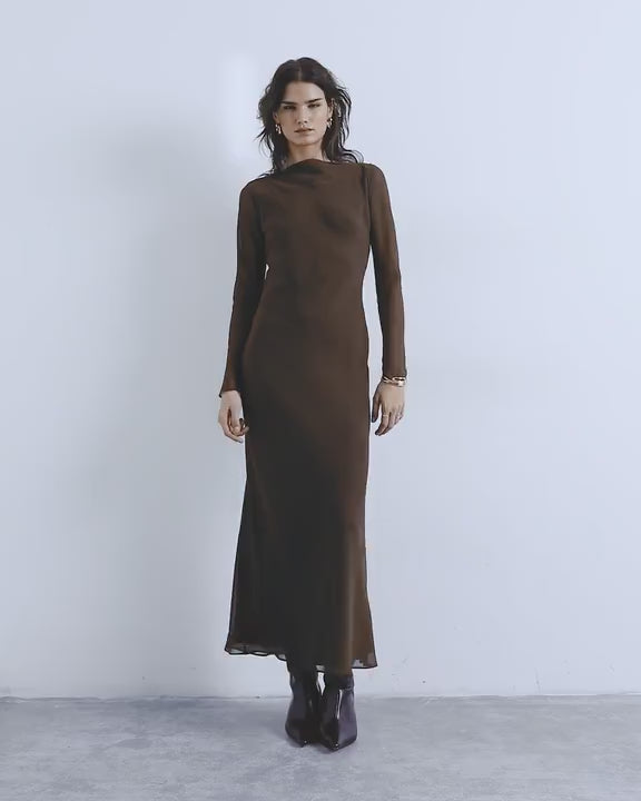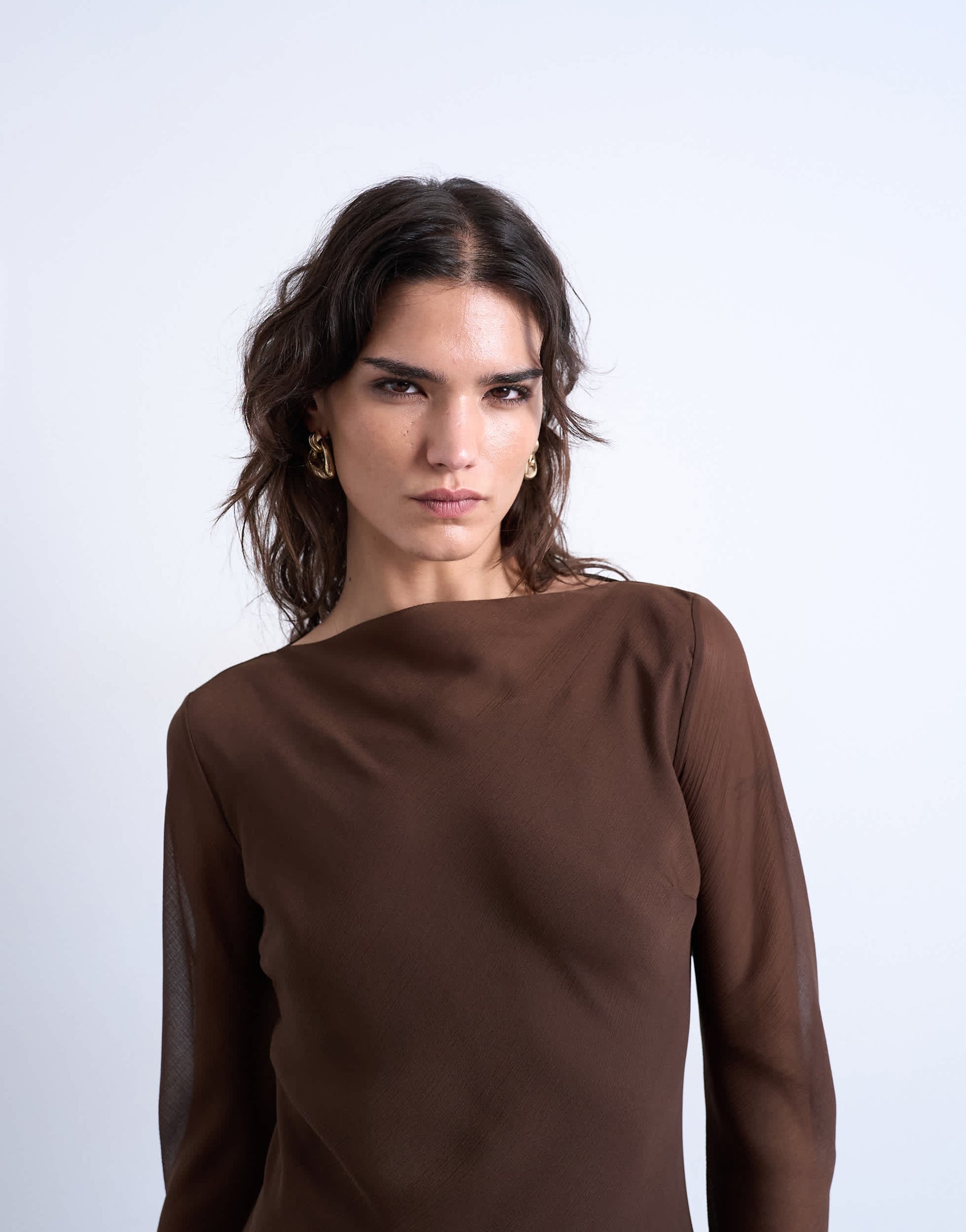 Kleider von TopshopDieses Kleid aus leichtem, fließendem Chiffon besticht durch einen U-Boot-Ausschnitt, lange Ärmel und eine schmeichelhafte, schmale Passform.