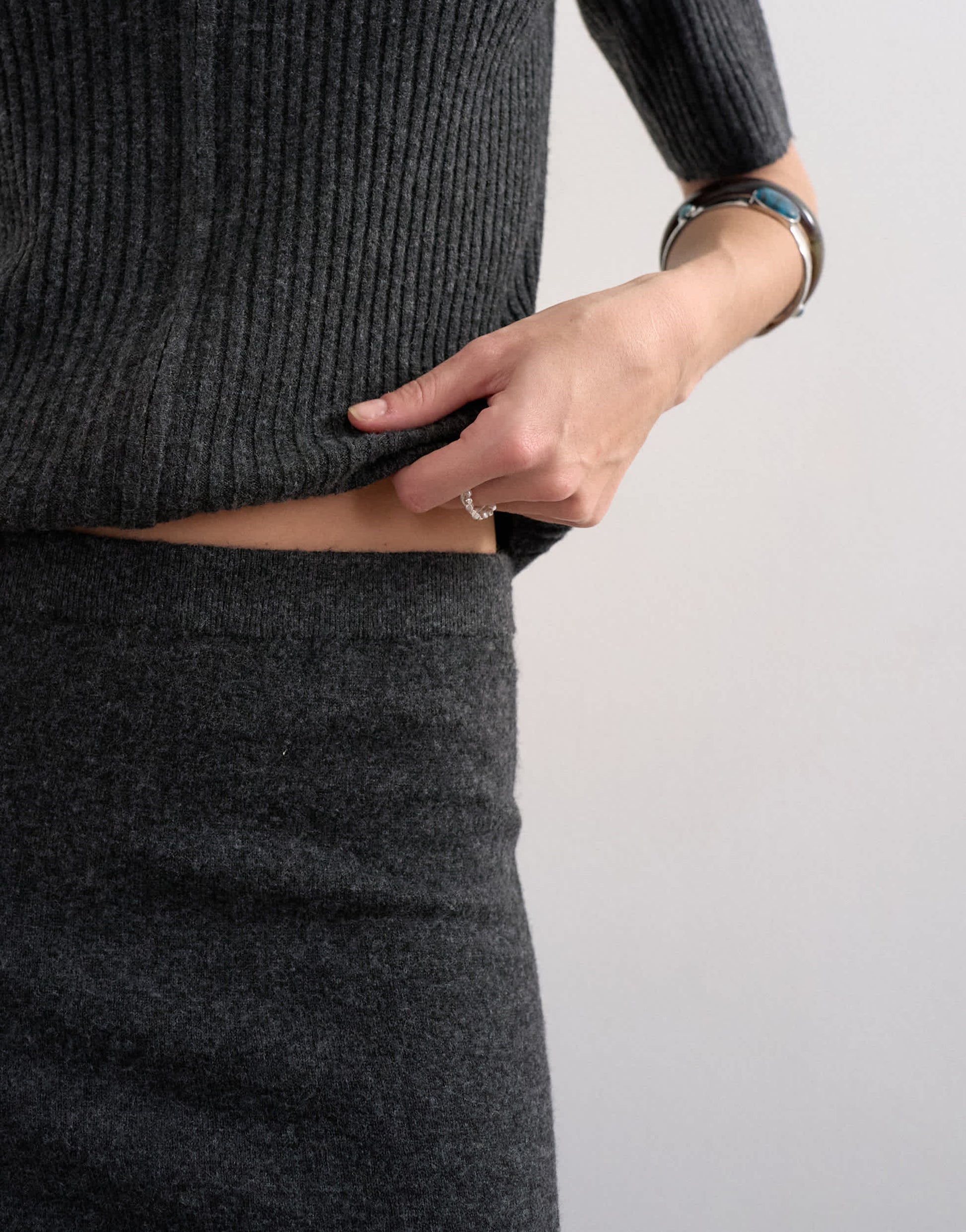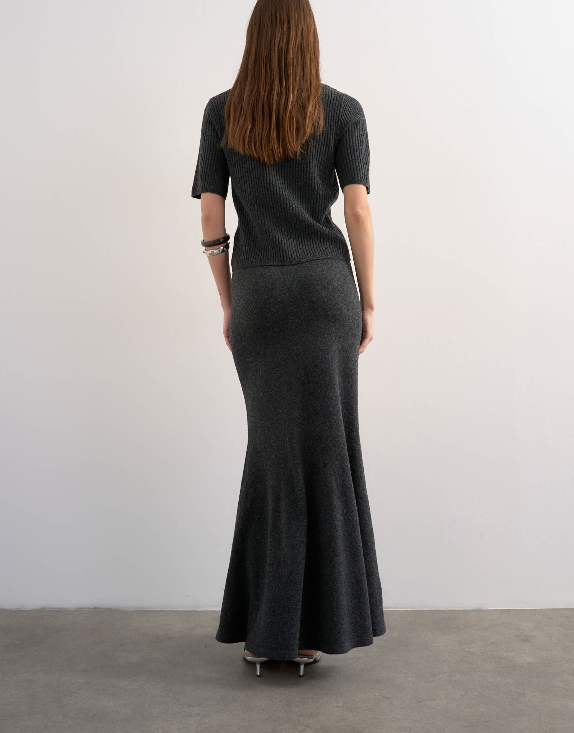 Röcke von TopshopDieser Rock ist aus weichem Strick in Anthrazitgrau gefertigt. Er hat einen mittelhohen Bund und gerippte Abschlüsse an der Maxilänge.