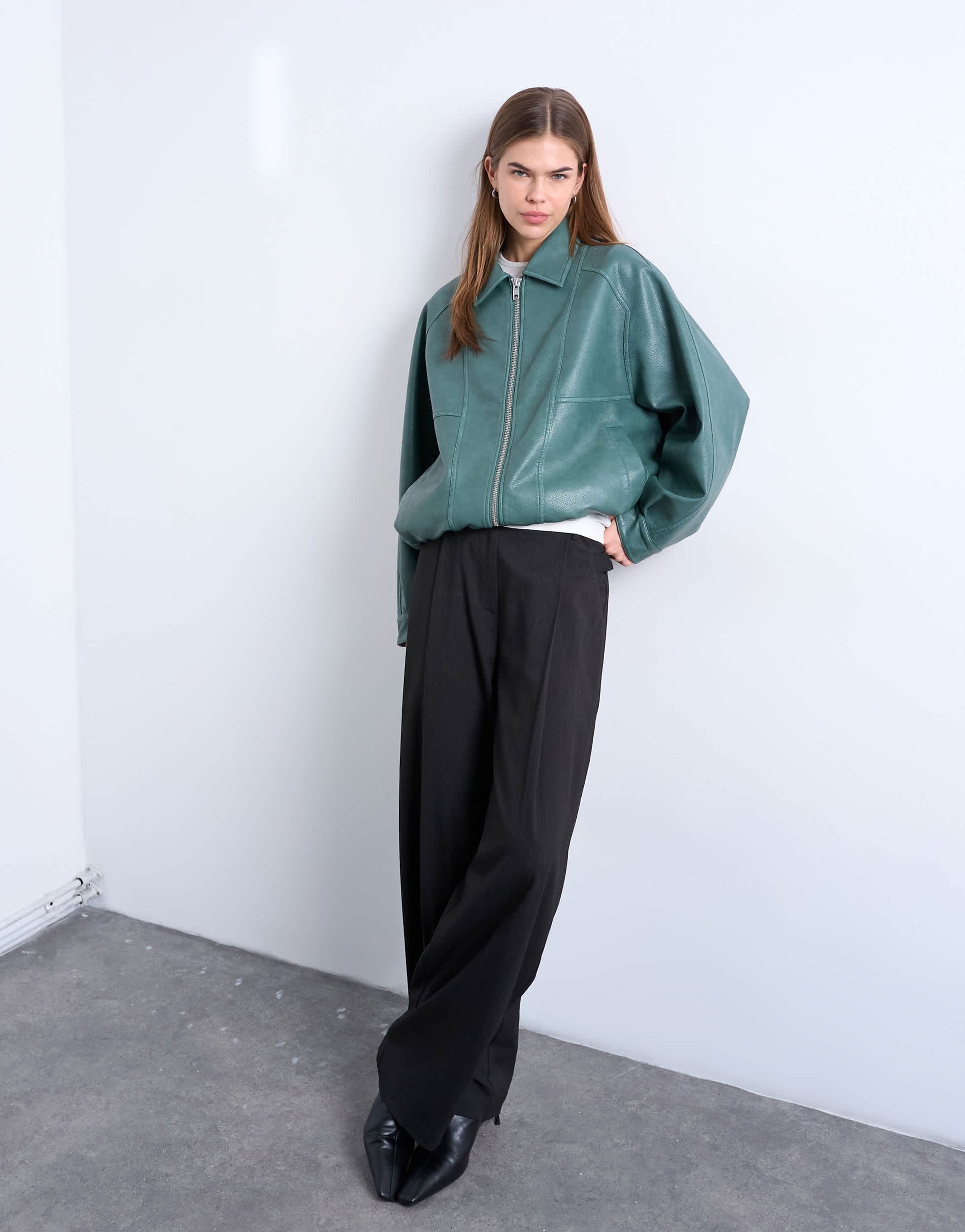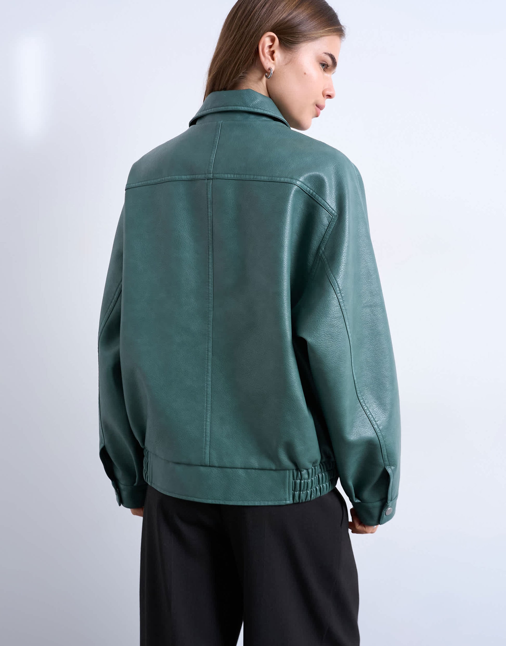 Mäntel und Jacken von TopshopDiese Jacke in mattem Türkis hat einen spitz zulaufenden Kragen, einen mittigen Reißverschluss, zwei Taschen und einen elastischen Saum. Sie ist leicht oversized geschnitten.