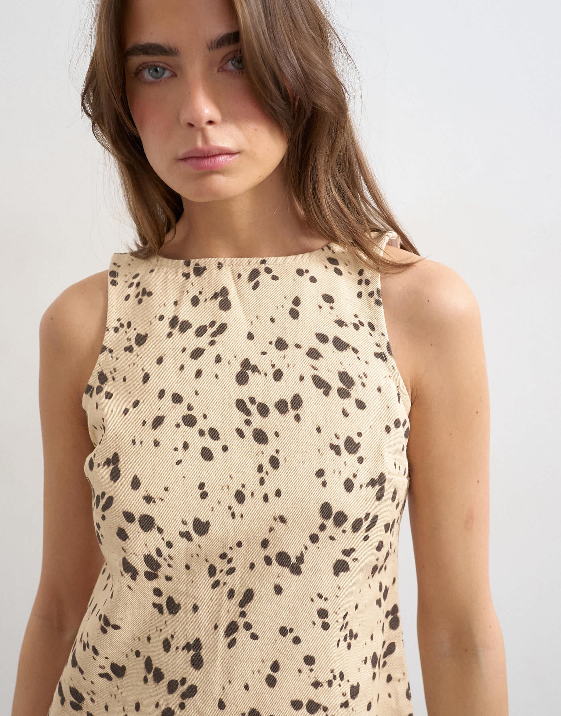 Kleider von TopshopDieses Kleid ist aus nicht dehnbarem Denim gefertigt und hat einen durchgehenden Animal-Print. Das ärmellose Modell verfügt über einen Rundhalsausschnitt, einen Knopfverschluss und ist regulär geschnitten.