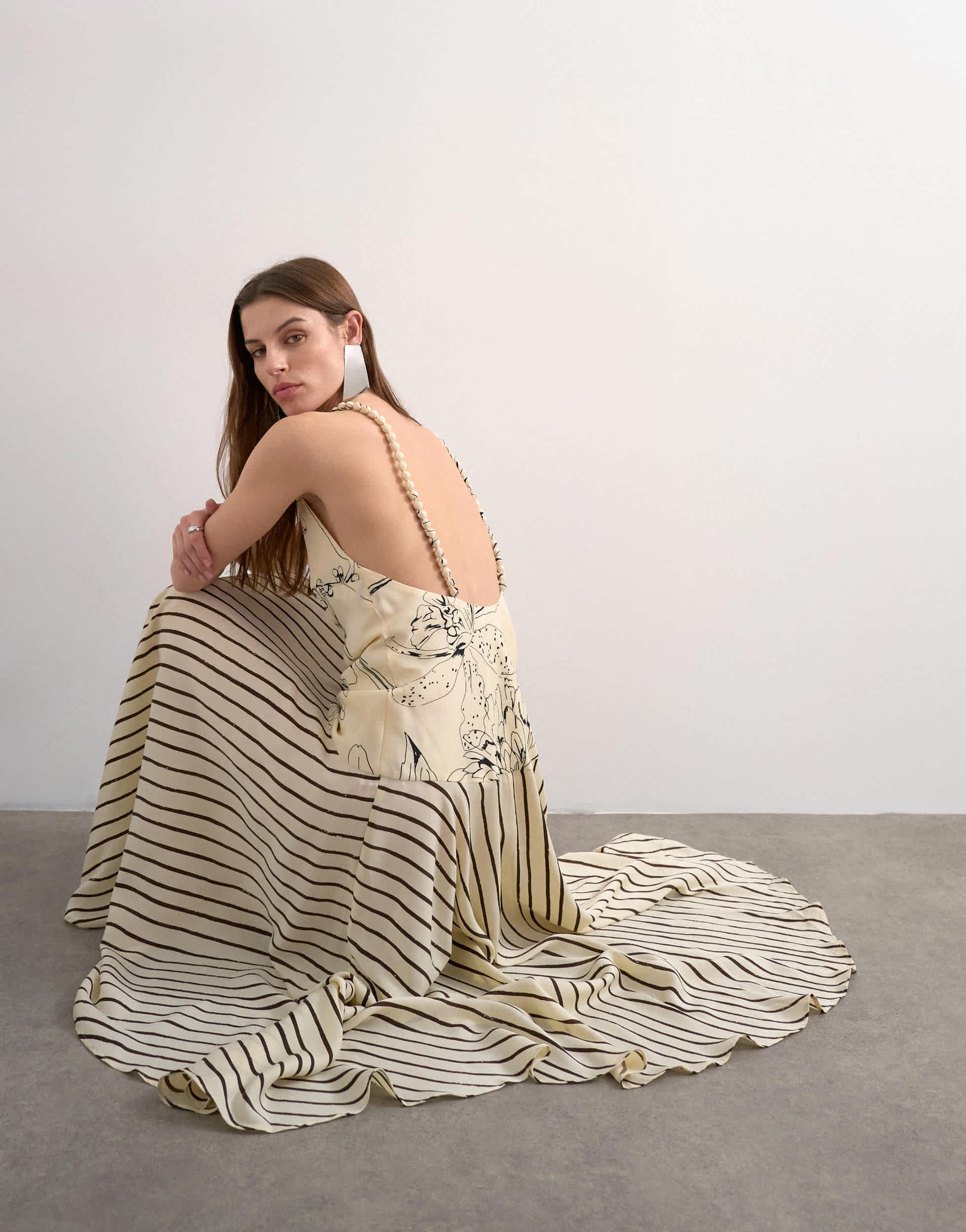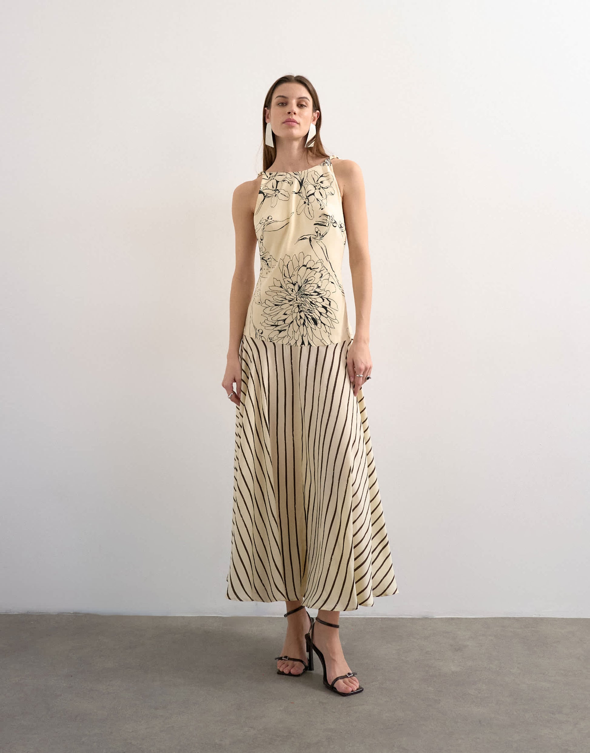 Kleider von TopshopDieses Kleid ist aus einem fließenden Stoff mit kontrastierendem Blumen- und Streifenmuster gefertigt. Es hat einen Rundhalsausschnitt, einen offenen Rücken und ist normal geschnitten.