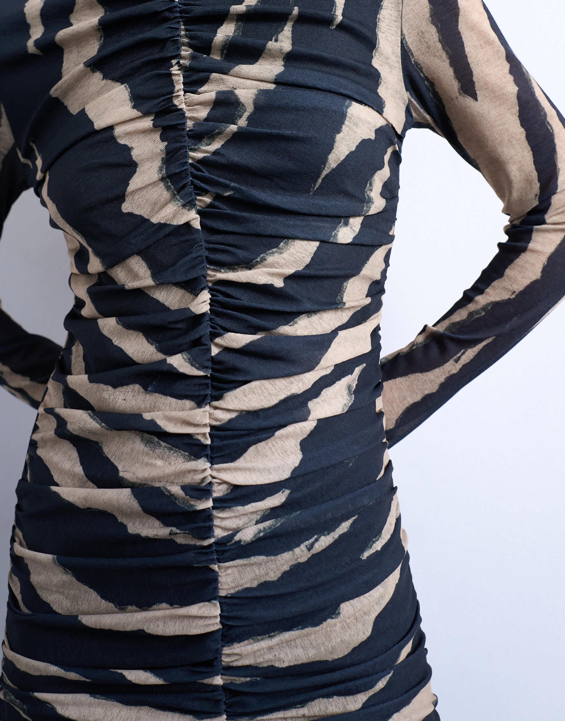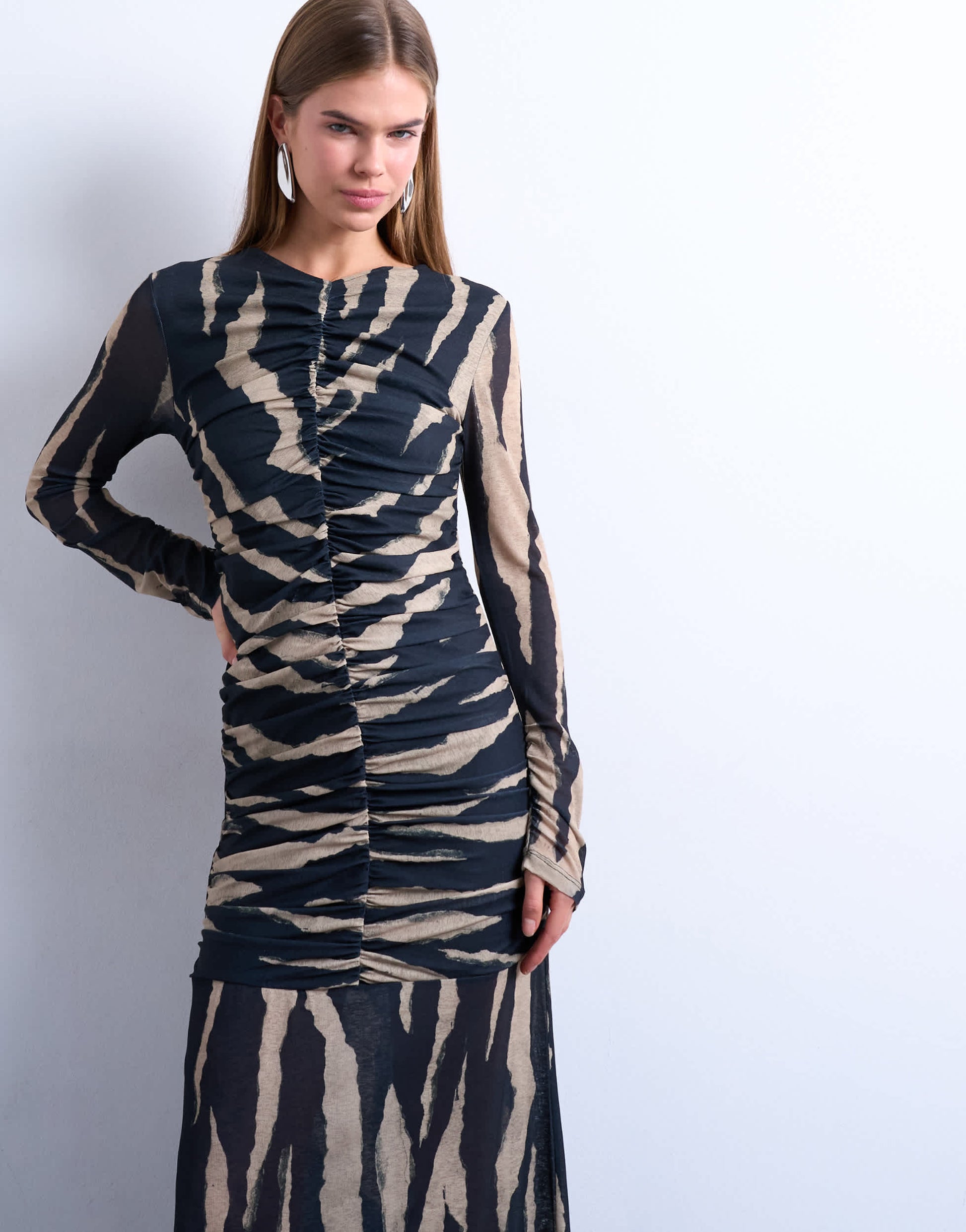 Kleider von TopshopDieses Kleid ist aus einem weichen Strickstoff in schlichtem Design gefertigt. Es hat einen hohen V-Ausschnitt, lange Ärmel, Raffungen und eine normale Passform.