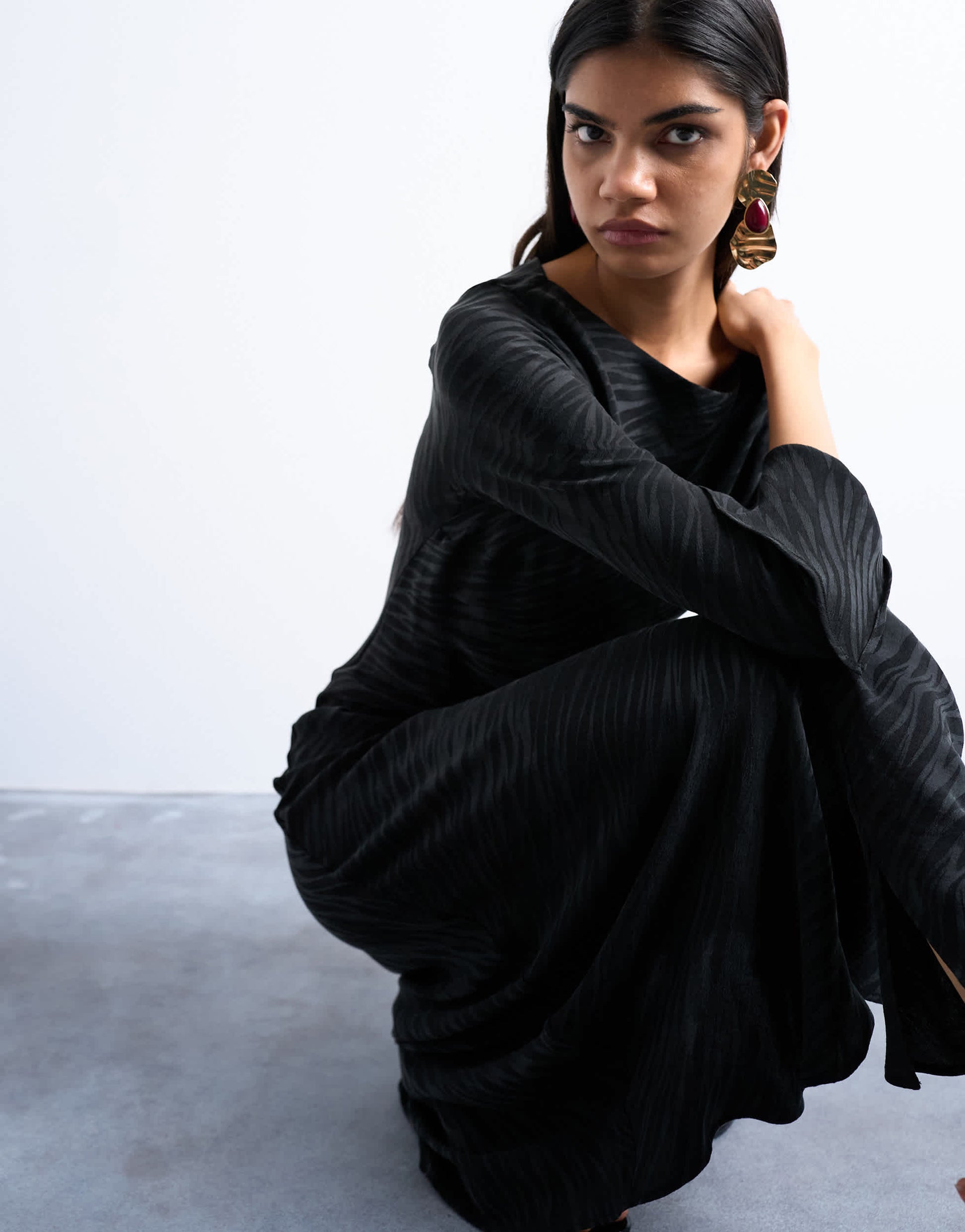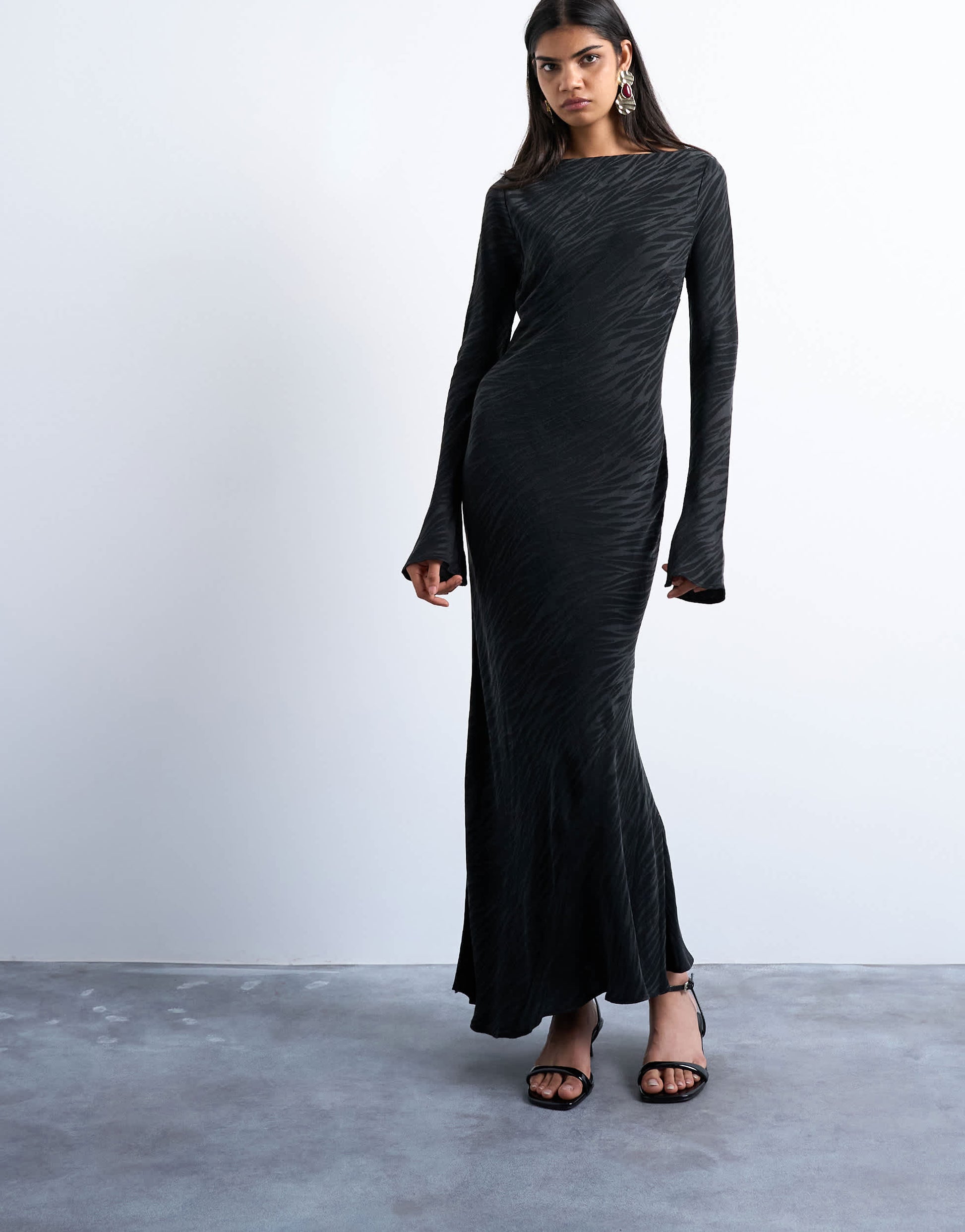 Kleider von TopshopDieses Kleid ist aus einem glänzenden, fließenden Stoff mit Tiermuster gefertigt. Es hat einen Rundhalsausschnitt, ausgestellte Ärmel und eine normale Passform.