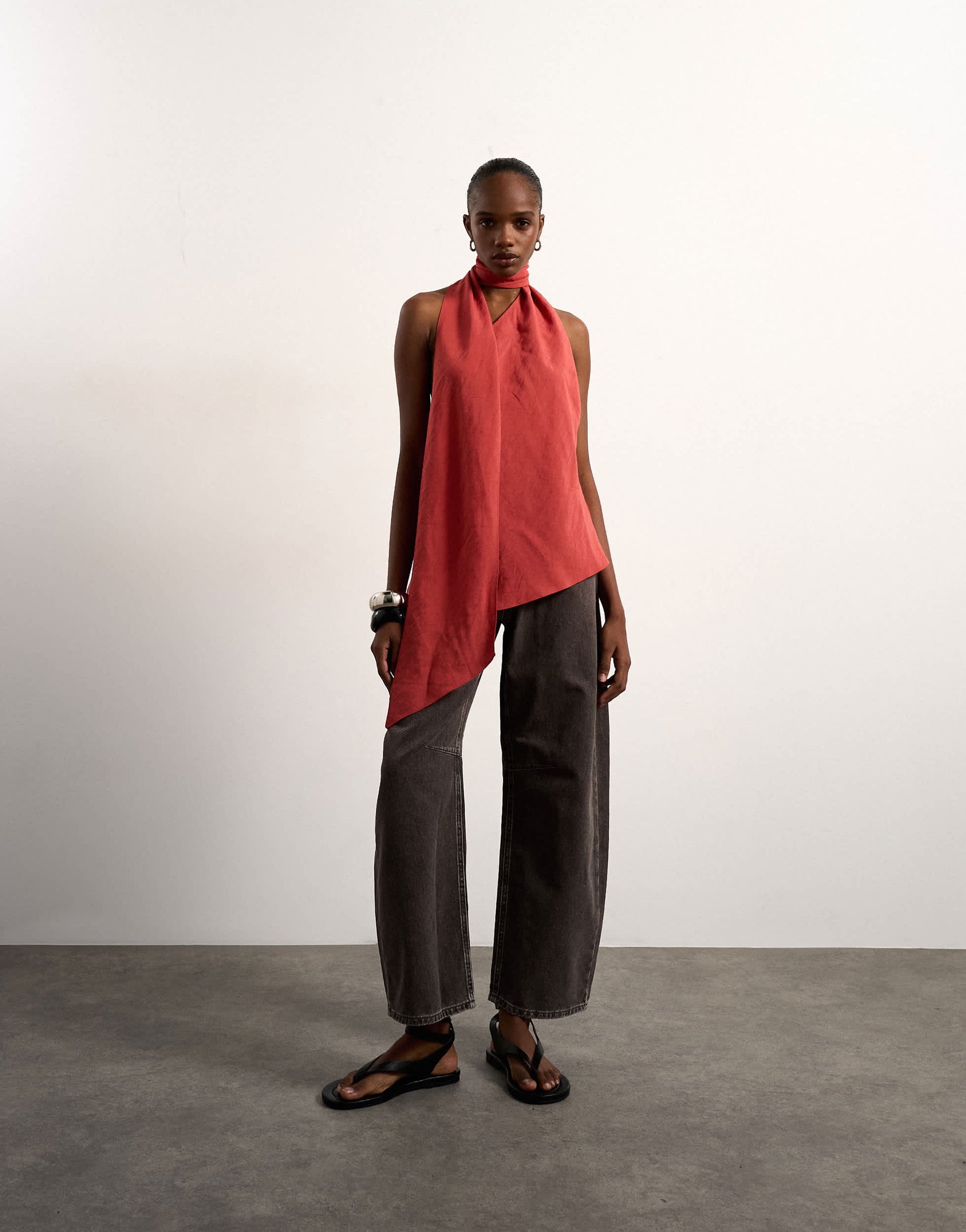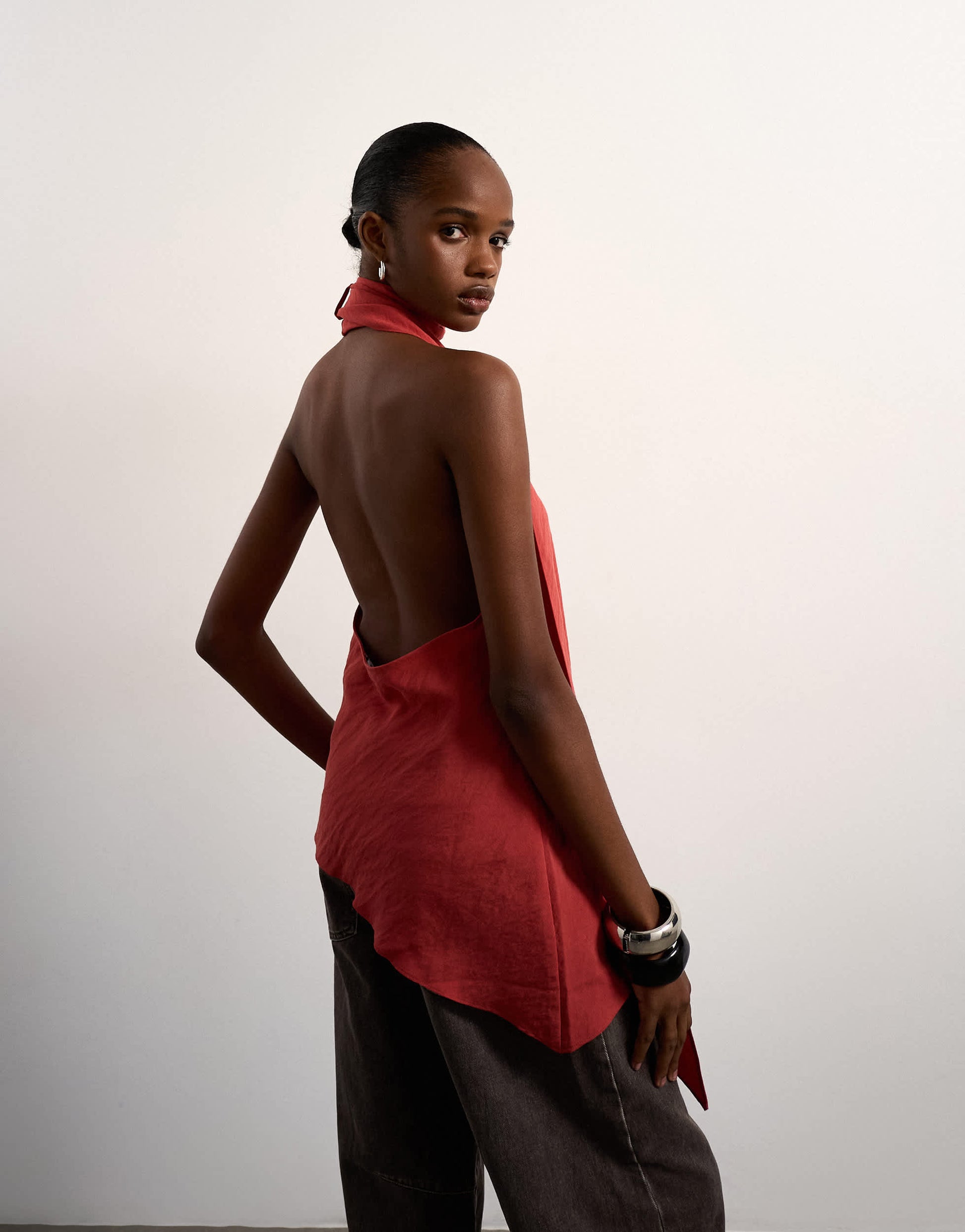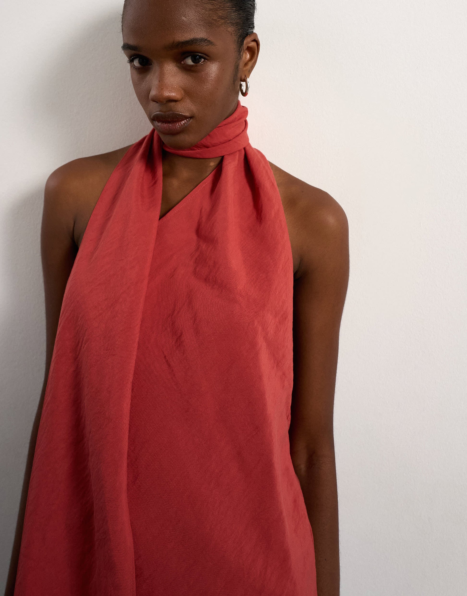 Oberteile von TopshopDieses Top aus fließendem Chiffon in Rostrot besticht durch einen Neckholder, einen offenen Rücken, einen asymmetrischen Saum und ein Schal-Detail. Der Schnitt ist regulär.