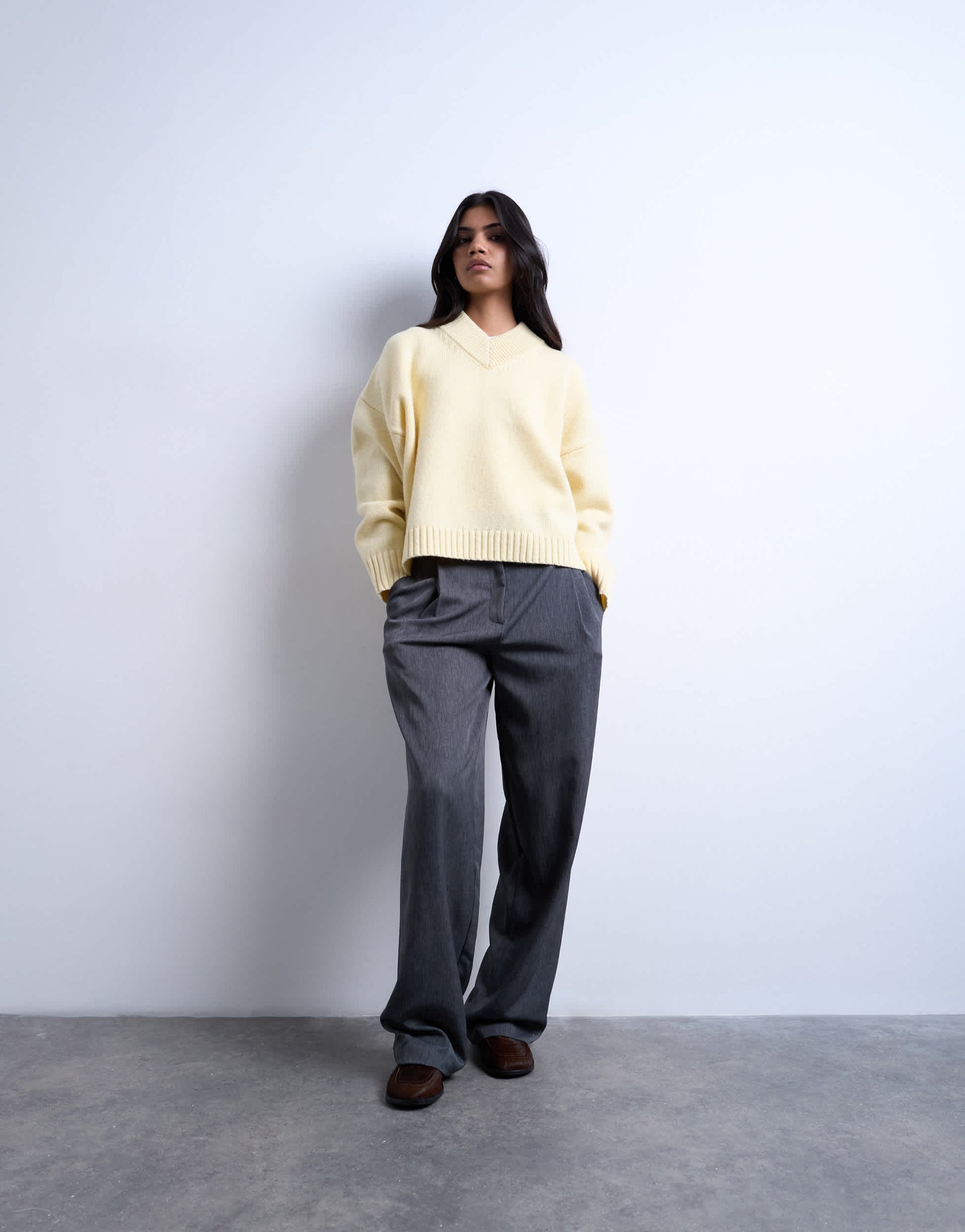 Pullover und Strickjacken von TopshopDieser Pullover aus mittelschwerem Strickstoff besticht durch sein vielseitiges, schlichtes Design. Er hat einen V-Ausschnitt, überschnittene Schultern, Rippstrickbündchen und eine lockere Passform.