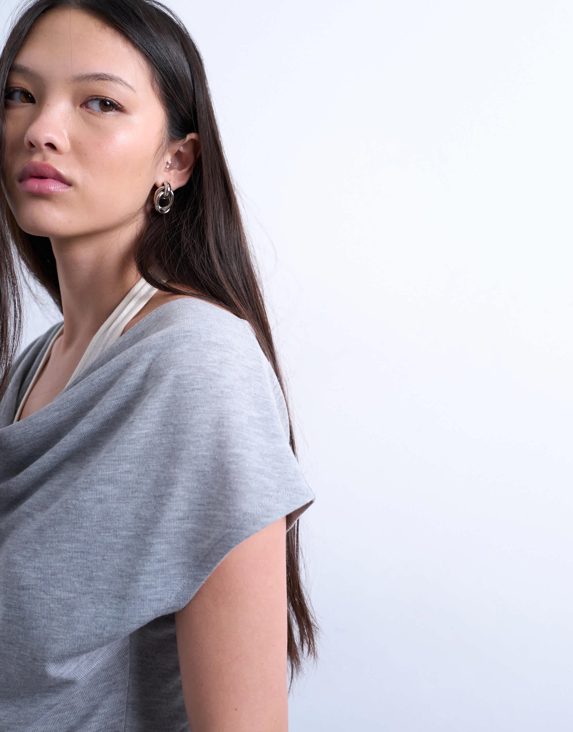 Oberteile von TopshopDieses Top ist aus einem weichen und dehnbaren Strickstoff gefertigt. Das doppellagige Design besticht durch einen Wasserfallausschnitt, kurze Ärmel und eine normale Passform.