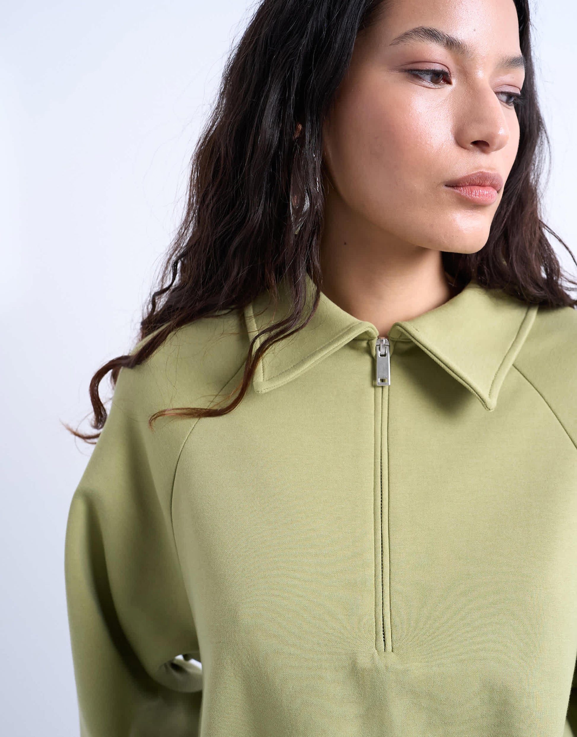 Dieses Sweatshirt aus dickem Jersey in Grün besticht durch seinen Kentkragen, den teilweisen Reißverschluss und die Raglanärmel. Abgerundet wird der Schnitt durch einen abgerundeten Saum und eine normale Passform.
