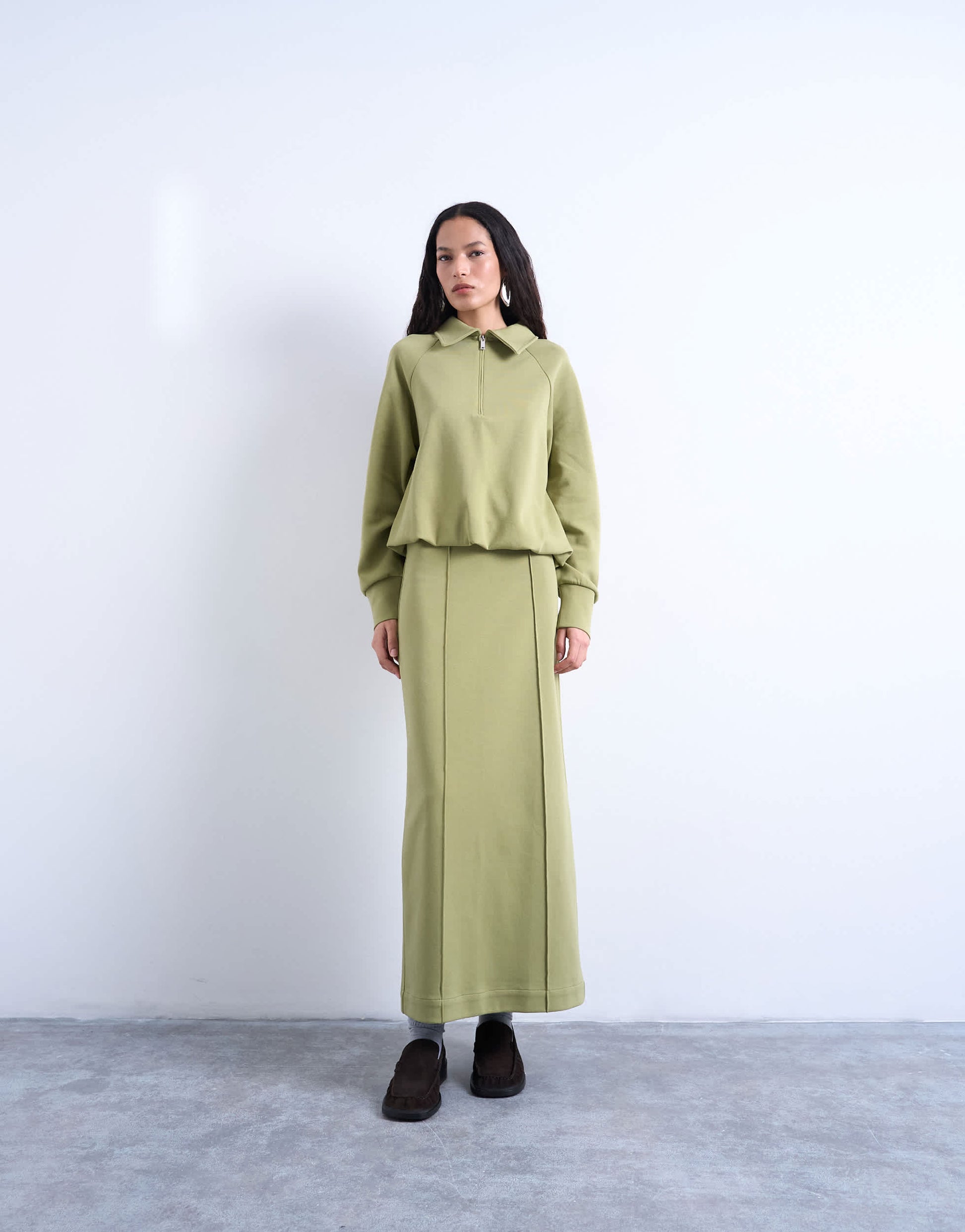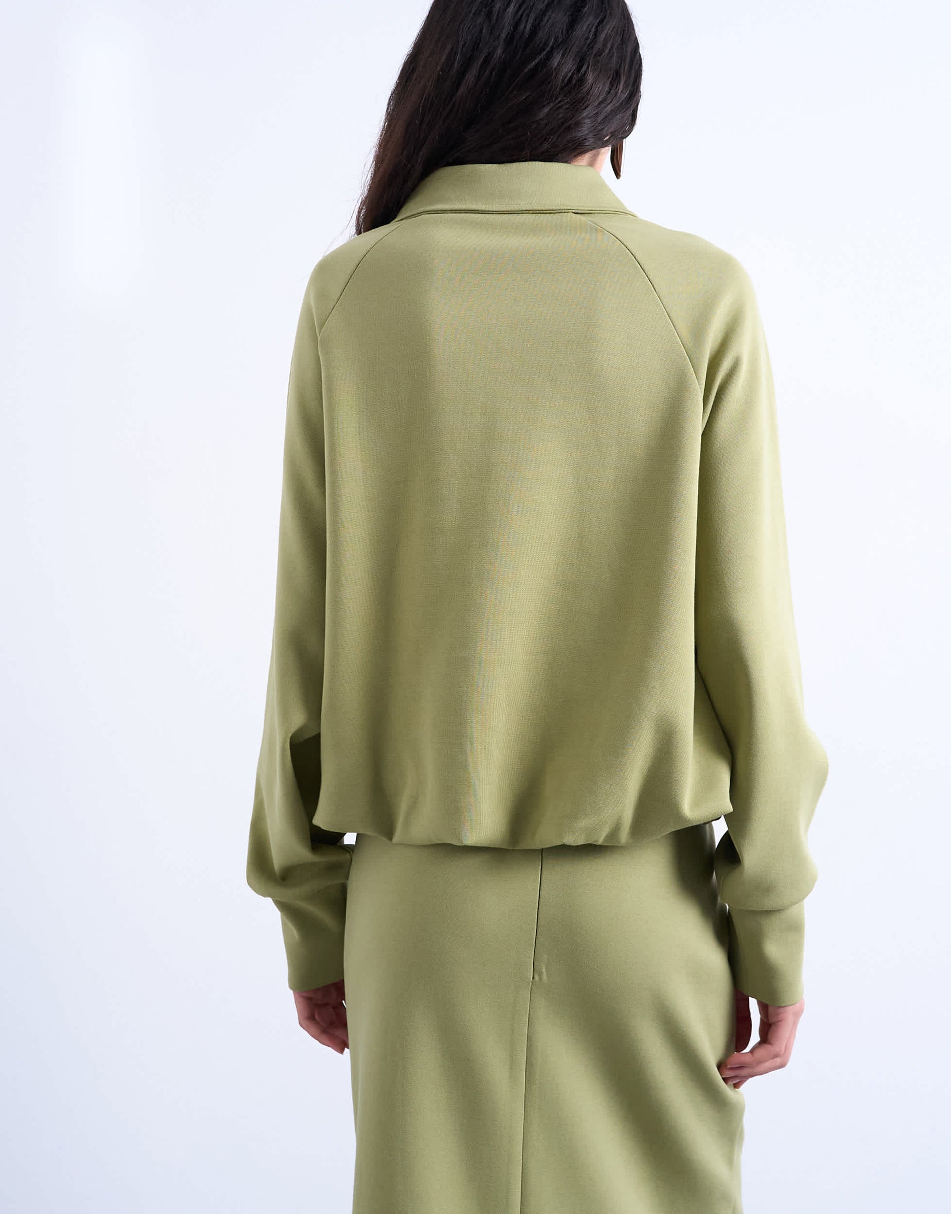 Topshop Poloshirt mit Viertelreißverschluss und Bubble-Hem in Grün