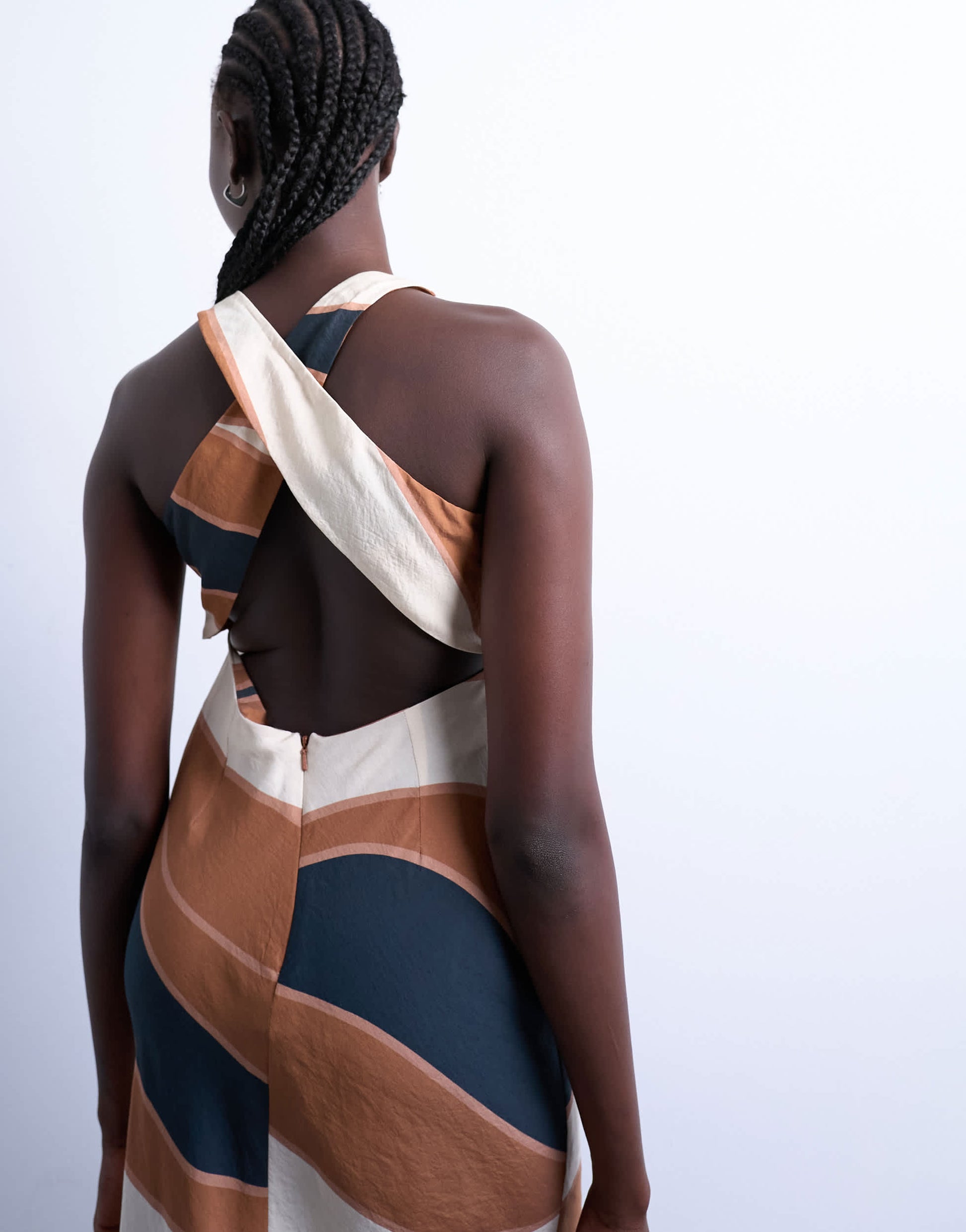 Kleider von TopshopDieses Kleid aus leichtem Webstoff besticht durch sein Streifenmuster. Es hat einen Rundhalsausschnitt, gekreuzte Träger im Rücken, einen Rückenausschnitt, einen Reißverschluss hinten und eine normale Passform.
