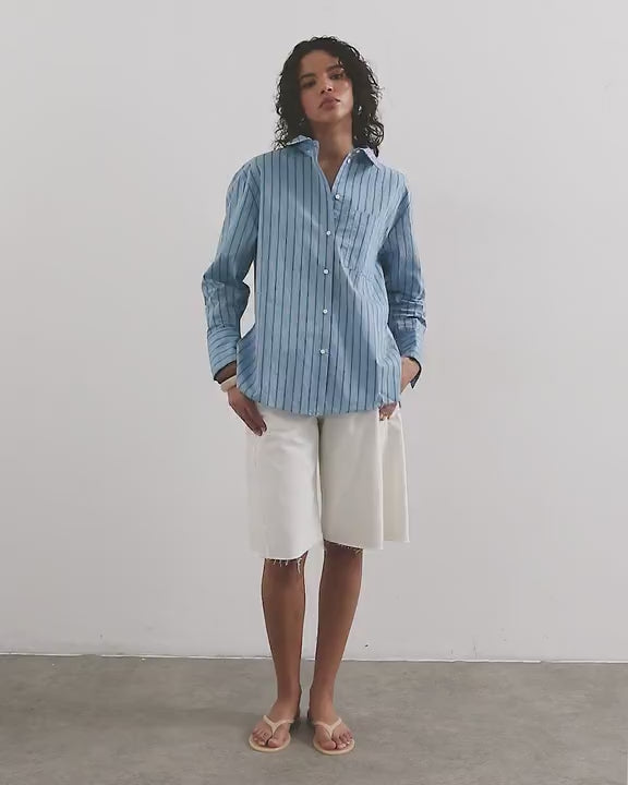 Oberteile von TopshopDieses Hemd ist aus Webstoff gefertigt und hat ein Streifenmuster. Es verfügt über einen Kentkragen, eine Knopfleiste, überschnittene Schultern, eine Brusttasche, Seitenschlitze und eine Oversized-Passform.