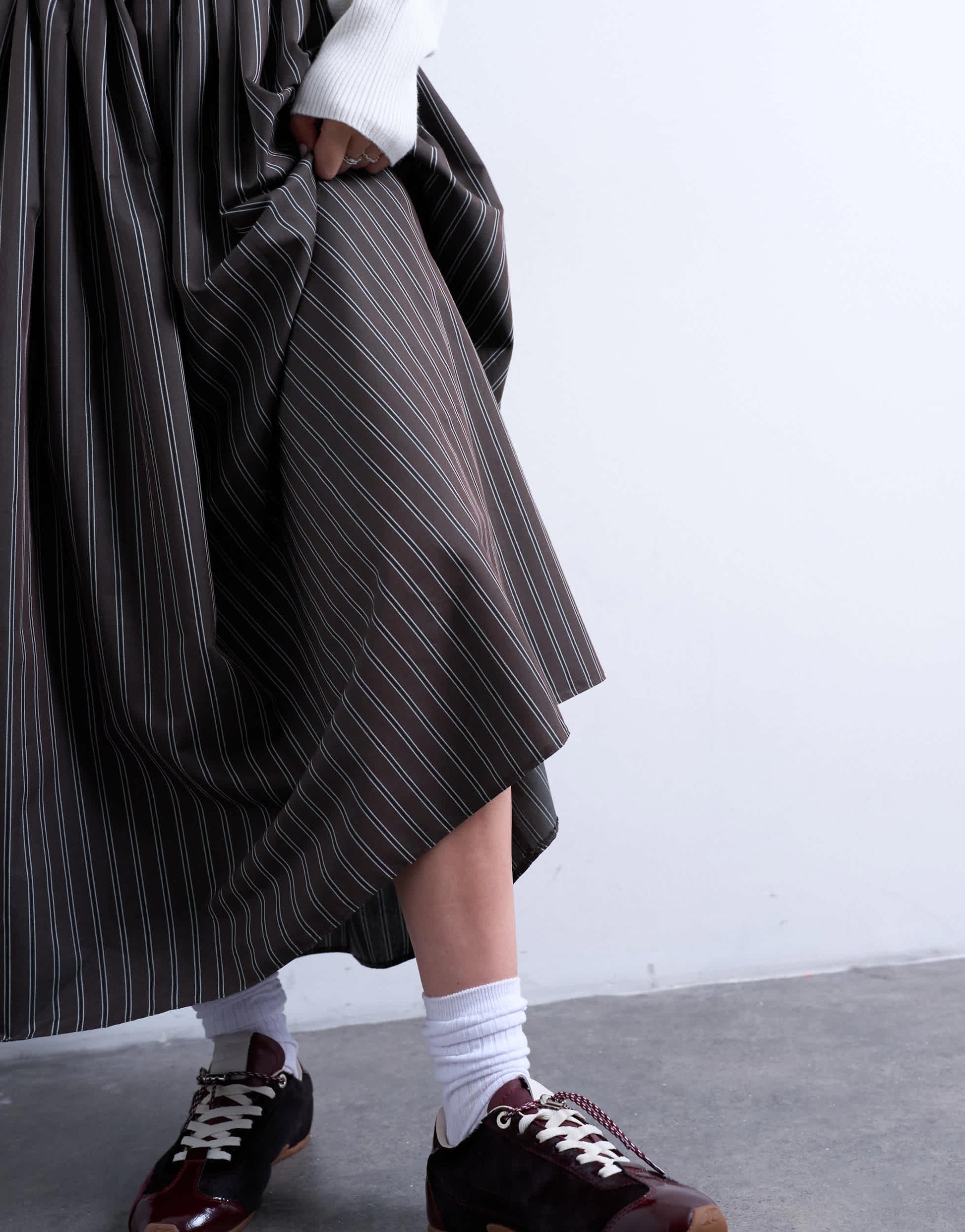 Röcke von TopshopDieser Rock mit horizontalem Streifenmuster hat einen hohen Bund mit Gummizug und einen voluminösen Schnitt. Er ist aus leichtem Webstoff gefertigt und endet am Knöchel.