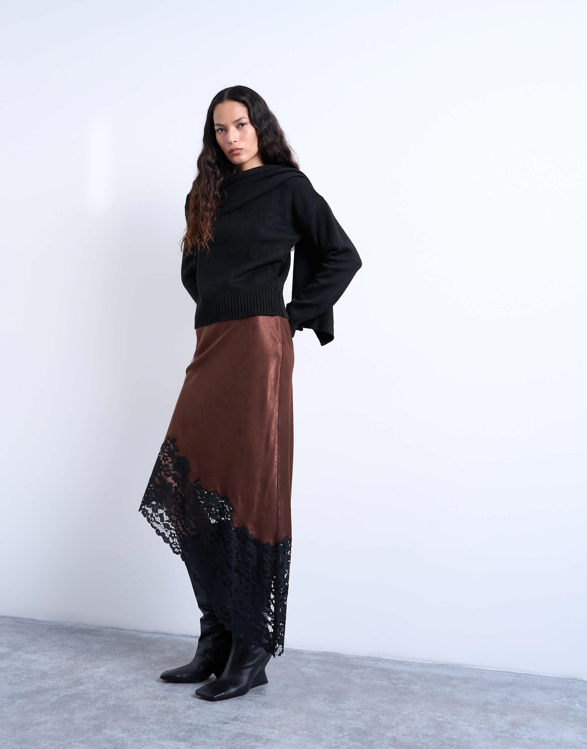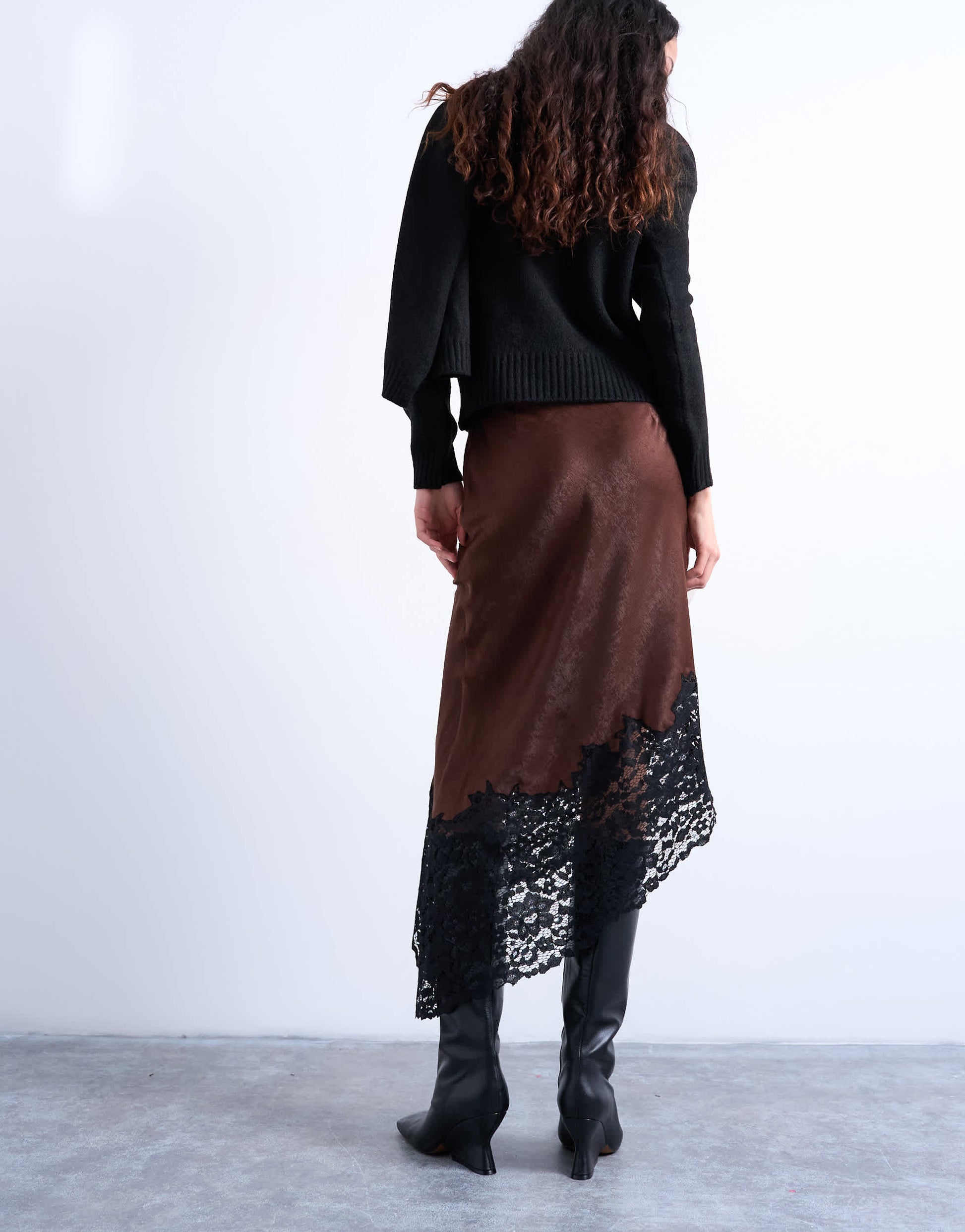 Röcke von TopshopDieser Rock ist aus einem satinartigen Stoff gefertigt. Er hat einen Reißverschluss, einen asymmetrischen Saum, eine Spitzenborte und ist normal geschnitten.