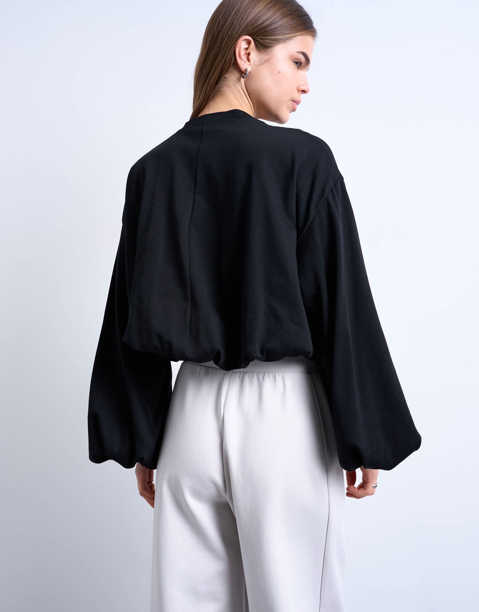 Topshop Langarmshirt mit Rundhalsausschnitt in Schwarz